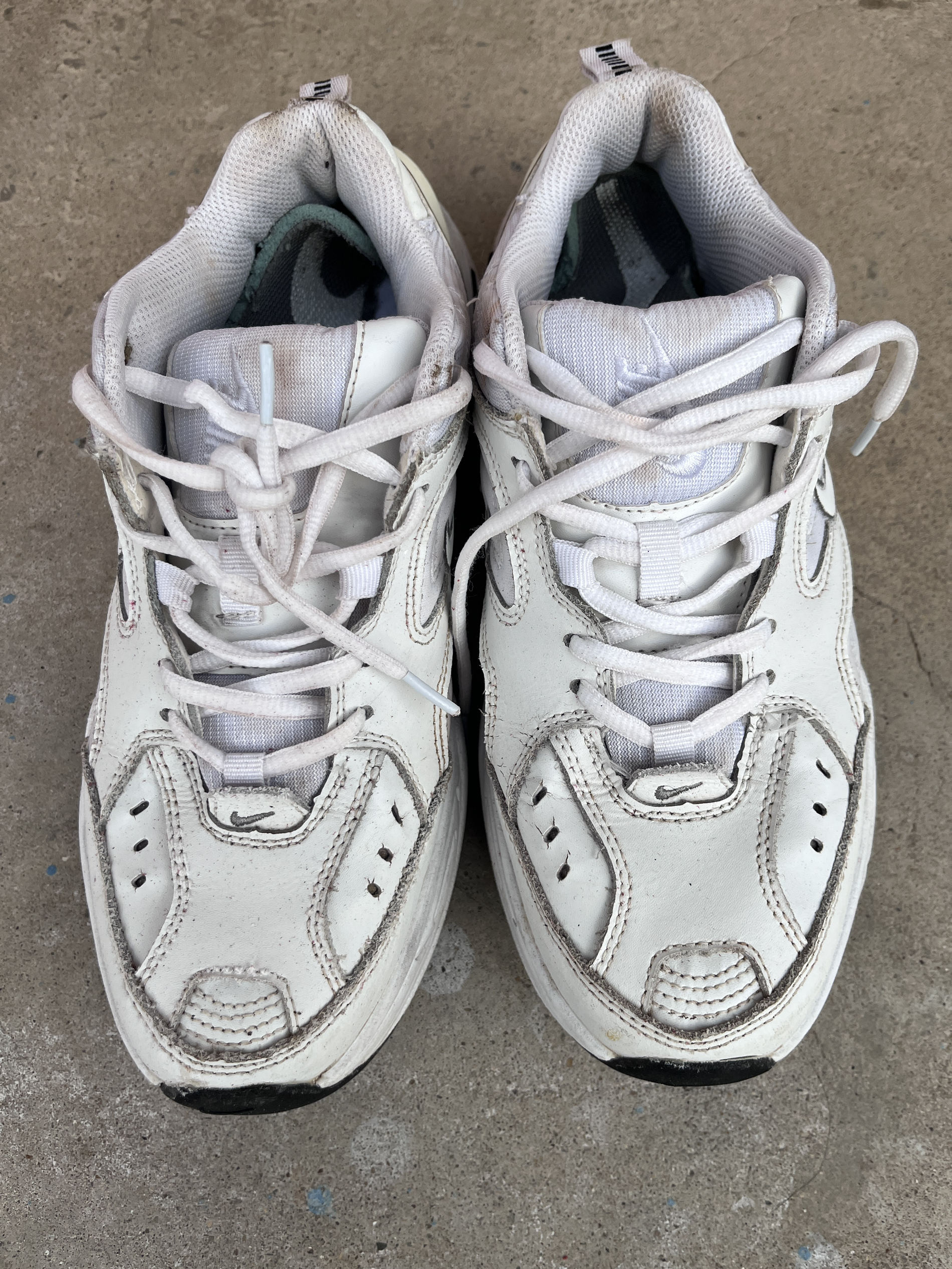 这是Nike M2K Tekno老爹鞋👟,自带厚底增高buff,上脚秒变长腿精,小个子姐妹狂喜!脚感软弹又稳,暴走一天都不累,复古白银配色超百搭,随便搭牛仔裤、运动裤都好看,是日常出街的增高神器~