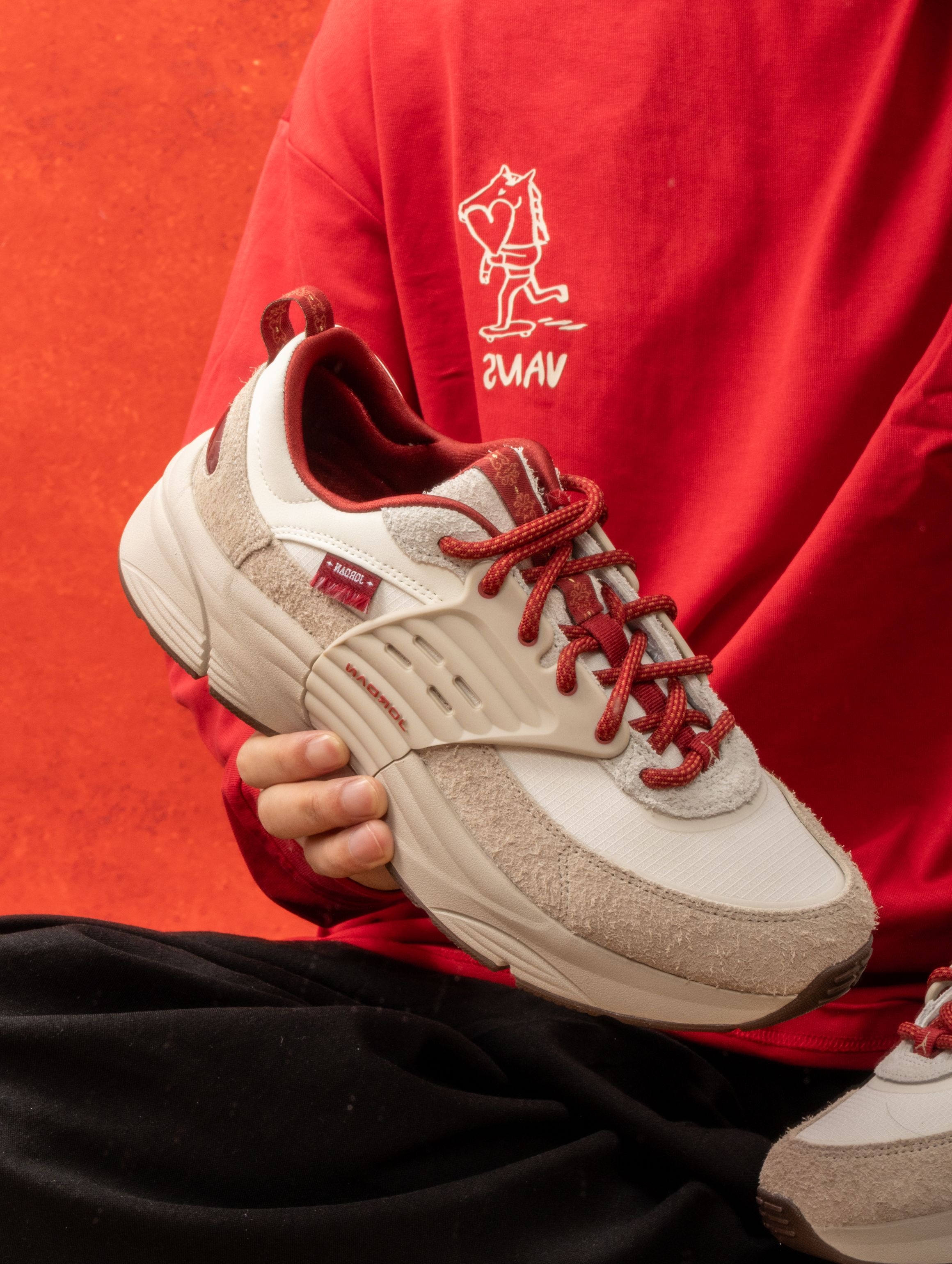 🔍 核心设计亮点 - 配色与材质:采用奶白/幻影灰白配色,全皮面材质,相比纯白款更不易氧化发黄,且易于打理。 - Swoosh细节:鞋侧Swoosh采用双层设计,内层酒红皮革勾勒骏马轮廓,外层透明材质叠加祥云暗纹,层次丰富。 - 国风图腾:鞋身、后跟饰有浮雕式飞马与祥云图案,呼应“脱缰”主题,寓意新的一年如骏马驰骋,收获勇气与荣誉。 - 专属标识:鞋舌处有飞马刺绣,鞋垫印有小飞马LOGO,后跟...