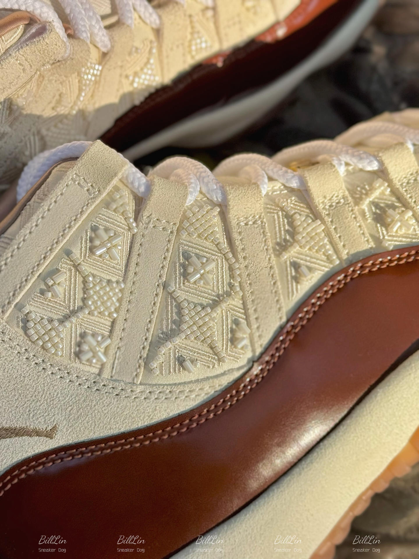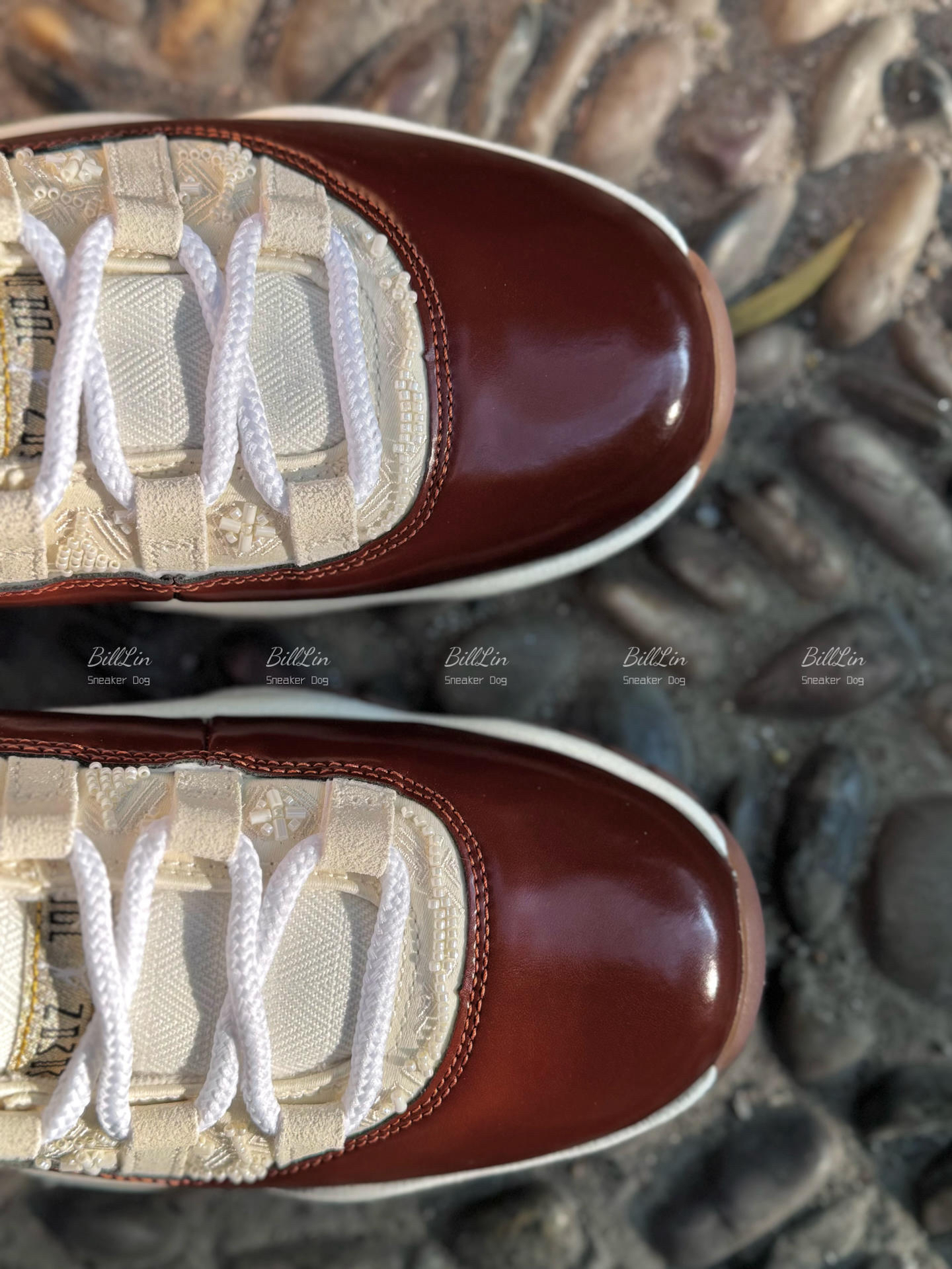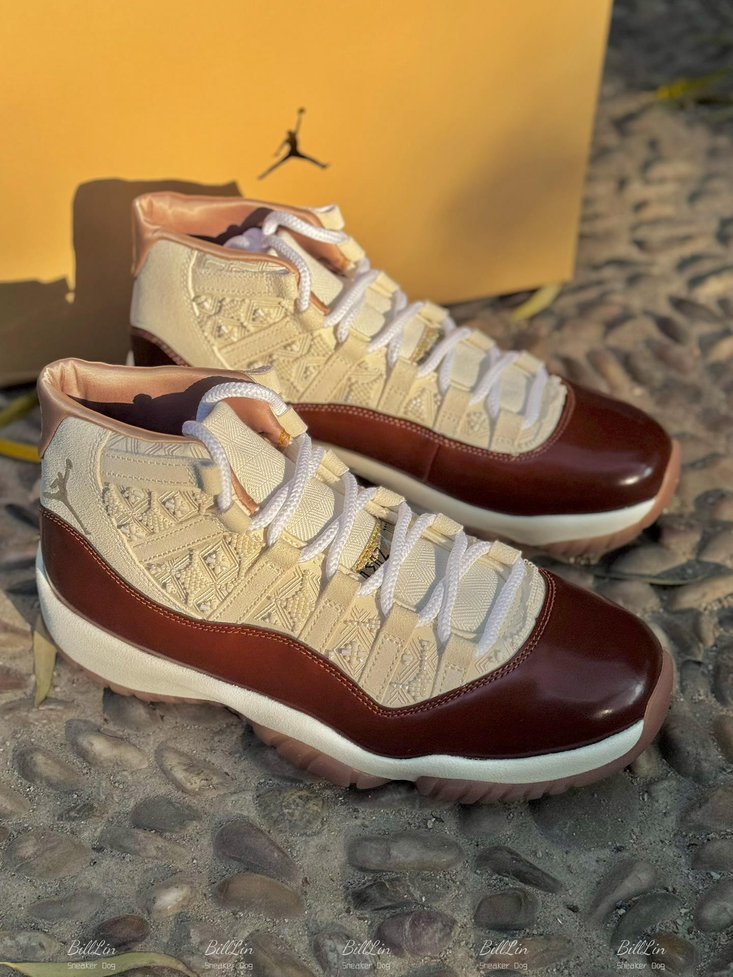 在马年将至的节点 🐎,拿到这双 AJ11 "China" 限定配色,实物的质感真的比照片更具穿透力!📸 简直是长在了审美点上! • 🎨 色彩哲思:它没有选用那种高饱和的大红,而是以温润米白 🍦 打底,衔接内敛枣红 🍷。这种配色像极了东方人的性格,不张扬却自有风骨,温雅又高级。 • 🧶 工艺链接:鞋侧最吸睛的莫过于那极具代表性的中国结立体编织工艺 🪢,将传统祈福的意象完美缝入经典的 AJ11 轮廓中...