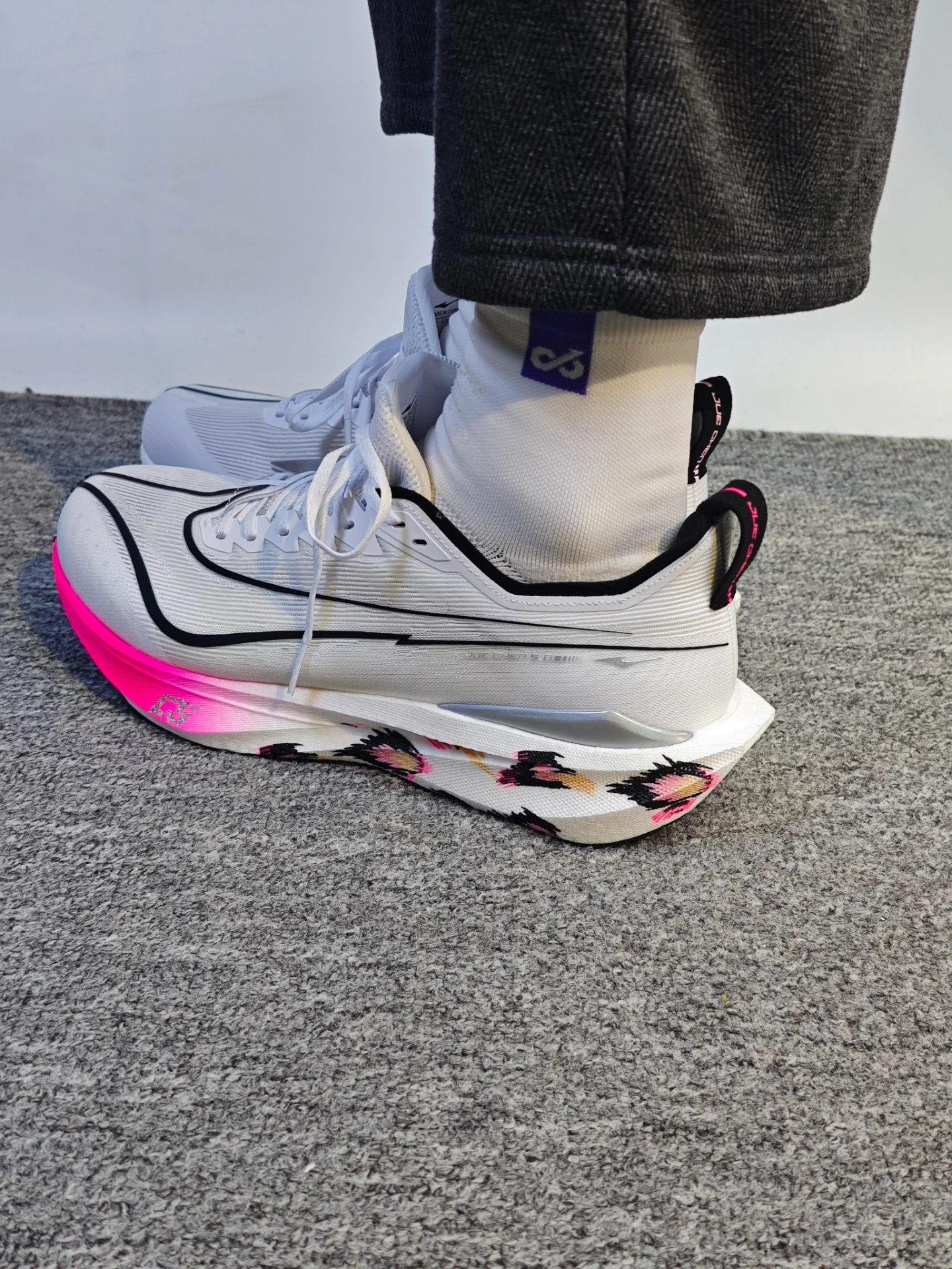 我手上这双粉鸿豹配色颜值很高,粉色渐变+豹纹设计很吸睛,颜值在线。 42码单只仅217克,上脚很轻,日常穿无负担。 中底用炁科技,脚感澎湃,缓震表现不错。 大底是CPU橡胶,比普通橡胶耐磨提升3倍,闪电纹路抓地、止滑都靠谱。 这一代换成TPU抗扭片,再加两侧环抱式TPU,抗扭和稳定性更好,锁后跟很稳,适配人群更广。 鞋面是细绞综材质,透气舒适,大logo设计也恰到好处。 缺点 从之...