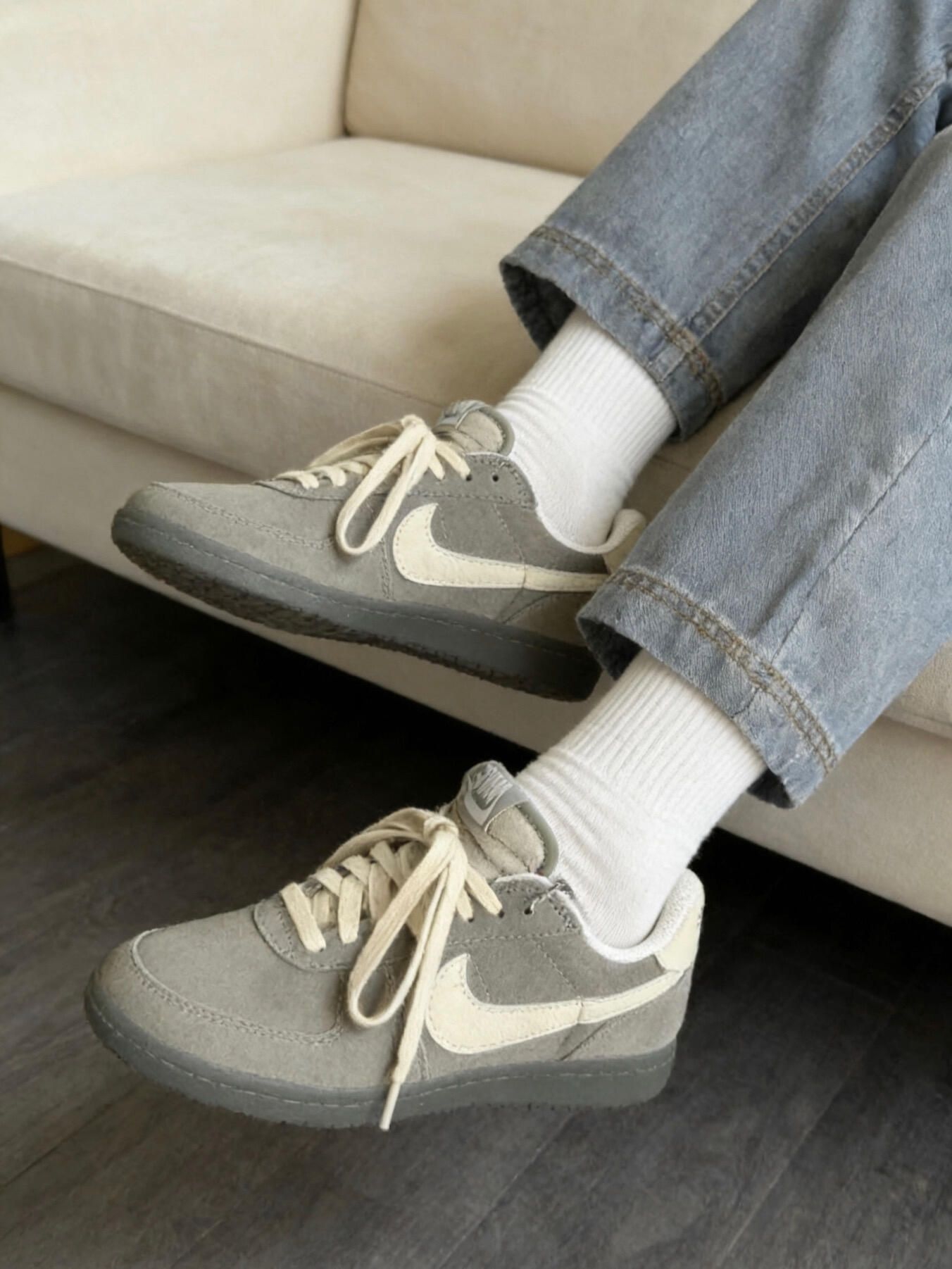 这双藏蓝麂皮的Nike板鞋是我最近随手入的,本来没抱太高期待,结果穿了一周还真挺惊喜。 首先说脚感,鞋身是麂皮材质,看着软乎乎的,上脚也不磨脚,第一天穿就没打泡,比我之前买的板鞋友好太多。鞋底不算特别厚,但踩上去有轻微的回弹,日常走路、逛超市逛半天,脚底板也不会酸,通勤穿完全没问题。 然后是做工,麂皮的质感摸着很扎实,一周下来鞋面没出现开胶、掉皮的情况,就是藏蓝色有点不耐脏,鞋头沾了点灰得用软刷...