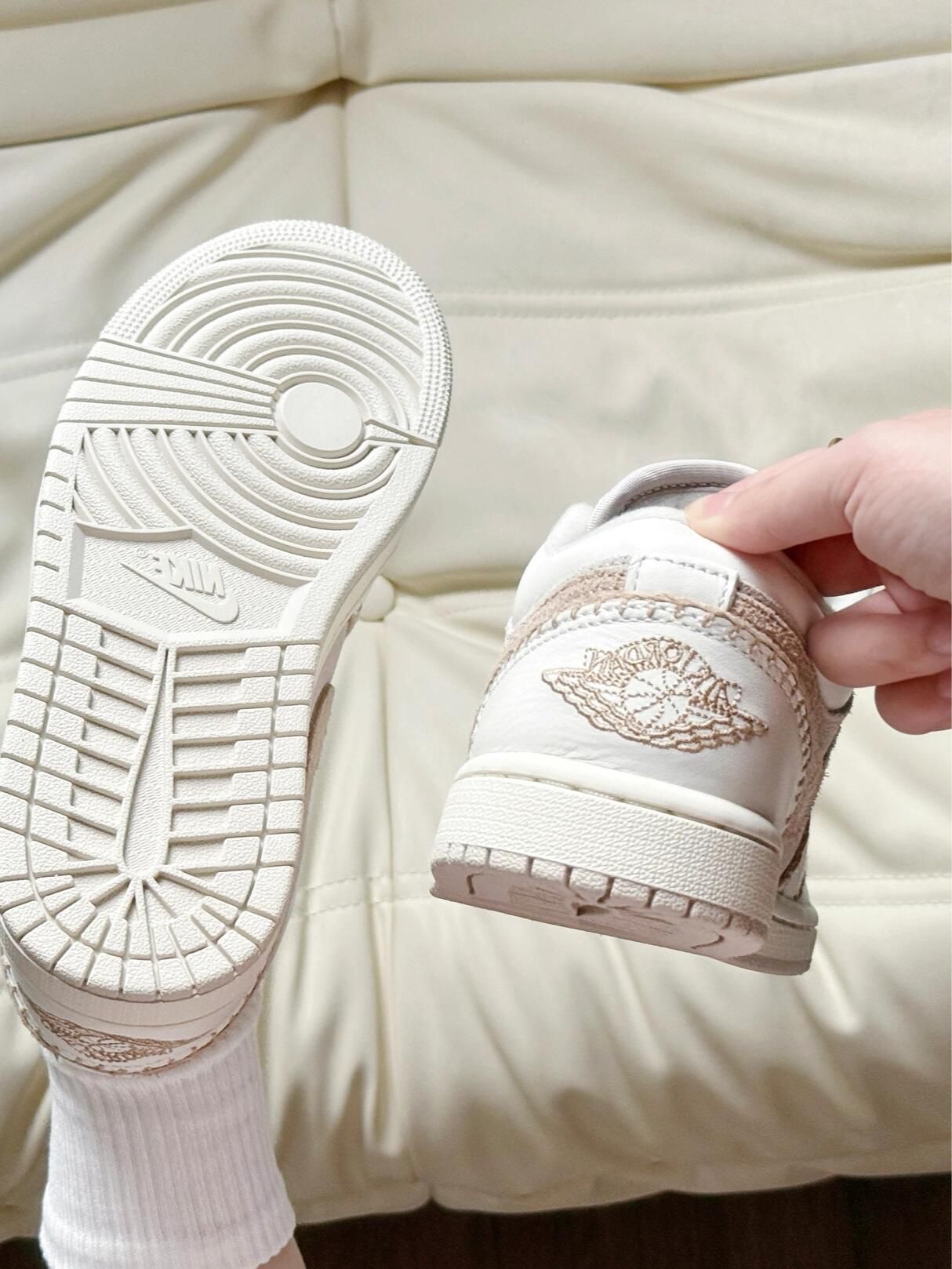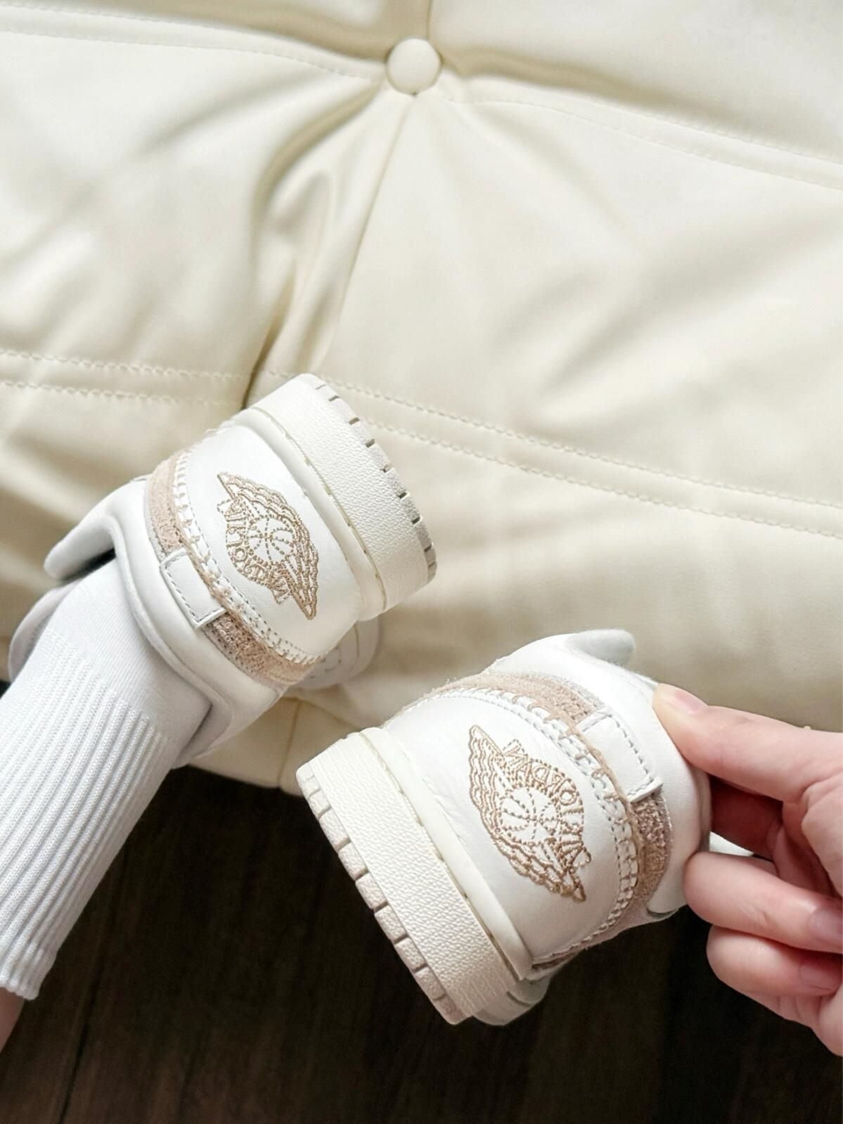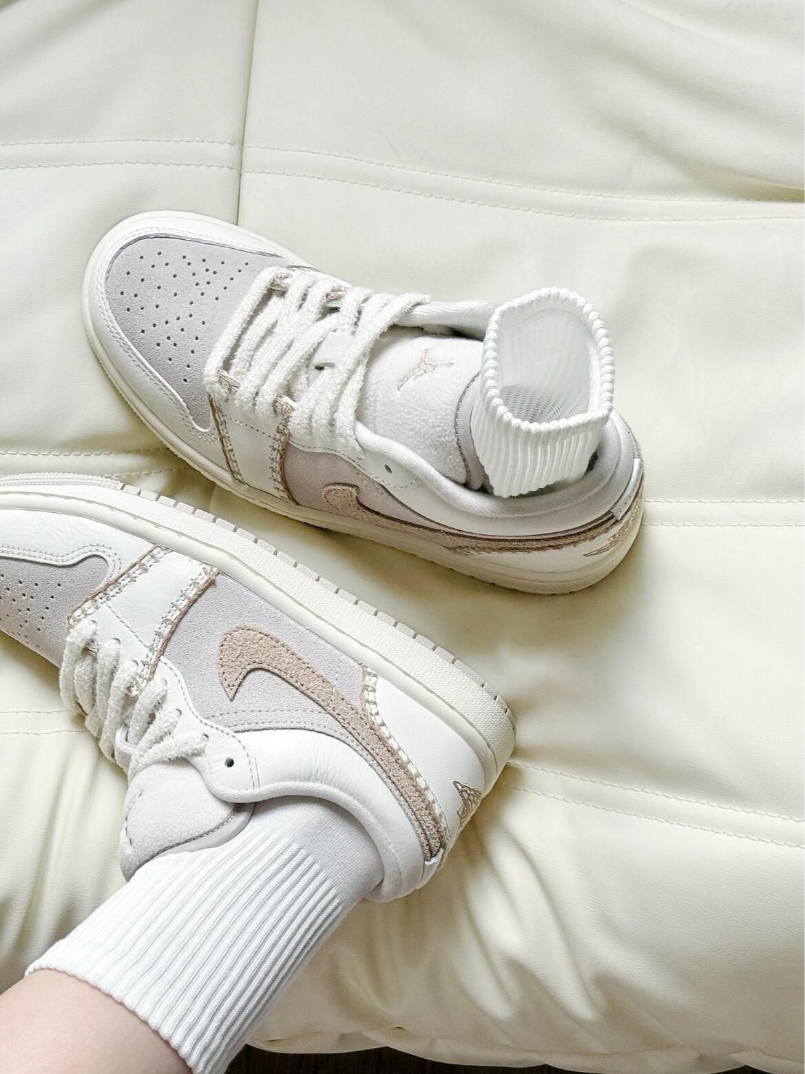 奶白奶白的搭配好让我心动💗 米白配色好好看好有氛围感 Jordan穿起来软乎乎😁 冬天搭配牛仔裤小裙子都好看