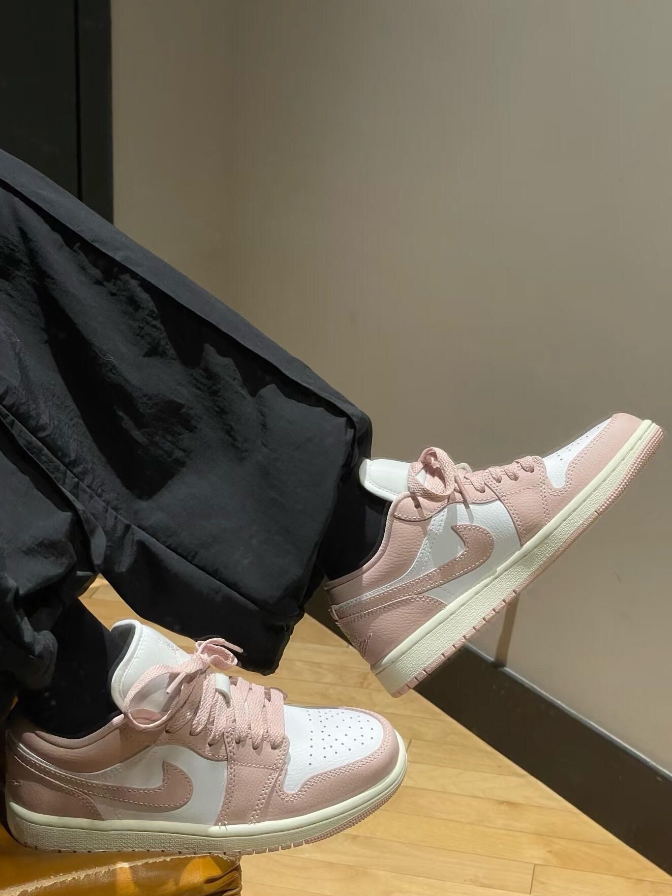 一直很喜欢AJ 这双粉色实在太好看了!🥰 鞋底也是挺软的,这个粉色款比紫色的好穿点 冬天搭配裤子穿很好看 😘 实物其实偏藕粉一点点 很好搭配不会突兀