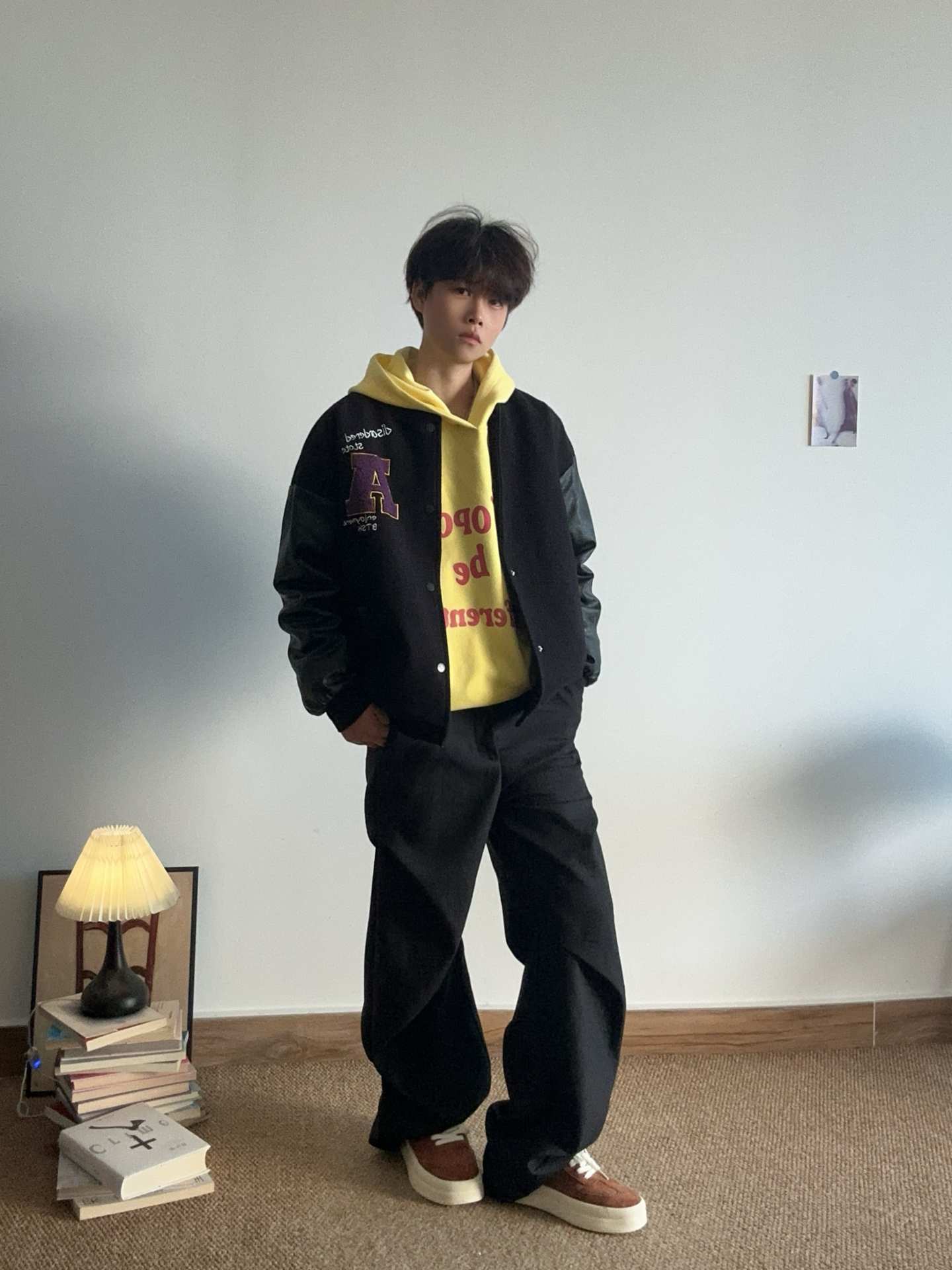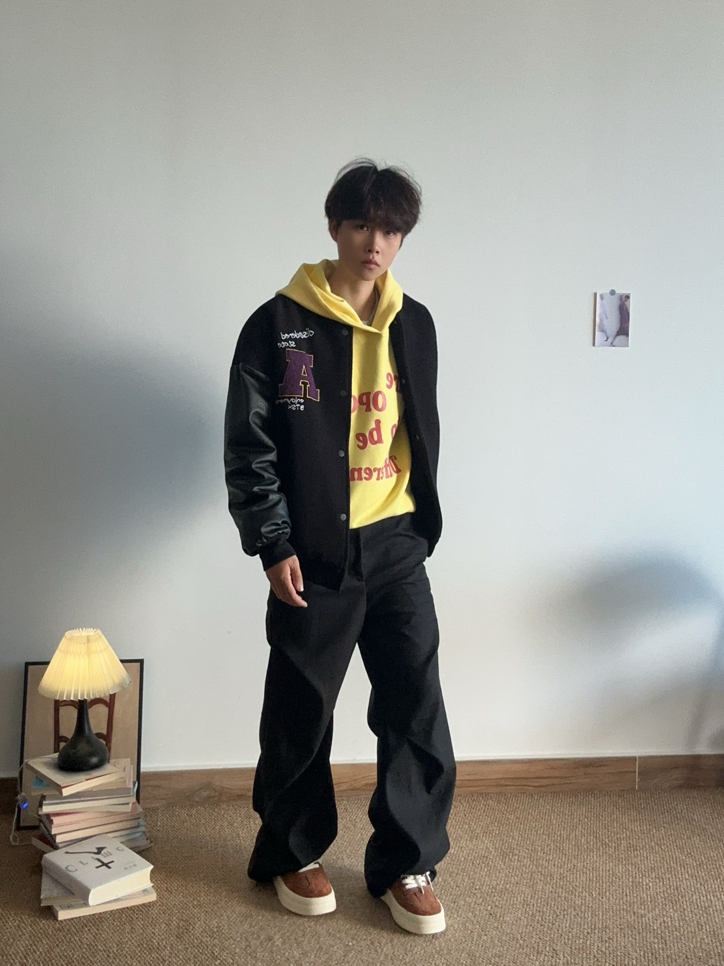 今日份简单穿搭✌︎' ֊' 黑色夹克➕黄色卫衣 不出错的再来条黑色裤子👖保暖又帅气 搭配今天的新鞋 #Jeep 面包鞋 自带增高鞋垫 矮个子都去冲😍 百搭单品小黄鞋👟又➕1 #秋冬夹克潮流趋势 #春日男生卫衣穿搭氛围感 #马上换新鞋 #冬日男生板鞋穿搭氛围感 #早春明媚系穿搭