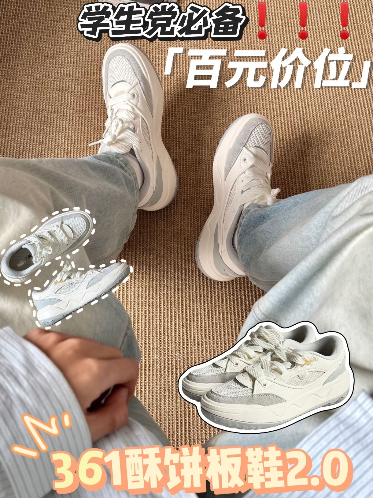网面透气度确实在线,30℃的天走路,脚面基本不会闷出汗,鞋底的缓震感在平路上走还可以,久站也不会太酸。搭配浅牛仔裤很搭,不用特意挑穿搭。