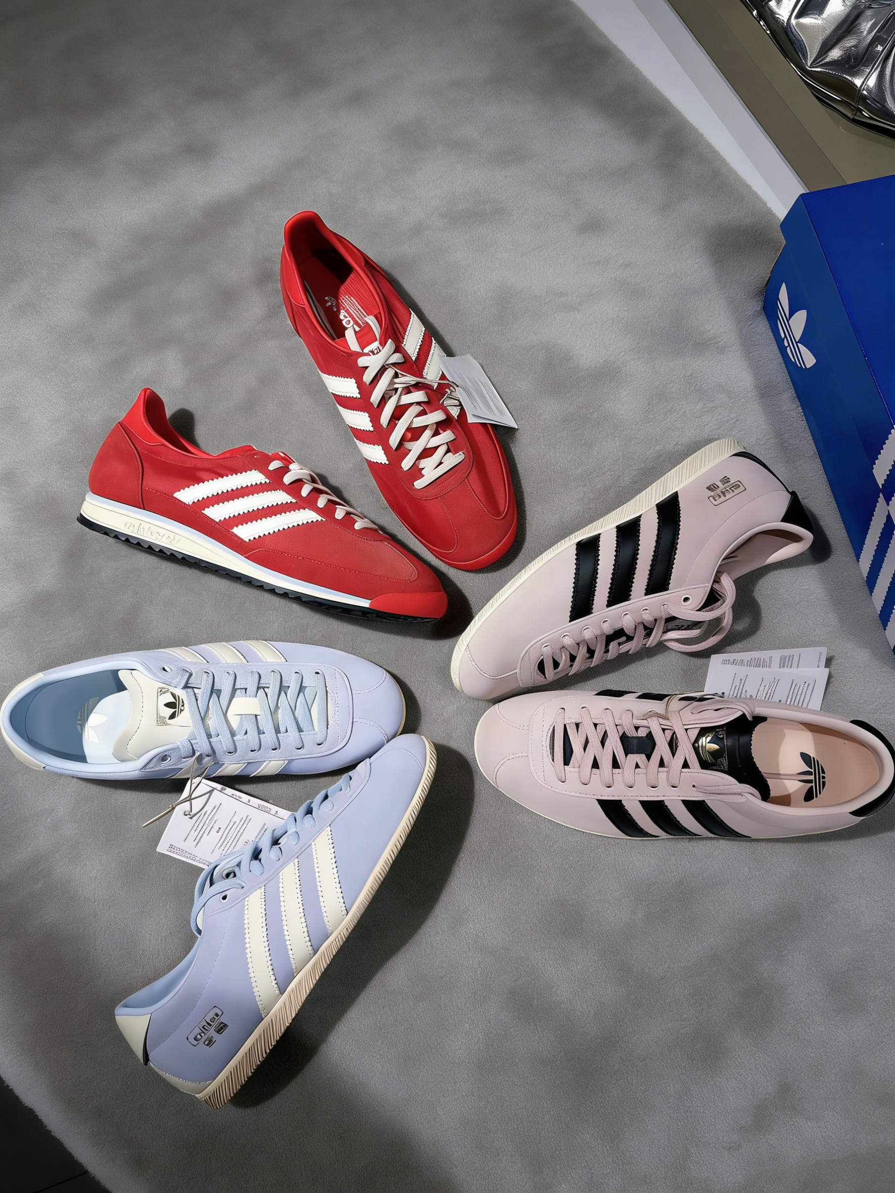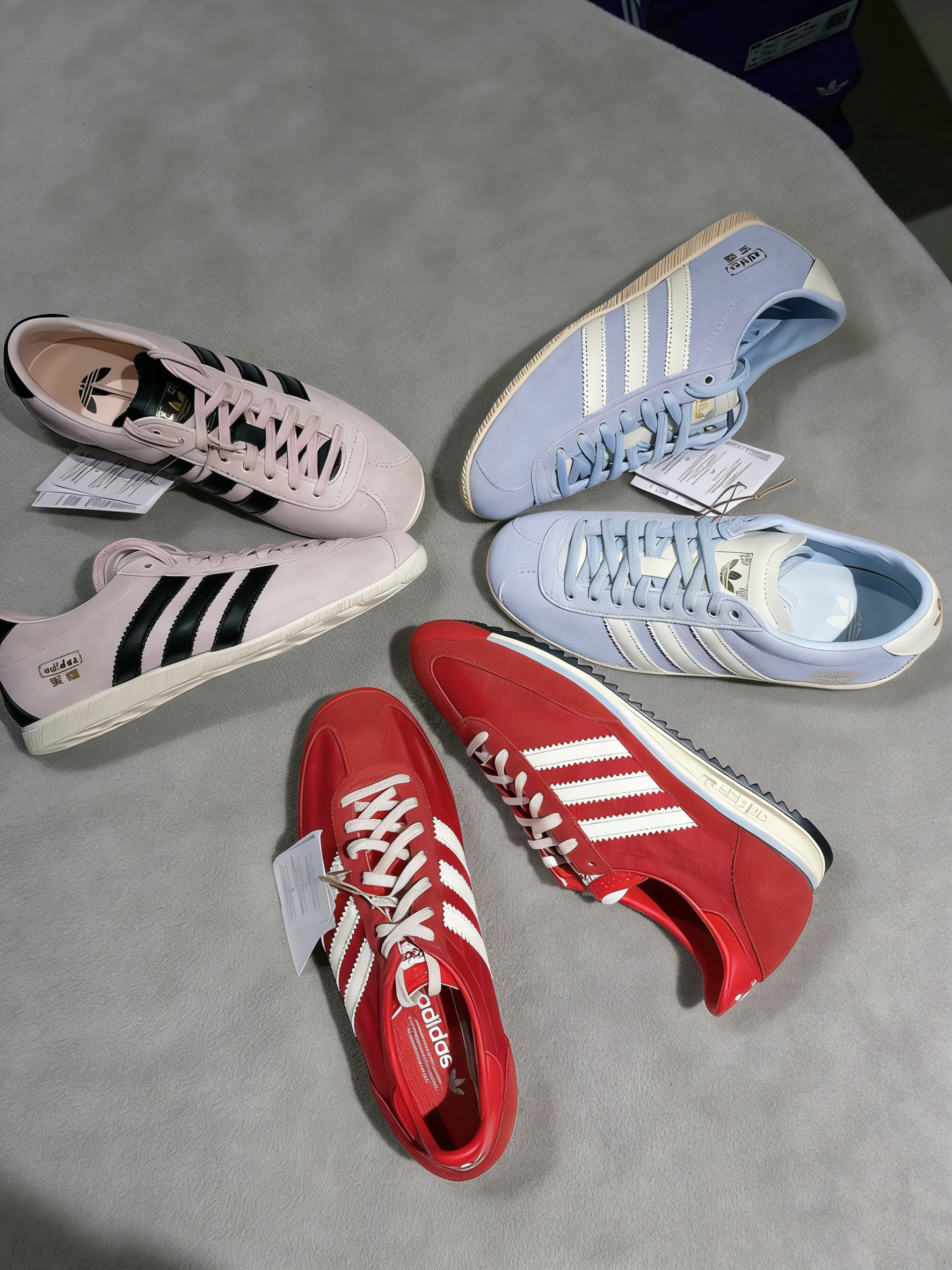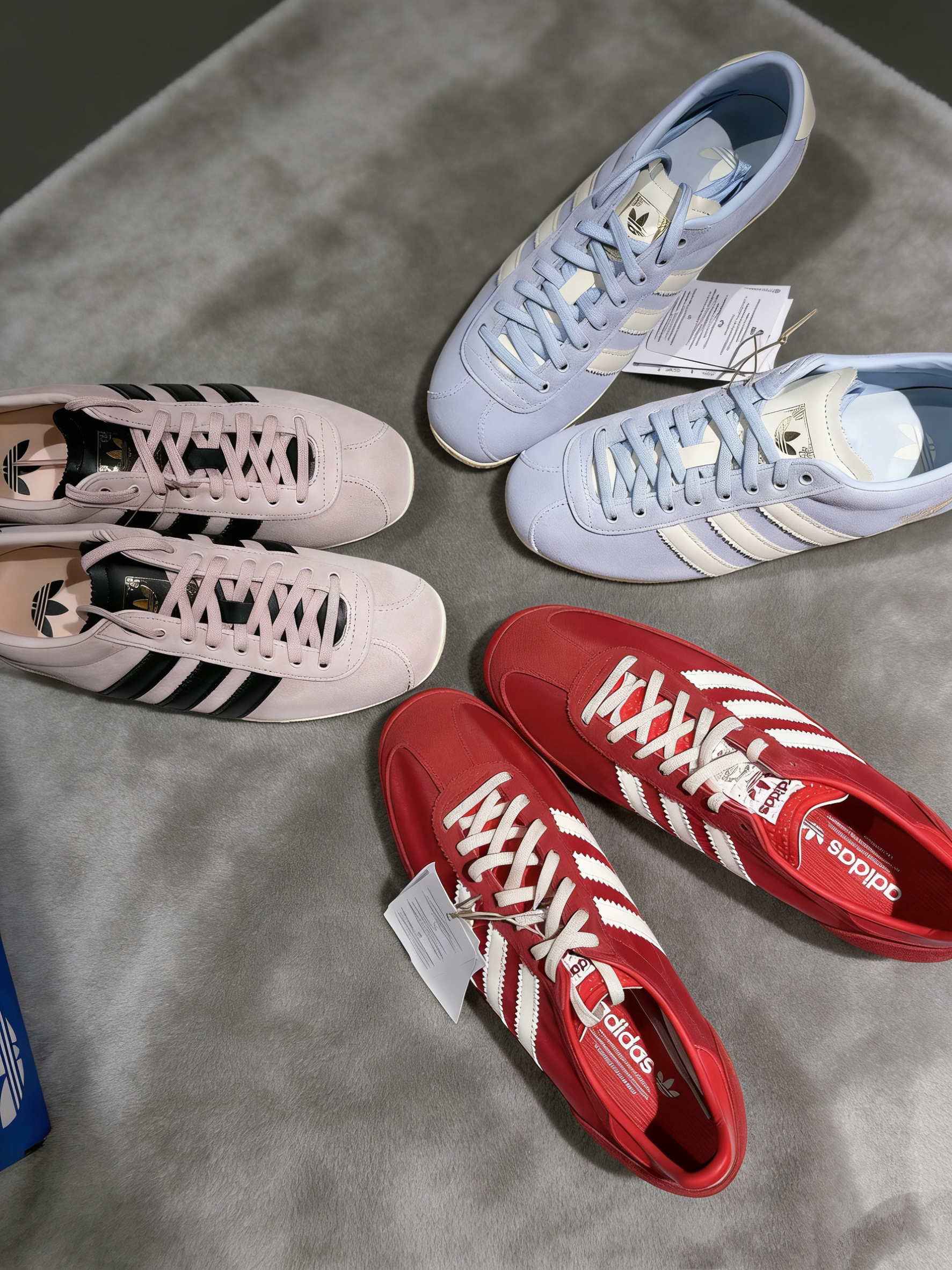 adidas 三叶草安福限定,这设计真的太戳我了😚 海盐蓝&樱花粉&喜庆红,麂皮质感温柔又高级。 复古T头薄底设计,上脚秒变时髦精💗 鞋舌的金色Logo搭配上中式纹样,精致感拿捏得恰到好处,春日OOTD必备