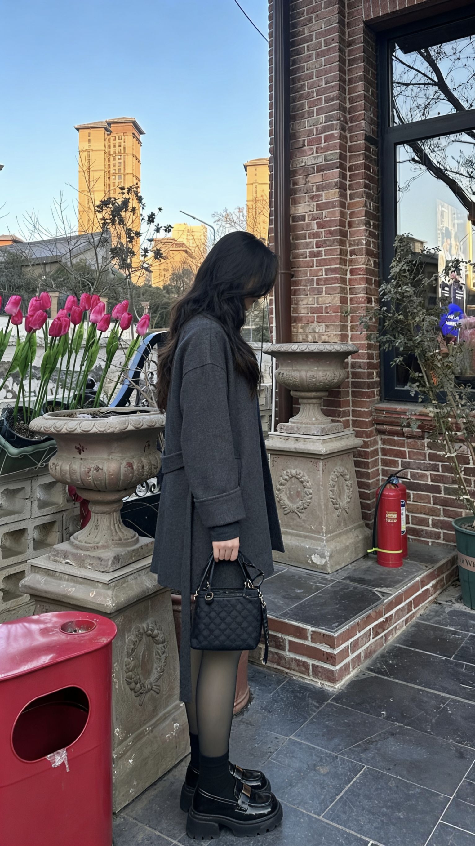 红砖、粉郁、灰调大衣。 早春的浪漫,藏在色彩的碰撞里。 今日份通勤灵感: 高级灰大衣作为底色, 用薄透黑丝平衡冬日的厚重, 厚底乐福鞋增添一丝俏皮。 不露脸,也有氛围感。 这就是我爱的早春松弛感。