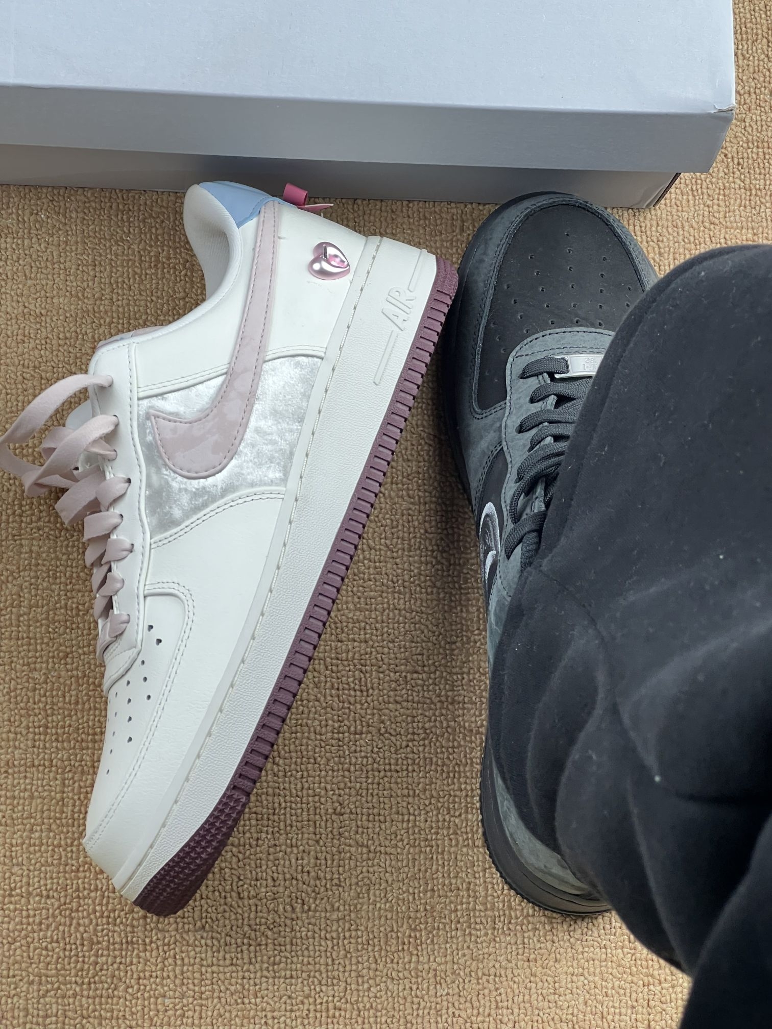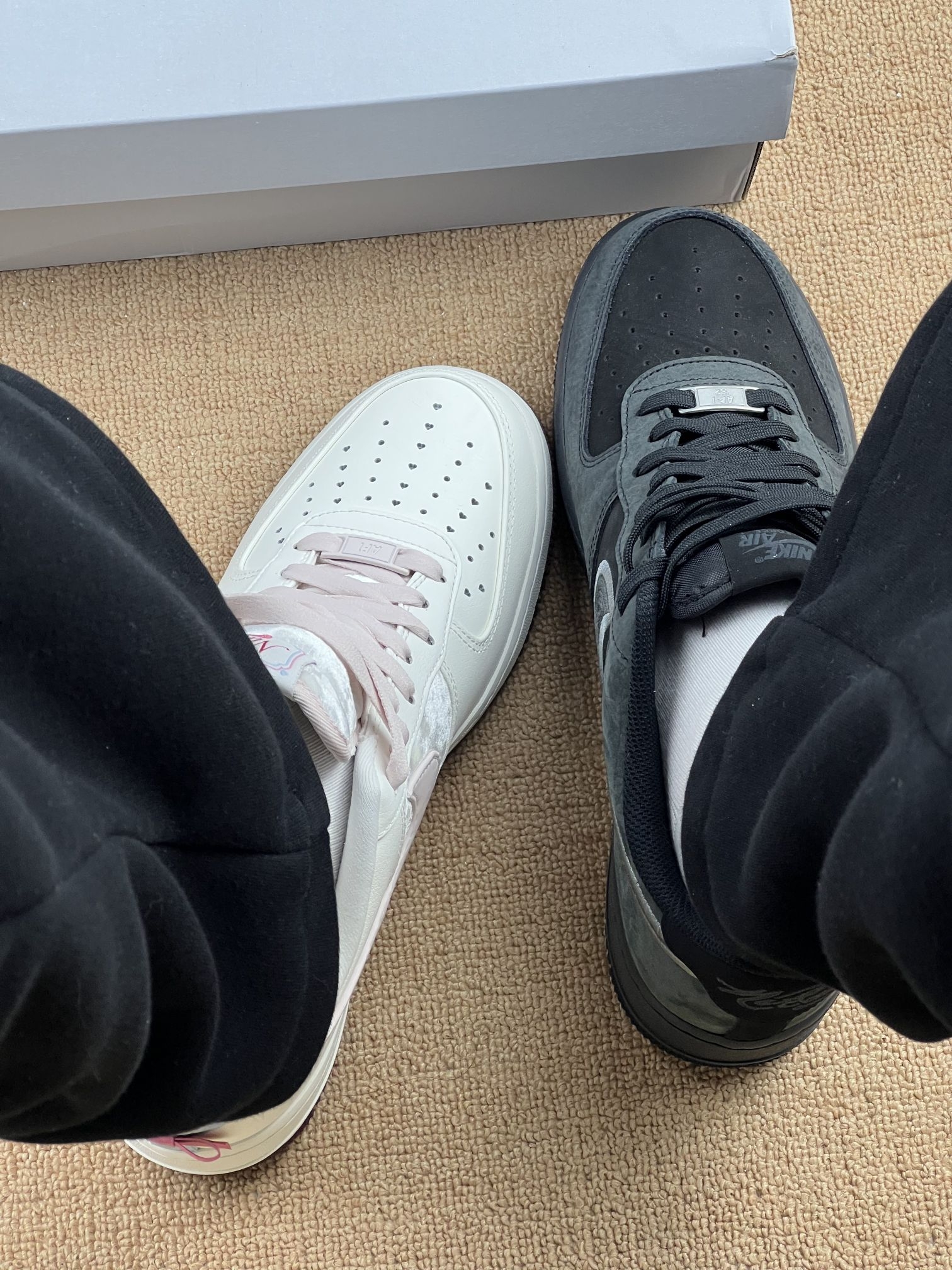 这双AF1情人节限定鸳鸯款,拿到手第一感觉就是质感比我想象的要扎实。我感觉黑白撞色搭配粉系点缀,甜酷感直接拉满🎀,配牛仔裤、运动裤都不违和,日常出门不用费脑想搭配,所以这点我很喜欢✨。 在脚感方面,前掌气垫有一点点反馈,但我感觉后掌偏硬,长时间逛街还是有点累,毕竟是板鞋的底子👟。白鞋款的丝绒材质看着很有氛围感,但容易沾灰还难打理,这我感觉也是一个小缺点😮💨。 然后我上脚感觉鞋型偏修长🥵,如果...