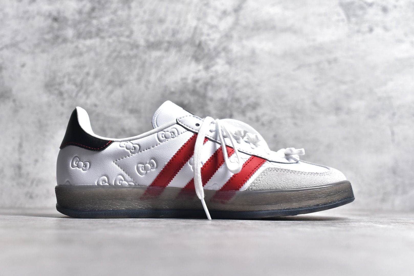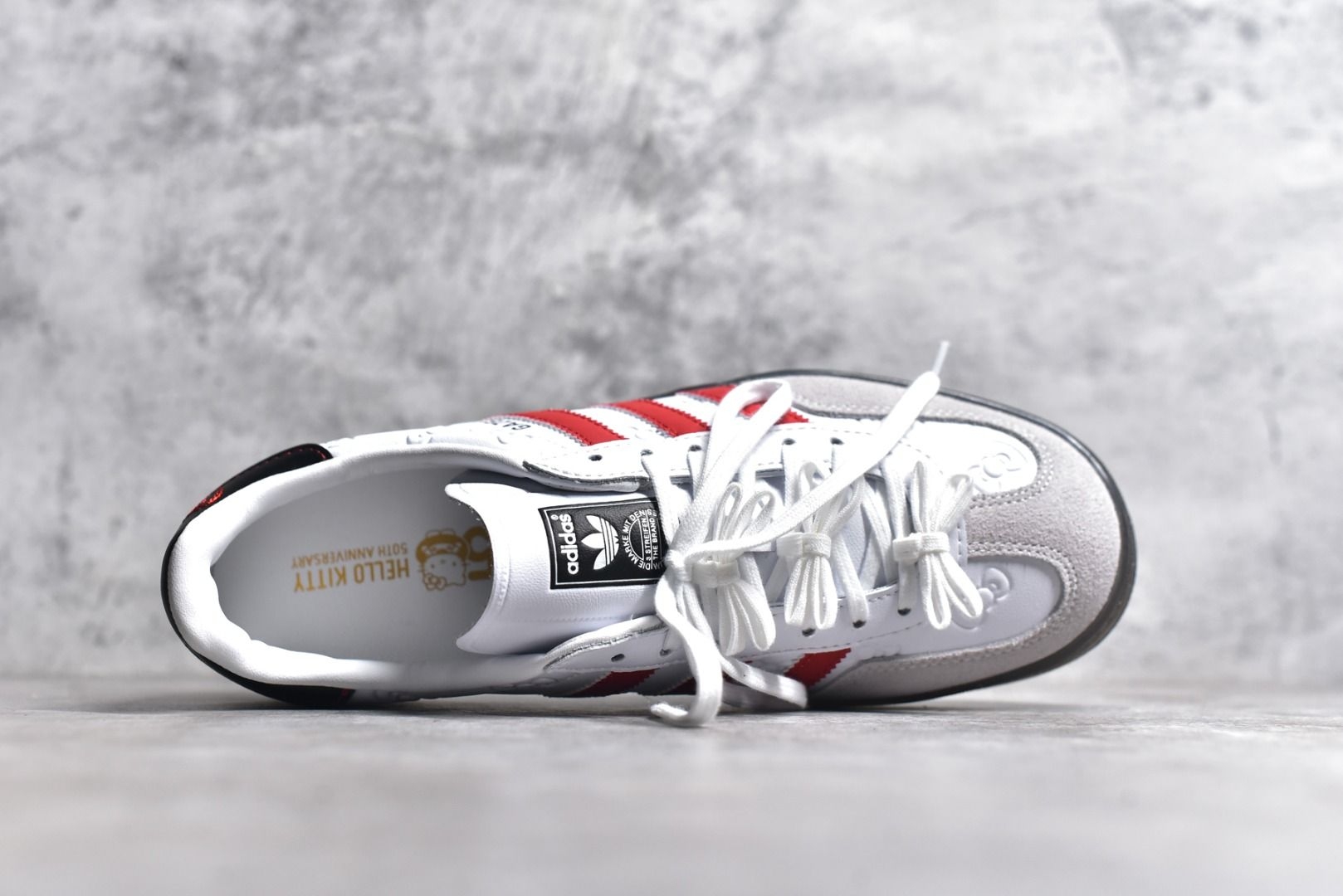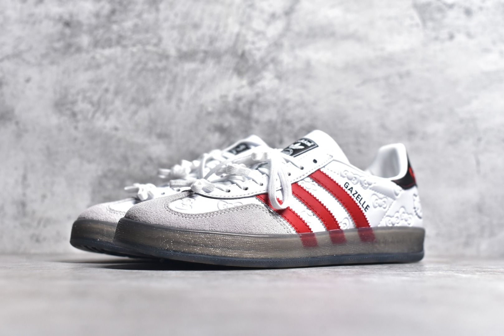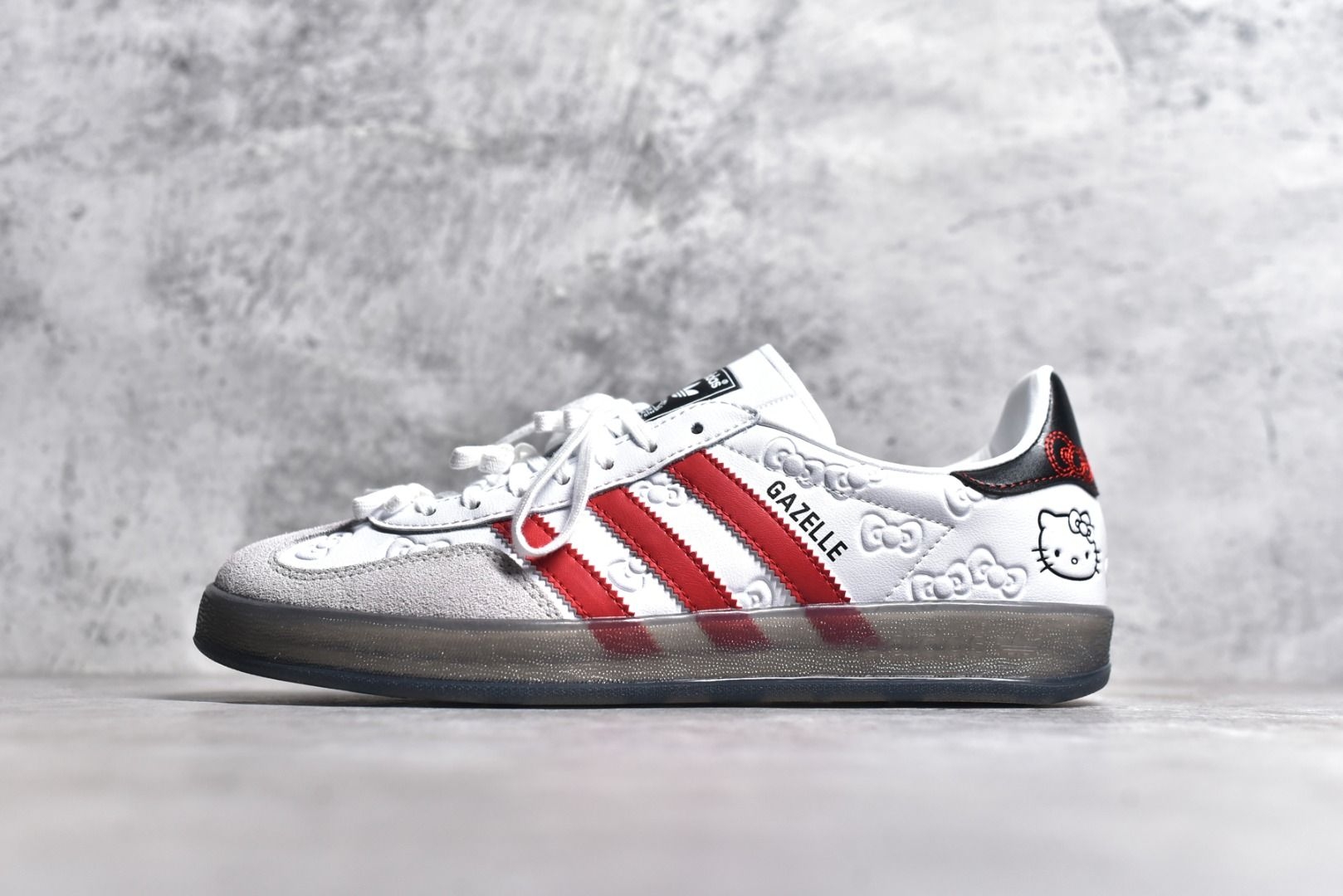 今天分享一双阿迪达斯凯蒂猫联名配色的Gazelle,凯蒂猫的元素加持上脚后非常的可爱。