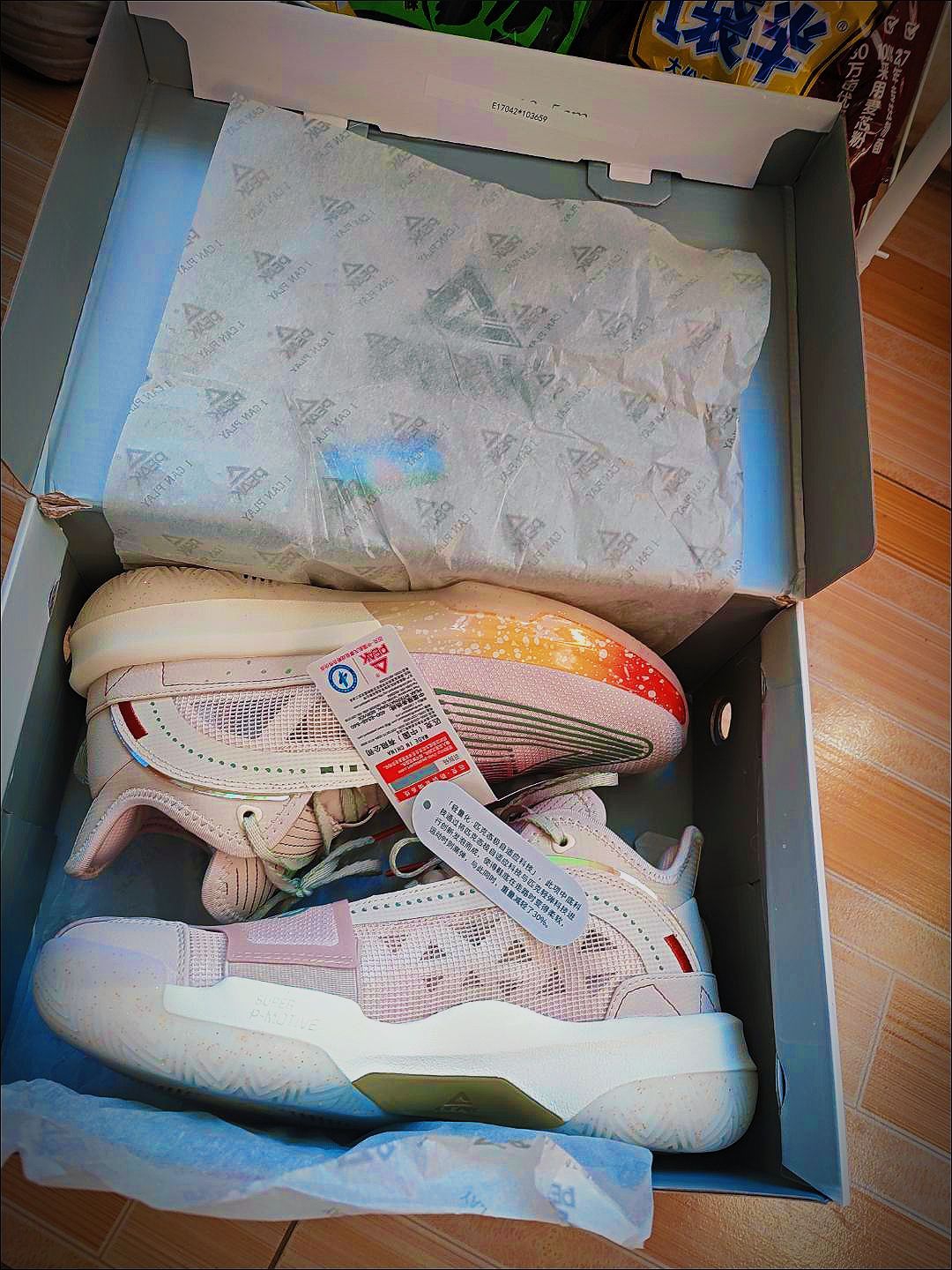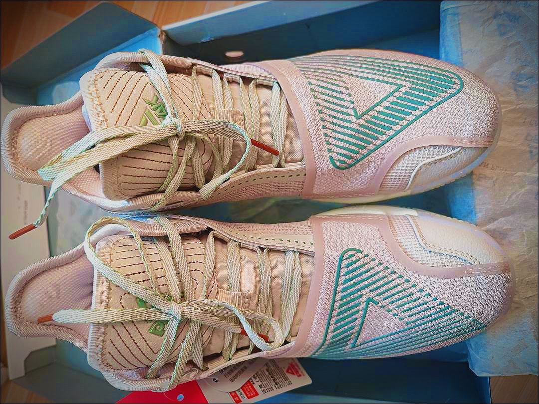 这双匹克大三角真的温柔又能打💚 粉绿渐变+魔术贴设计,质感在线,上脚清爽又吸睛。 缓震和包裹都很顶,变向不拖沓,日常搭运动裤也很出片,学生党闭眼冲。