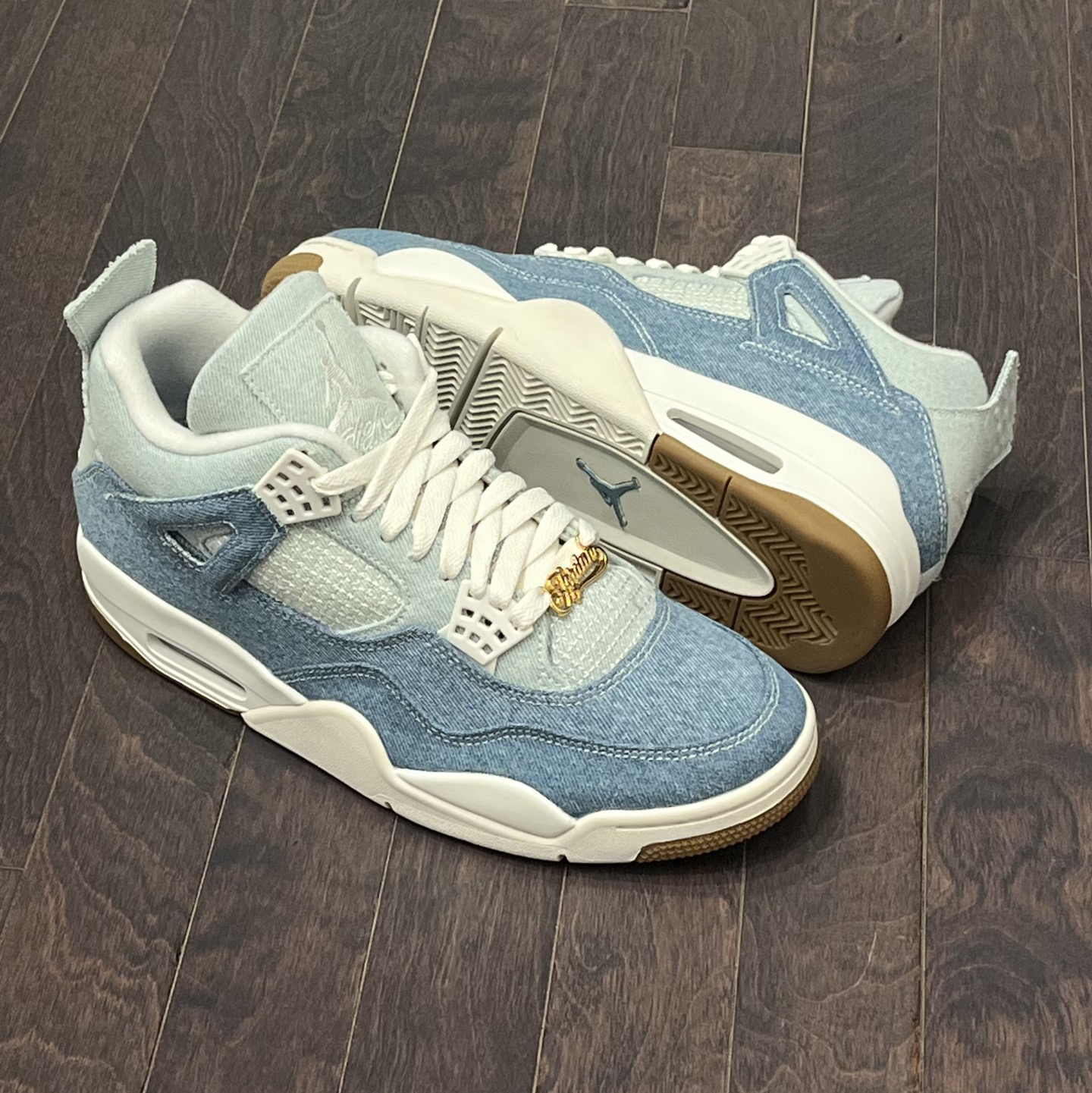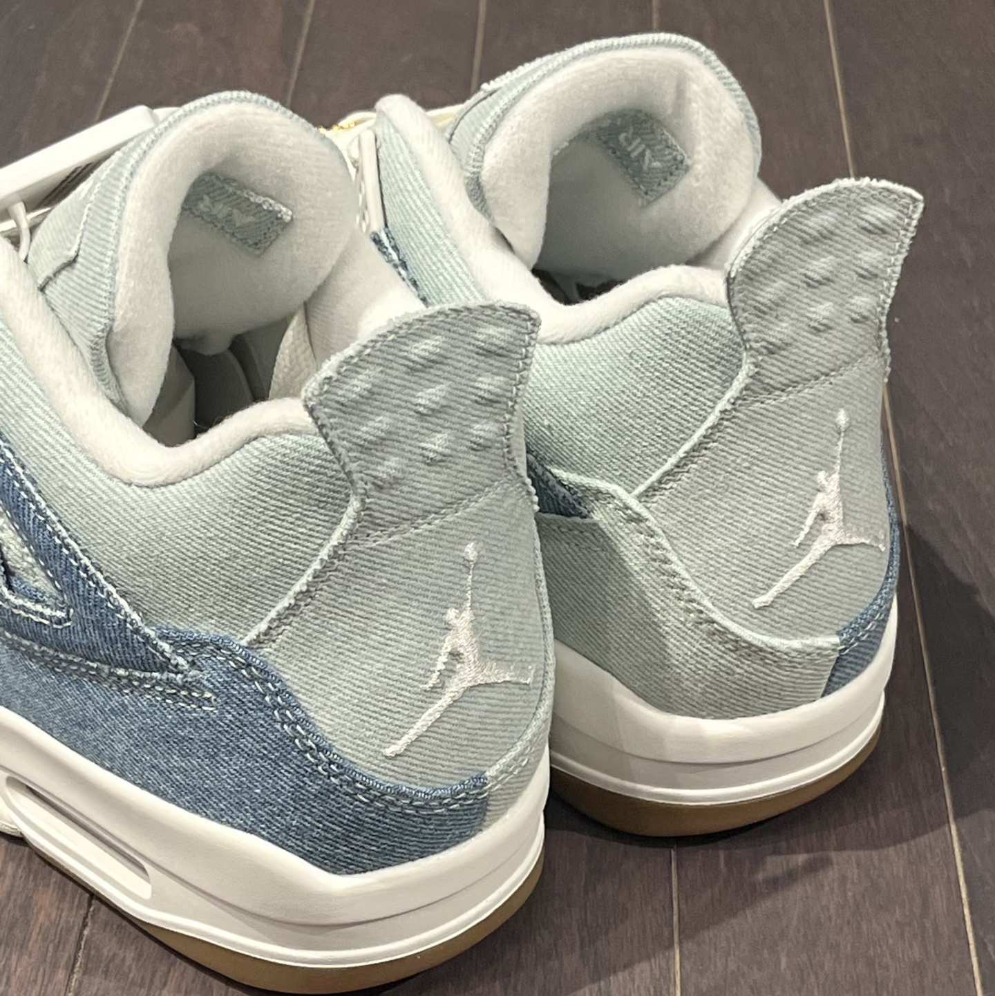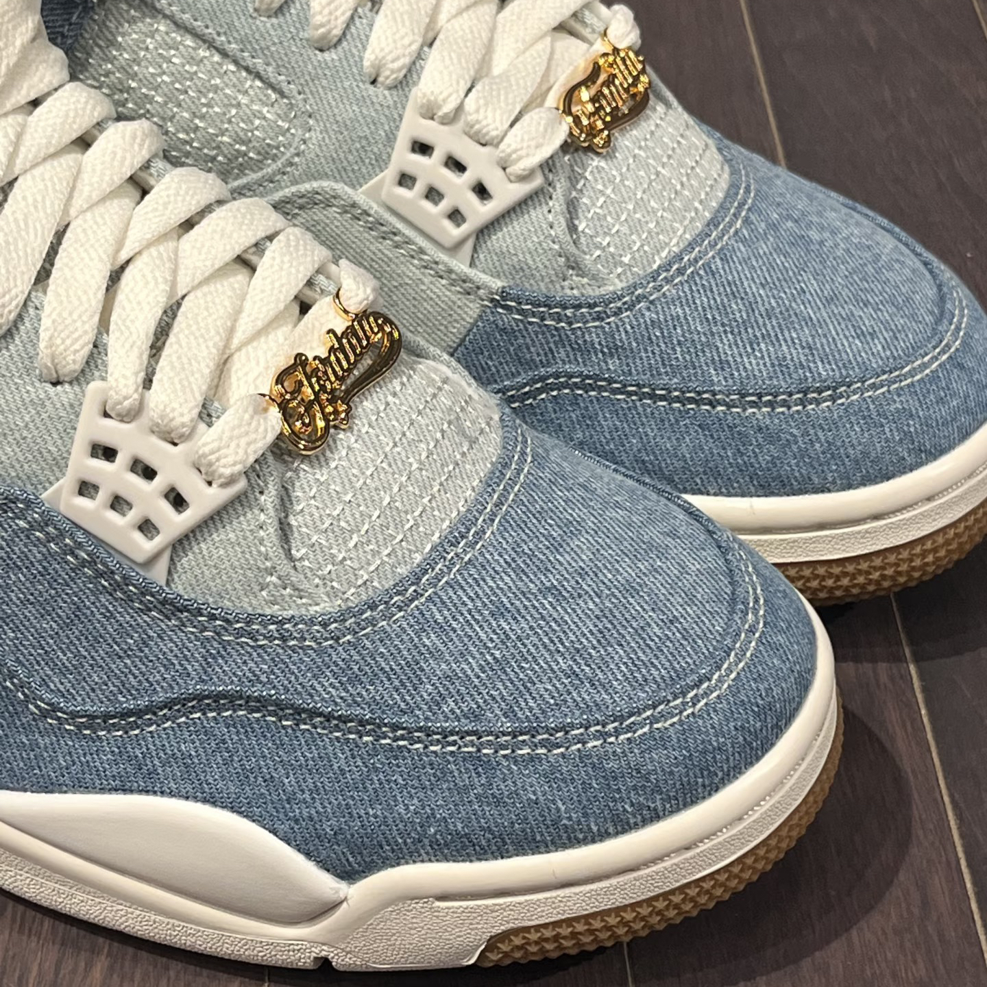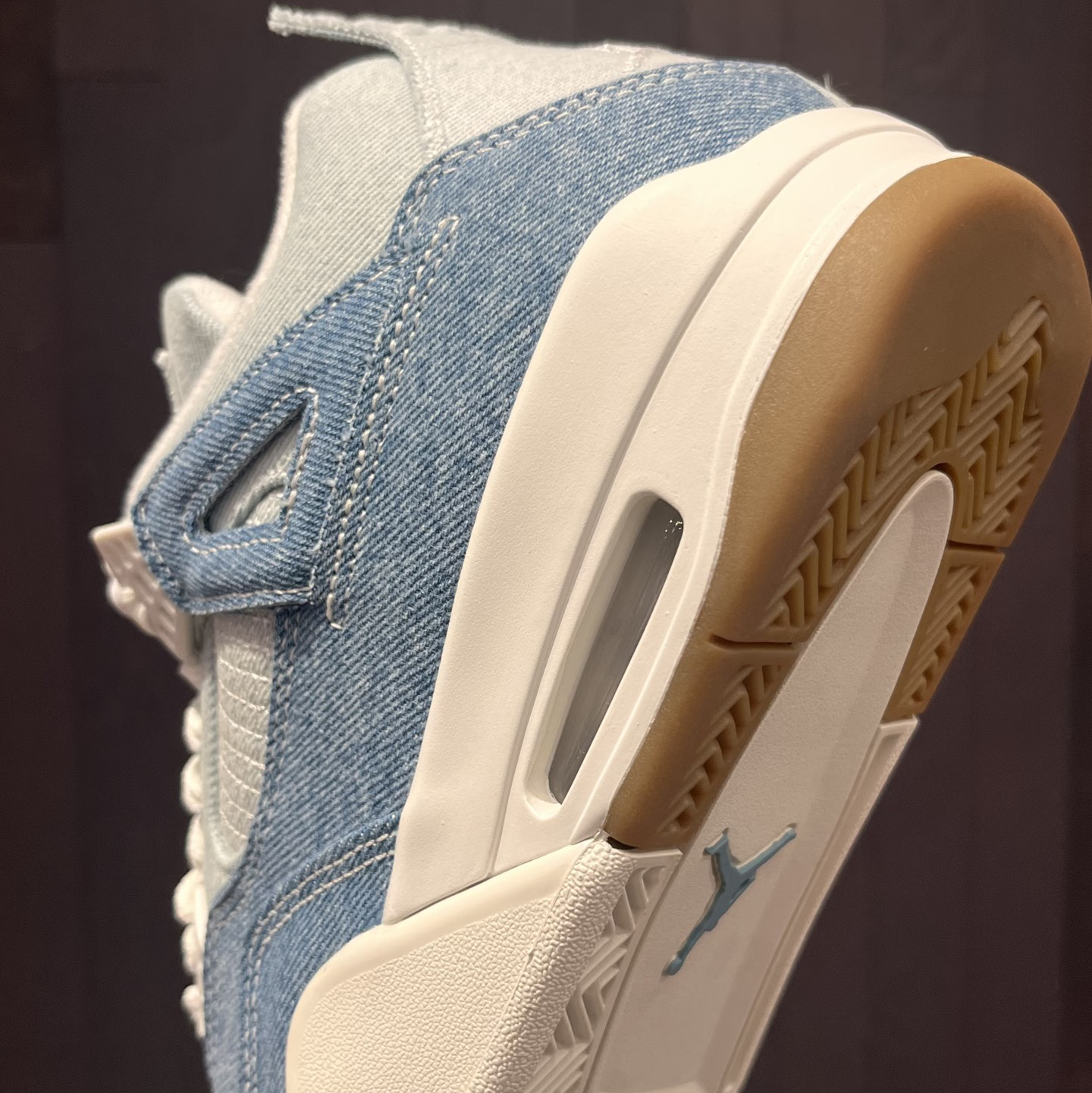 Air Jordan 4 Retro “Denim”(牛仔布)也被称为AJ4牛仔。 鞋面采用深浅不同的水洗牛仔布拼接,搭配白色中底和生胶外底,鞋带孔处点缀金色金属扣,鞋舌上有醒目的橙色NIKE飞人吊牌,整体风格复古又街头。 作为经典AJ4的衍生配色,它既保留了AJ4标志性的透气网眼、后跟可视气垫等篮球鞋功能,又通过牛仔材质提升了日常穿搭的潮流感,适合搭配休闲、工装等风格。