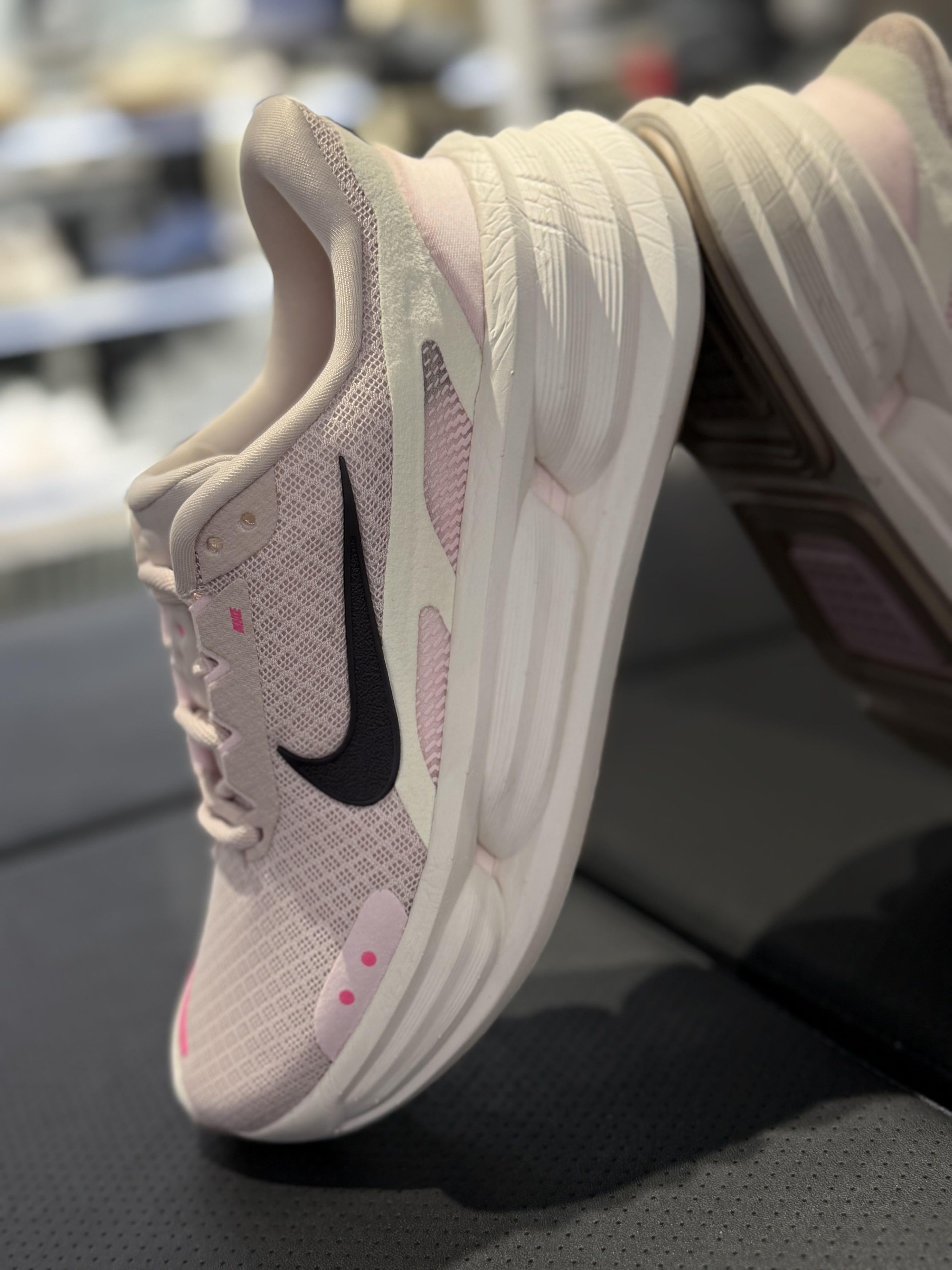 Nike樱花粉跑鞋也太懂女生了吧 谁能拒绝这双温柔到骨子里的樱花粉Nike跑鞋啊🌸 上脚直接被软弹脚感惊艳到,厚底还悄悄增高,显腿长一绝! 鞋面是透气网布材质,夏天穿也不会闷脚,黑粉勾的撞色设计又甜又酷,日常搭运动裤、牛仔裤都超适配~ 不管是健身跑步还是日常出街,这双都能hold住,颜值和实用性双在线! 已经列入我的年度本命运动鞋清单了,Nike你是真的会拿捏少女心💖