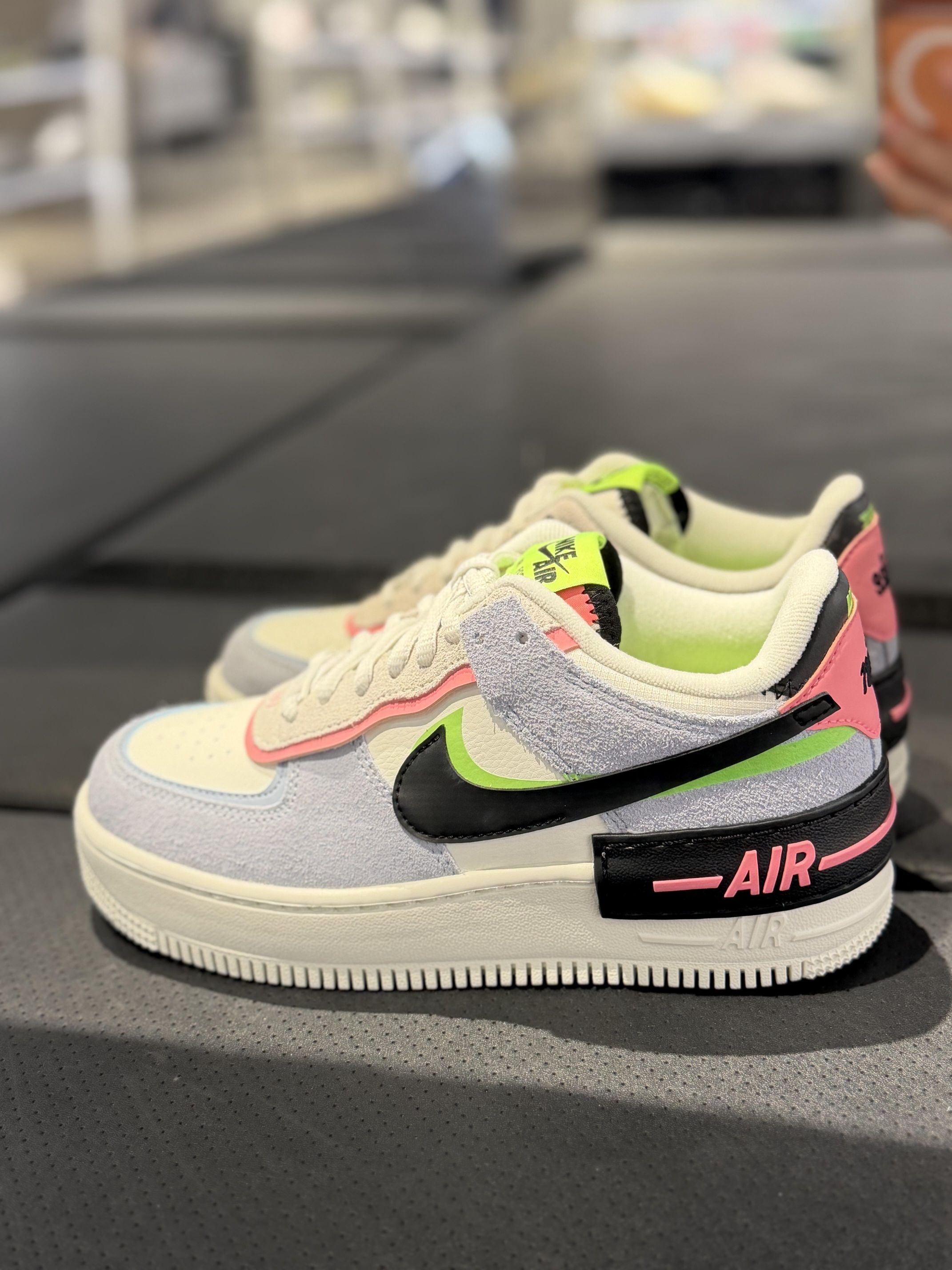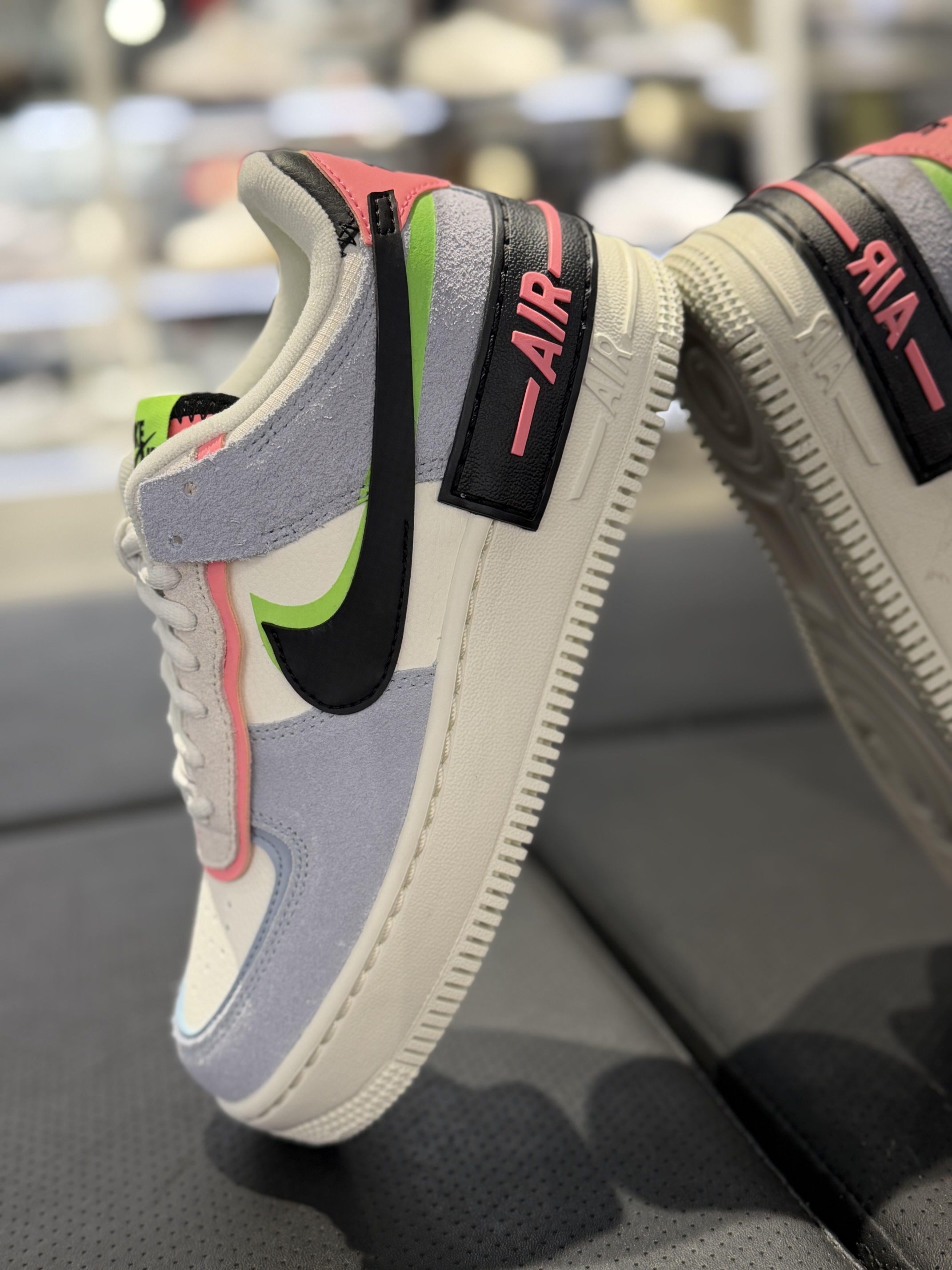 谁能拒绝这双配色甜到心坎的AF1!浅紫麂皮拼接蜜桃粉+荧光绿,撞色大胆又不违和,解构设计还多了点酷飒感~脚感软软的,日常出街搭牛仔裤、小裙子都超合适,甜妹辣妹风一键切换✨