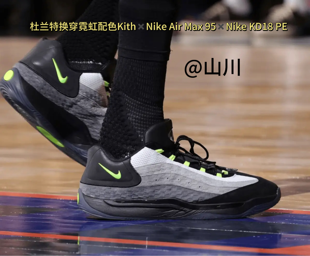 阿德巴约上脚黑绿色Air Jordan 40 PE 唐斯上脚Nike G.T Jump2 PE 得到25分7篮板1助攻1抢断 杜兰特换穿霓虹配色Kith✖️Nike Air Max 95✖️Nike KD18 PE以及全明星配色Nike KD18 得到30分6篮板3助攻 文班亚马上脚白橙色Nike G.T Hustle3 PE 得到28分15篮板6助攻1抢断4盖帽 坎宁安上脚Nike G.T Cu...