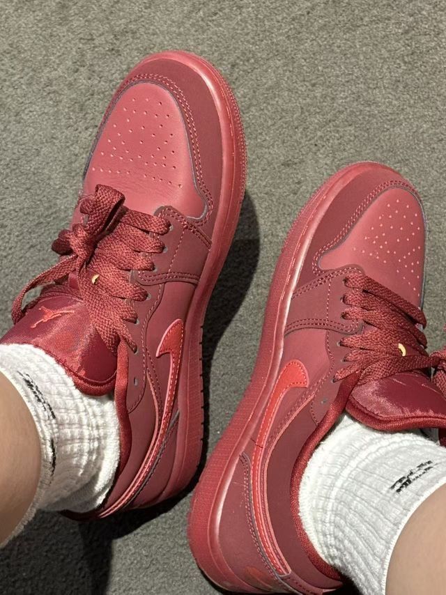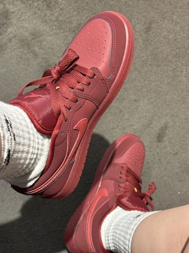谁能拒绝一双全红AJ1啊! 哑光酒红皮革+同色中底,自带高级氛围感,像把情人节的浪漫穿在脚上。 搭配白袜和休闲裤,甜酷感直接拉满,不管是约会还是出街,都能成为全场焦点。 这双鞋不仅是球鞋,更是情人节最浪漫的告白💌