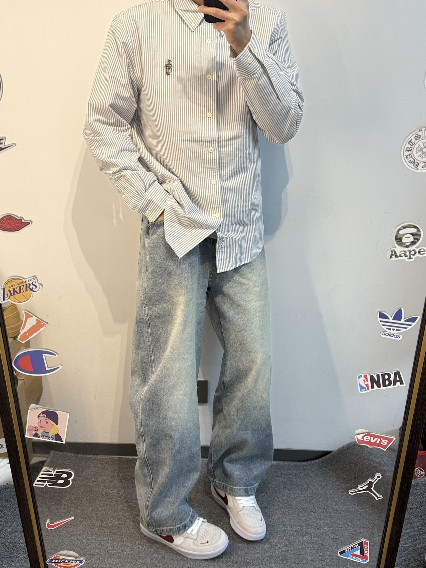 男孩子的春季清爽穿搭 上身条纹衬衫外套 搭配蓝色牛仔裤 这套搭配很有个性气质 裤子显高又显瘦的感觉! #这条裤子我必买 #今日份穿