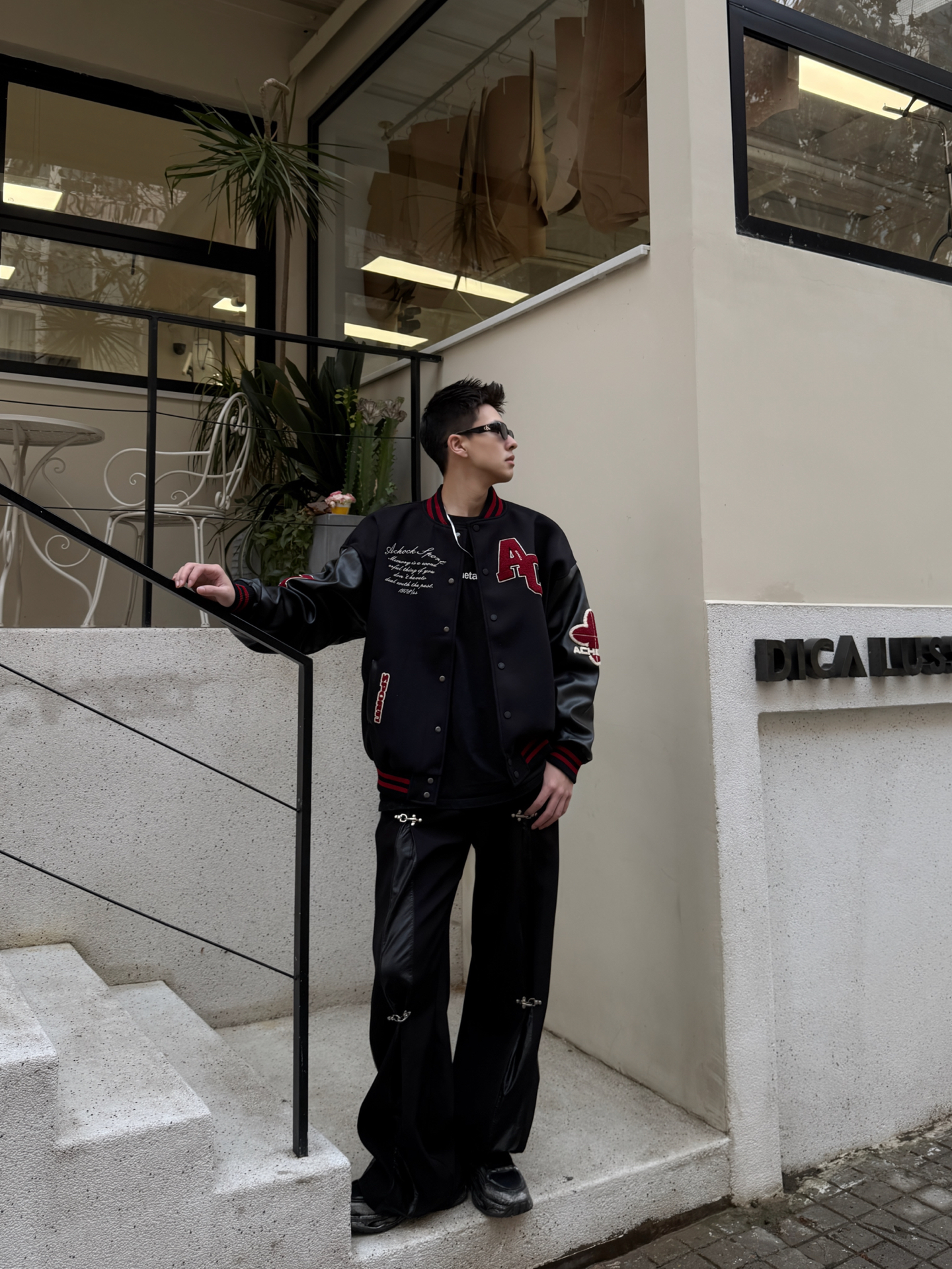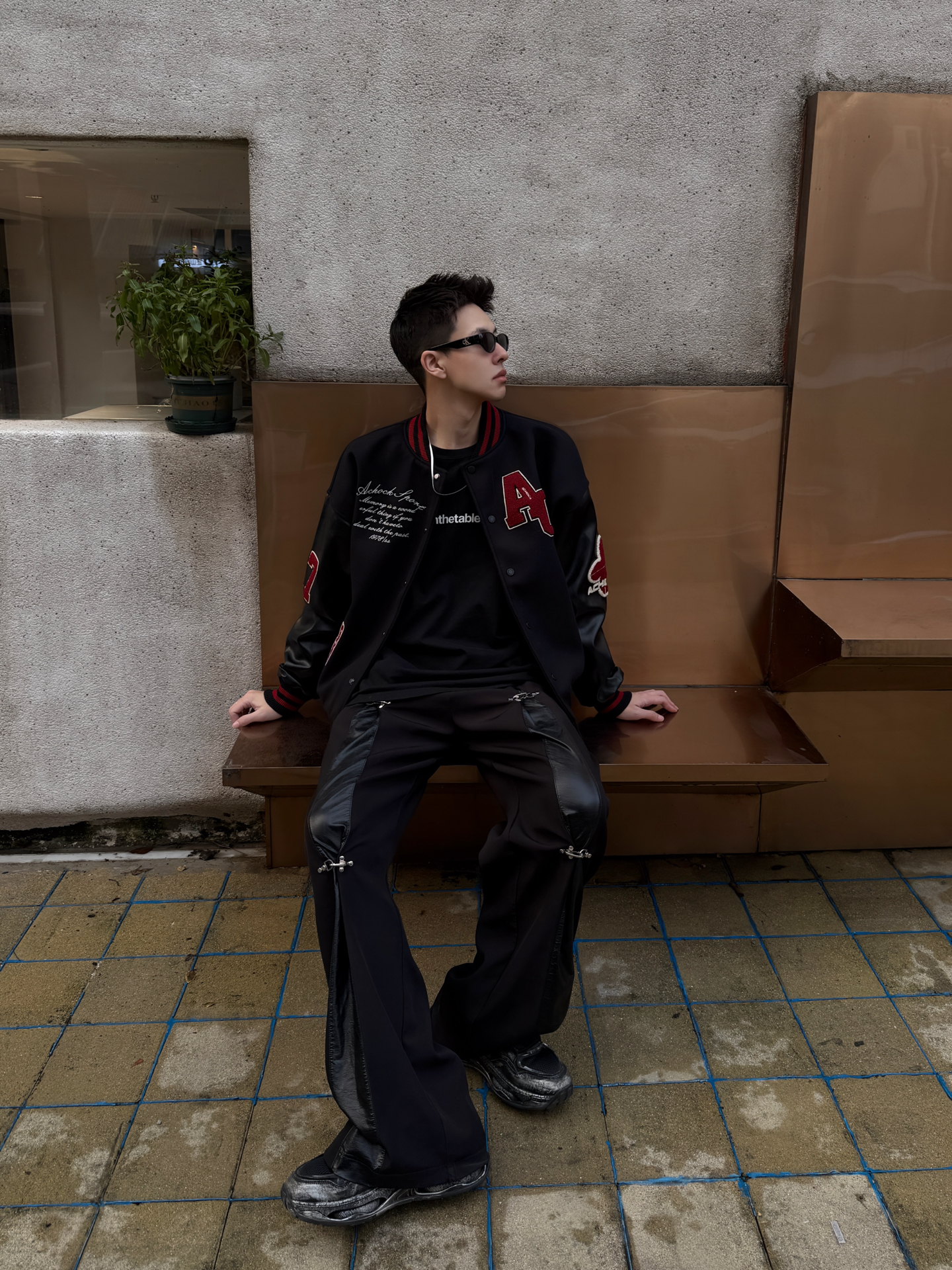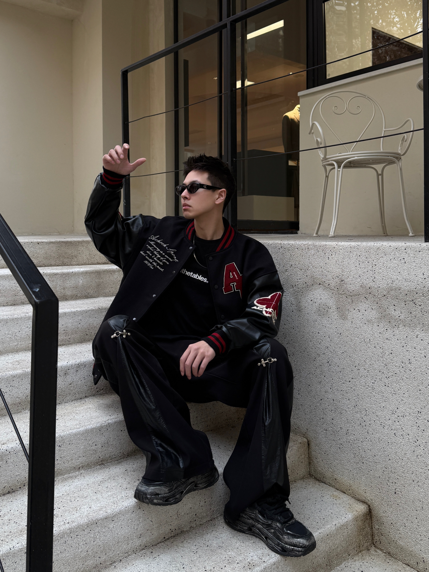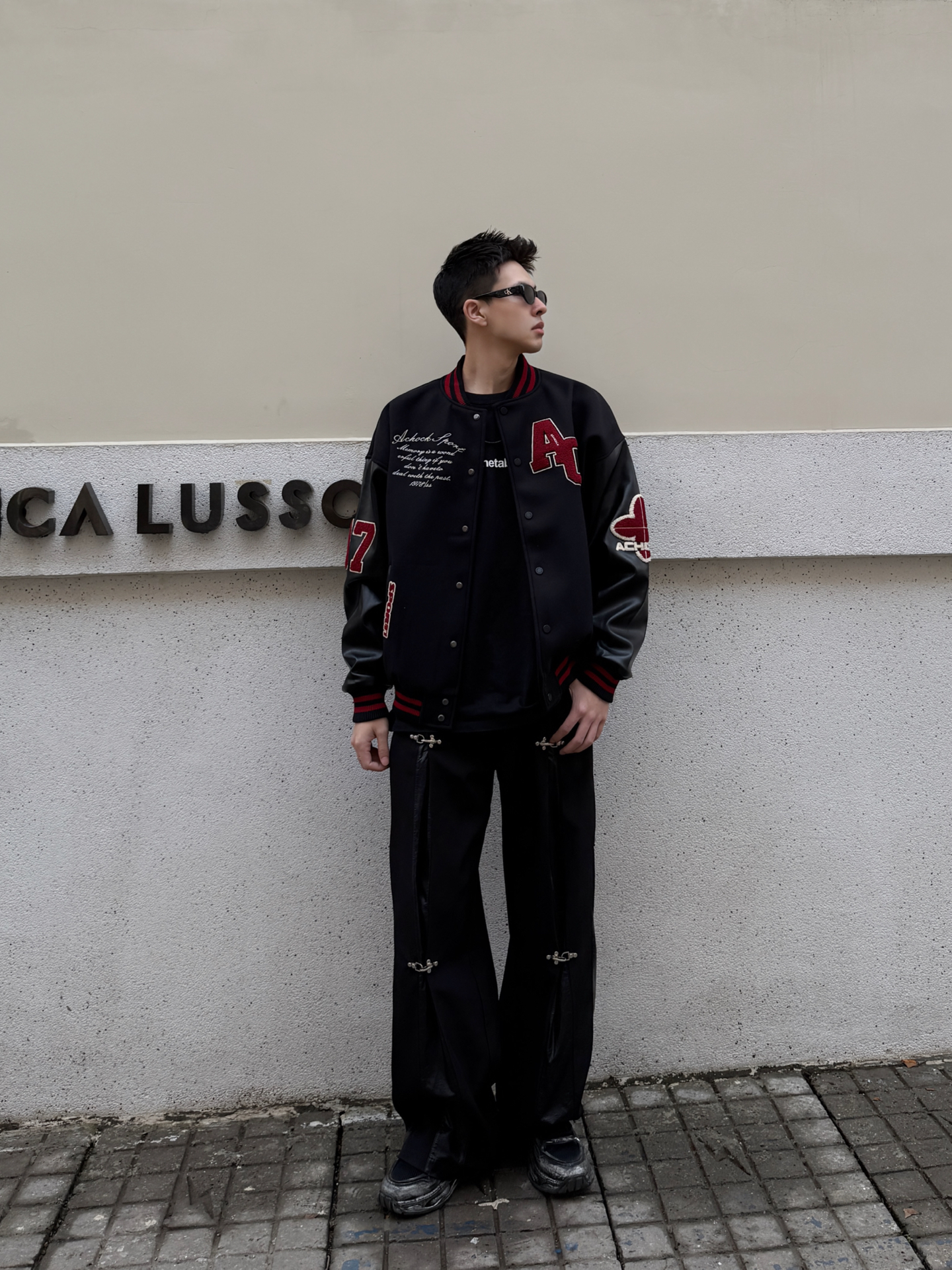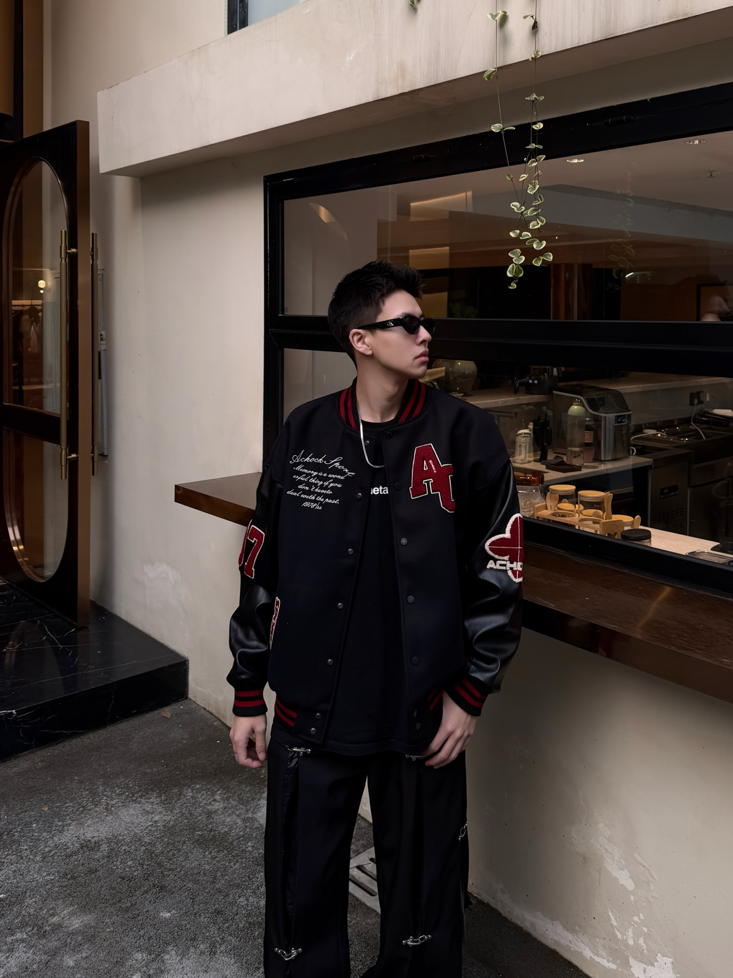 开春想穿得复古又吸睛?这件A chock美式复古棒球服直接把氛围感整明白了! 黑红撞色拼接自带复古张力,皮质袖管与毛呢衣身碰撞出硬核质感,胸前“AC”字母刺绣与背后“ACHOCK”印花自带腔调,打破了传统棒球服的单调感,在低调中透着吸睛气场。 宽松落肩版型对各种身材都超友好,藏肉又随性,重磅面料软而挺括,开春应对微凉天气也很安心。搭配全黑机能工装裤,利落的线条感弱化腿部线条,再踩一双复古板鞋,整...