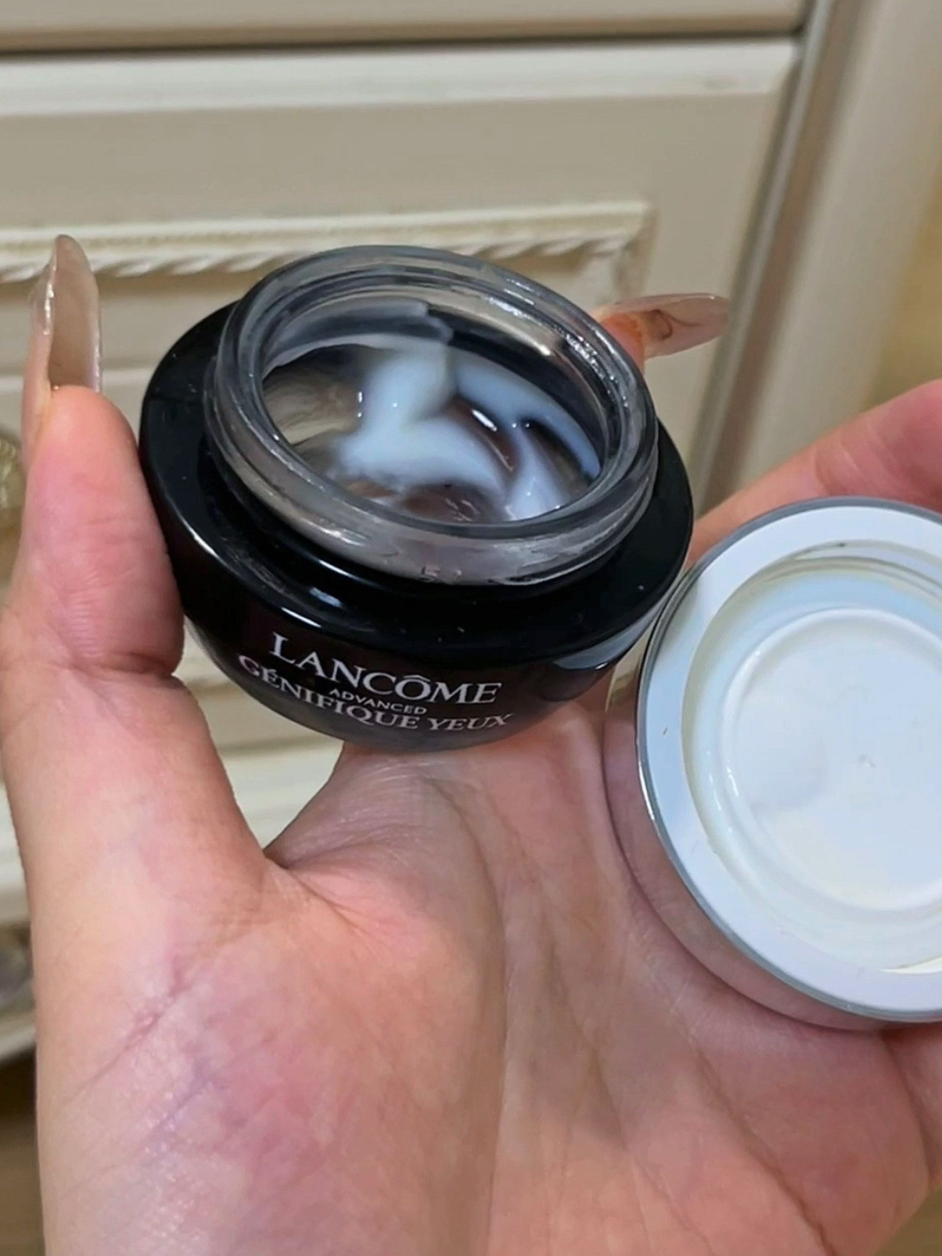 朋友送的生日礼物,直接用到空瓶!新版小黑瓶眼霜质地丝滑好吸收,眼周一天都润润的。黑眼圈淡了,小细纹也隐形了,熬夜党素颜出门无压力!下一瓶已回购,继续锁死!