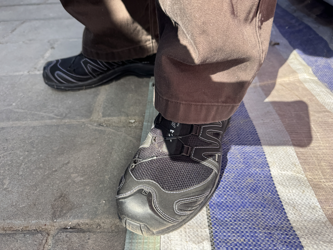 黑缝线真的太好看啦!怎么搭配都硬! 萨洛蒙脚感出色,刚刚上脚略微顶足弓,但是没想到行走起来很是舒服!