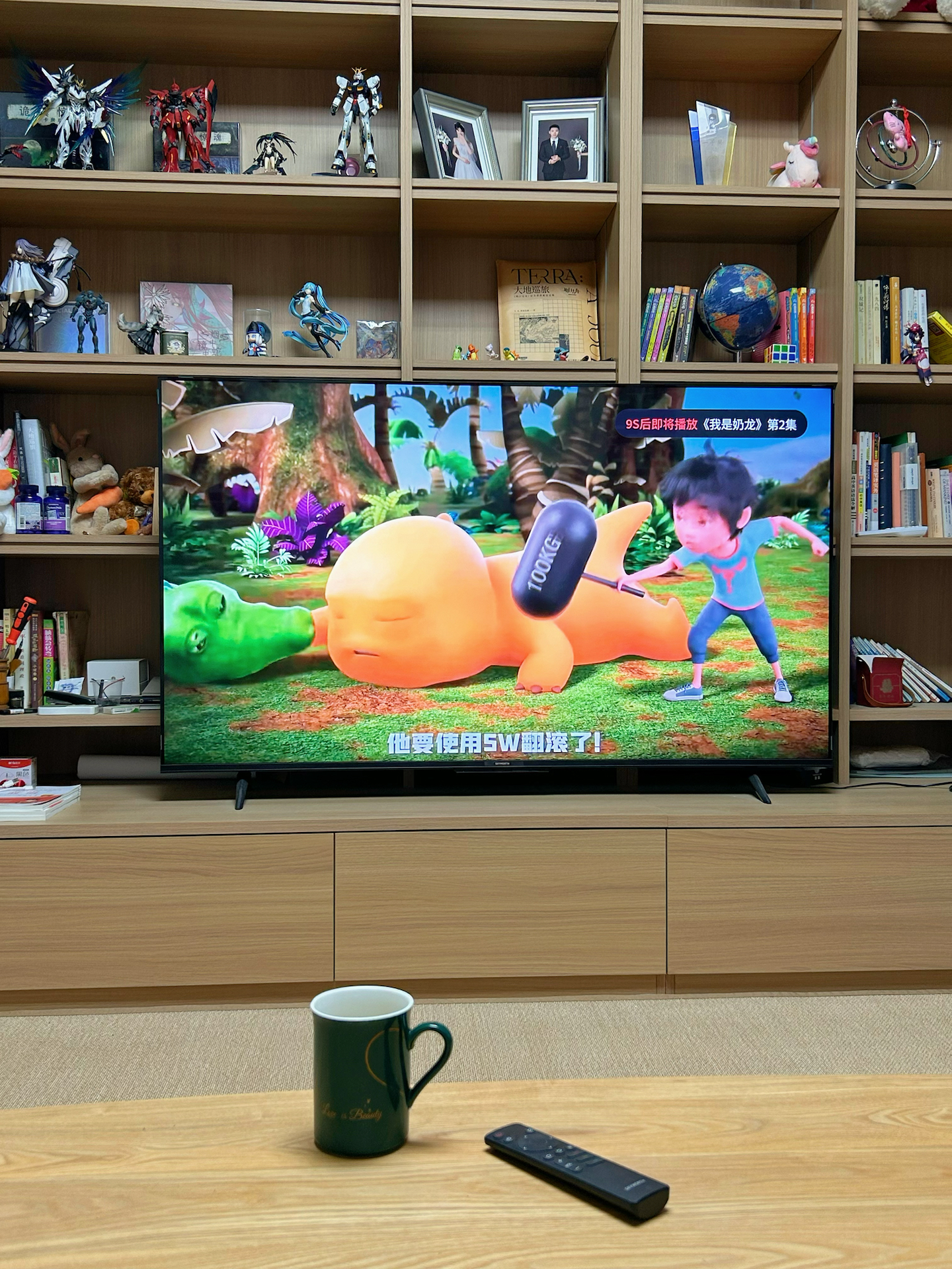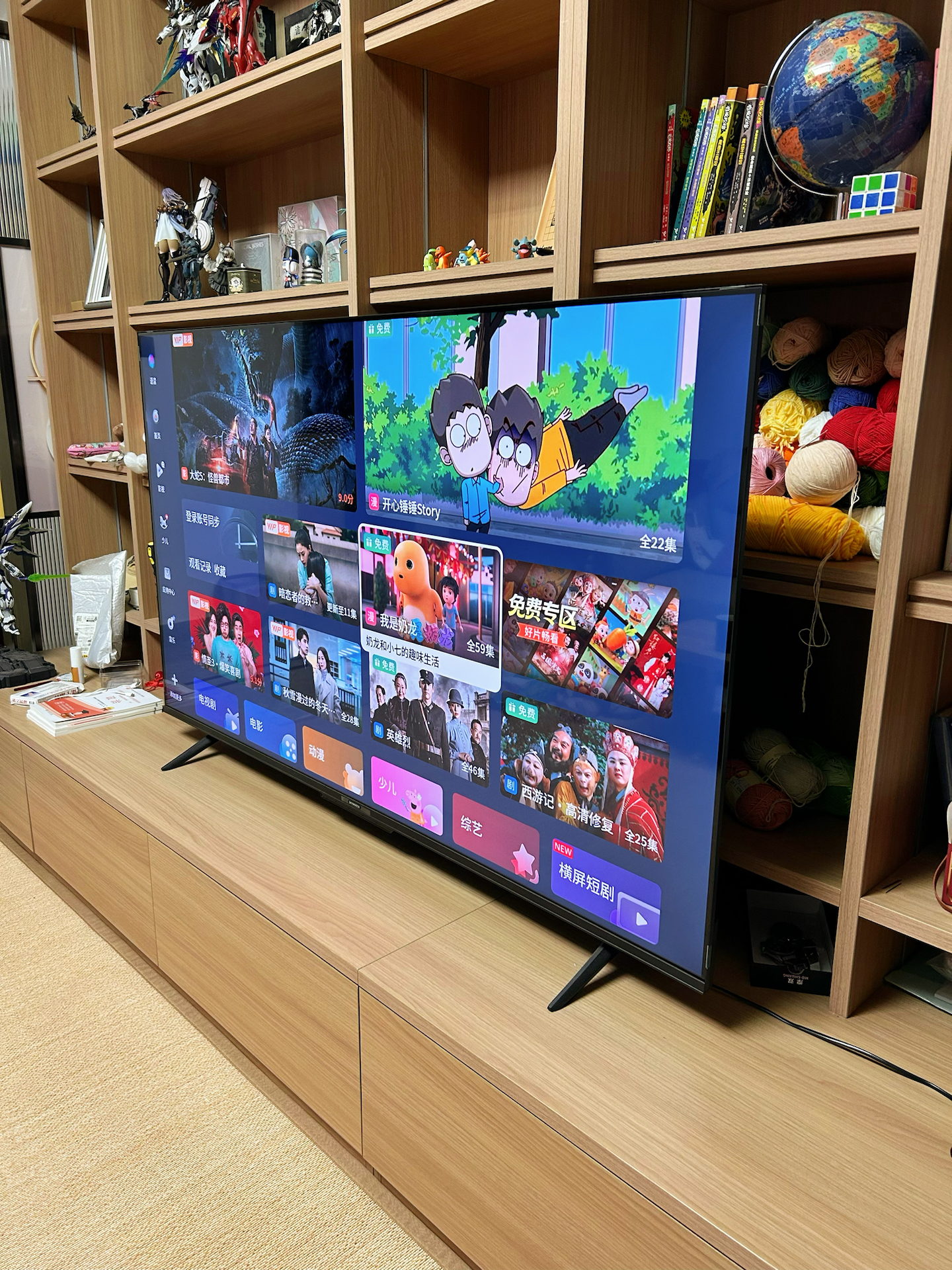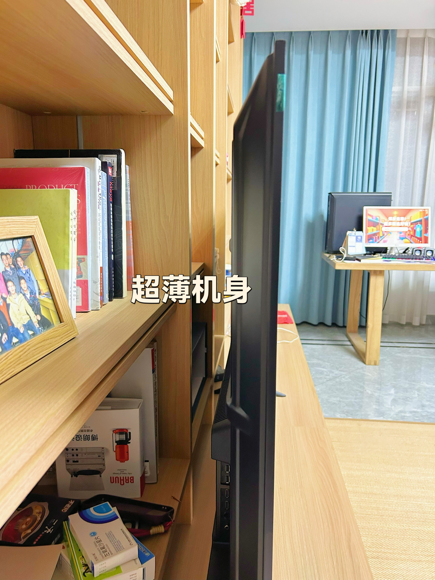 我家新换的这台电视,65寸摆在客厅真的好气派! 追剧、看球赛的时候,大屏幕看着太得劲了⚽️,打开杜比音效,沉浸感直接拉满~平时办公也能派上用场。 语音控制开关电视,对我这种懒人太友好啦! 底座很稳,放在书架上正合适。不过机身虽然薄,但因为屏幕大,搬的时候还挺沉的。后面接口也多,外接设备很方便~ 有了它,我宅家的快乐又升级啦🥳!