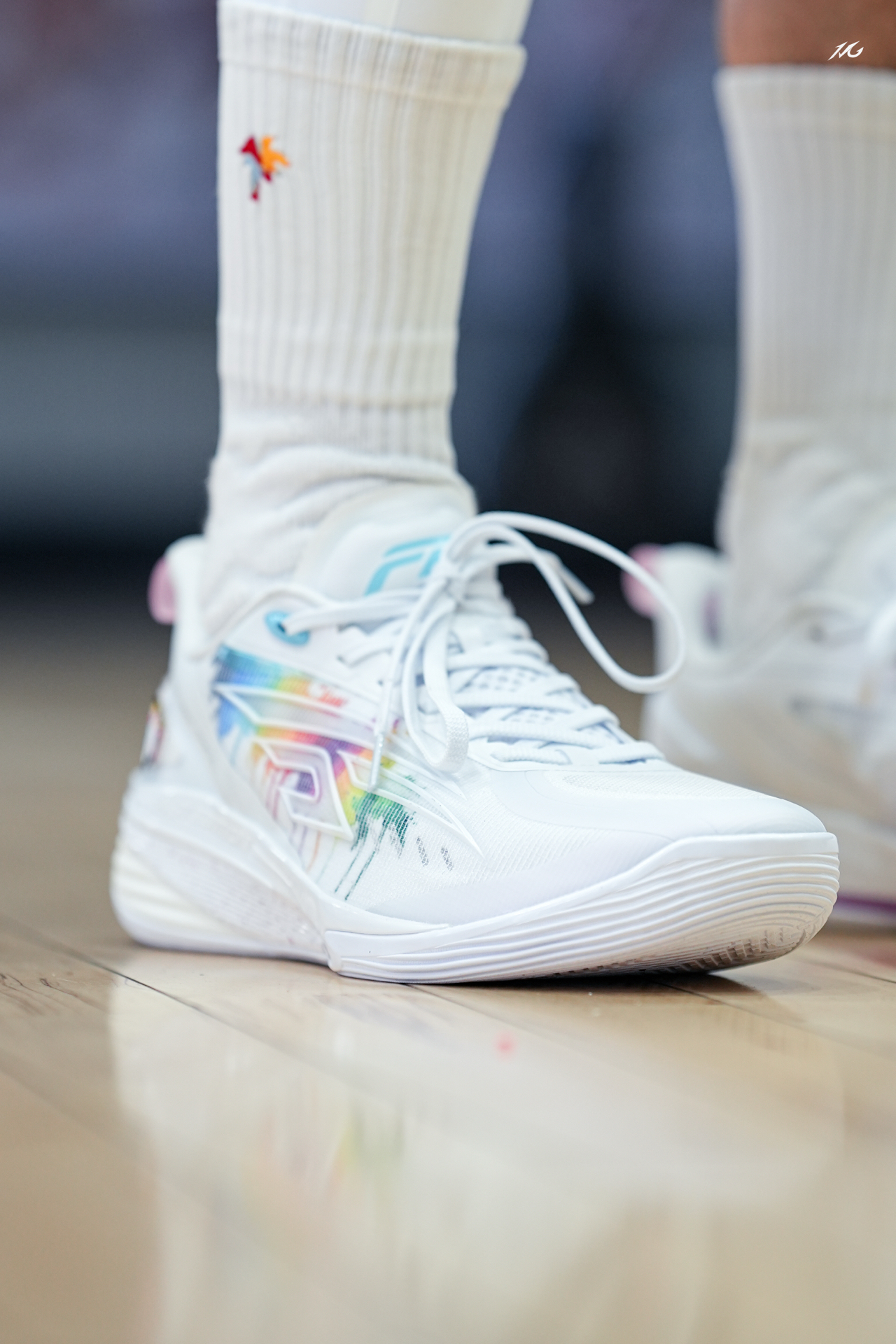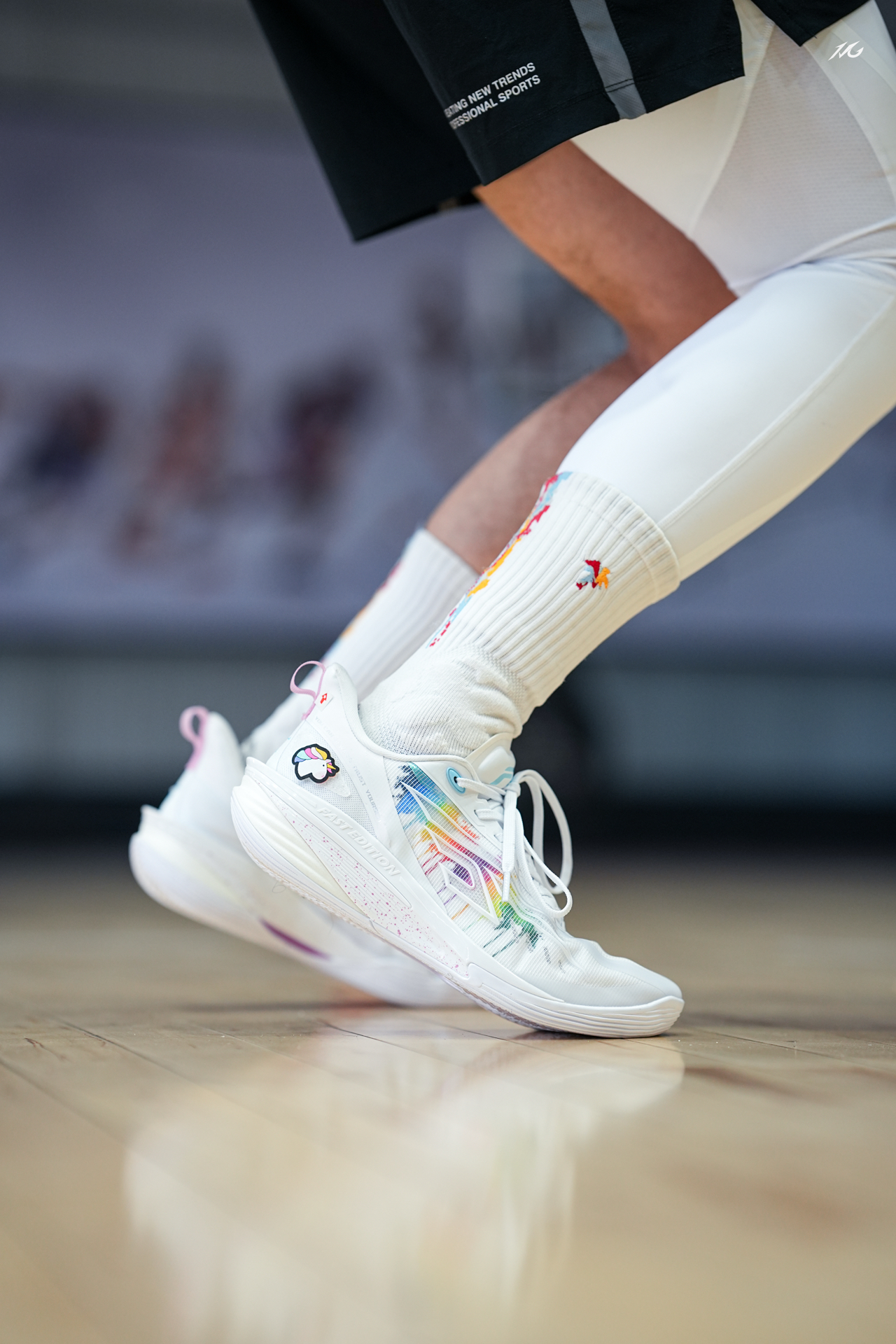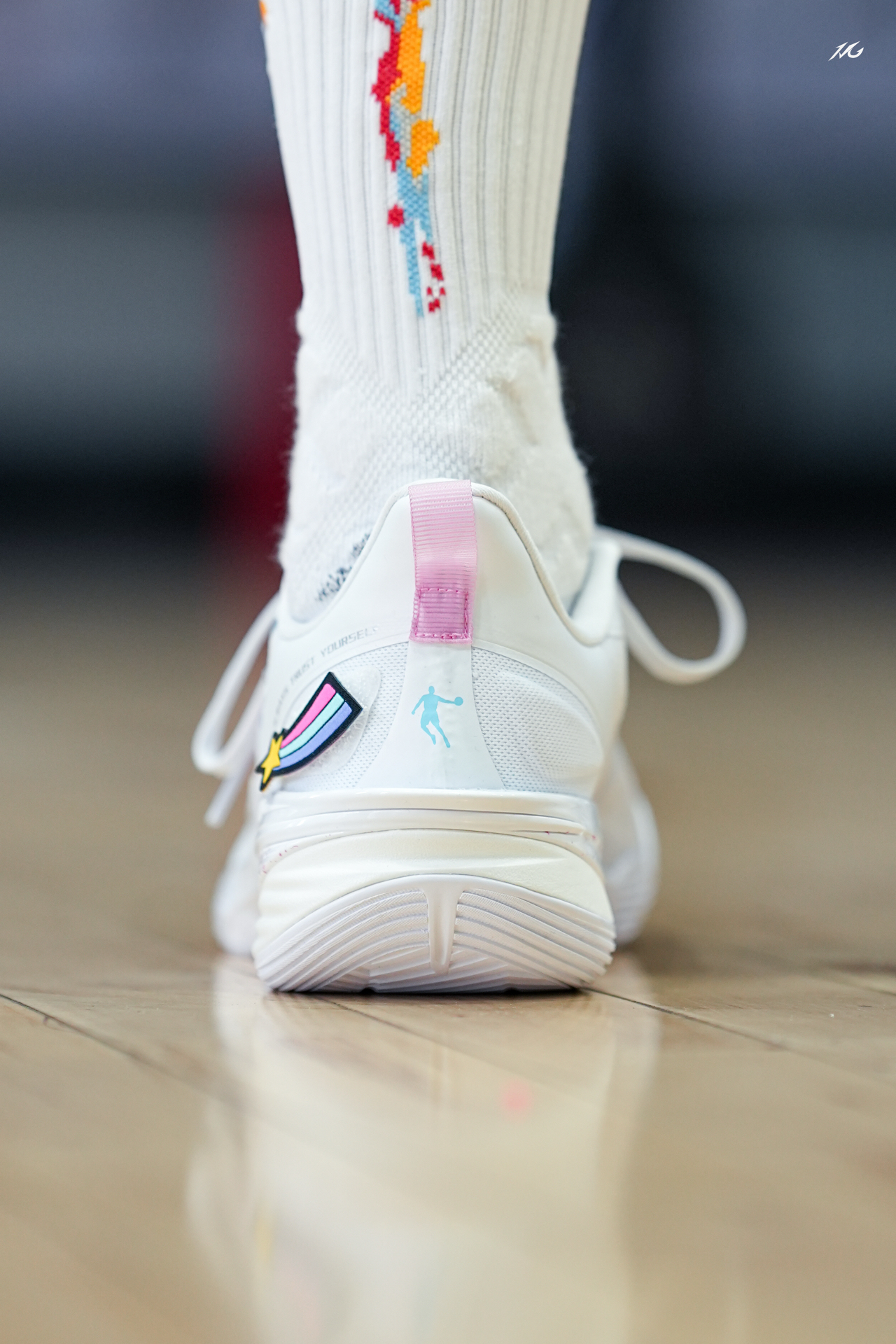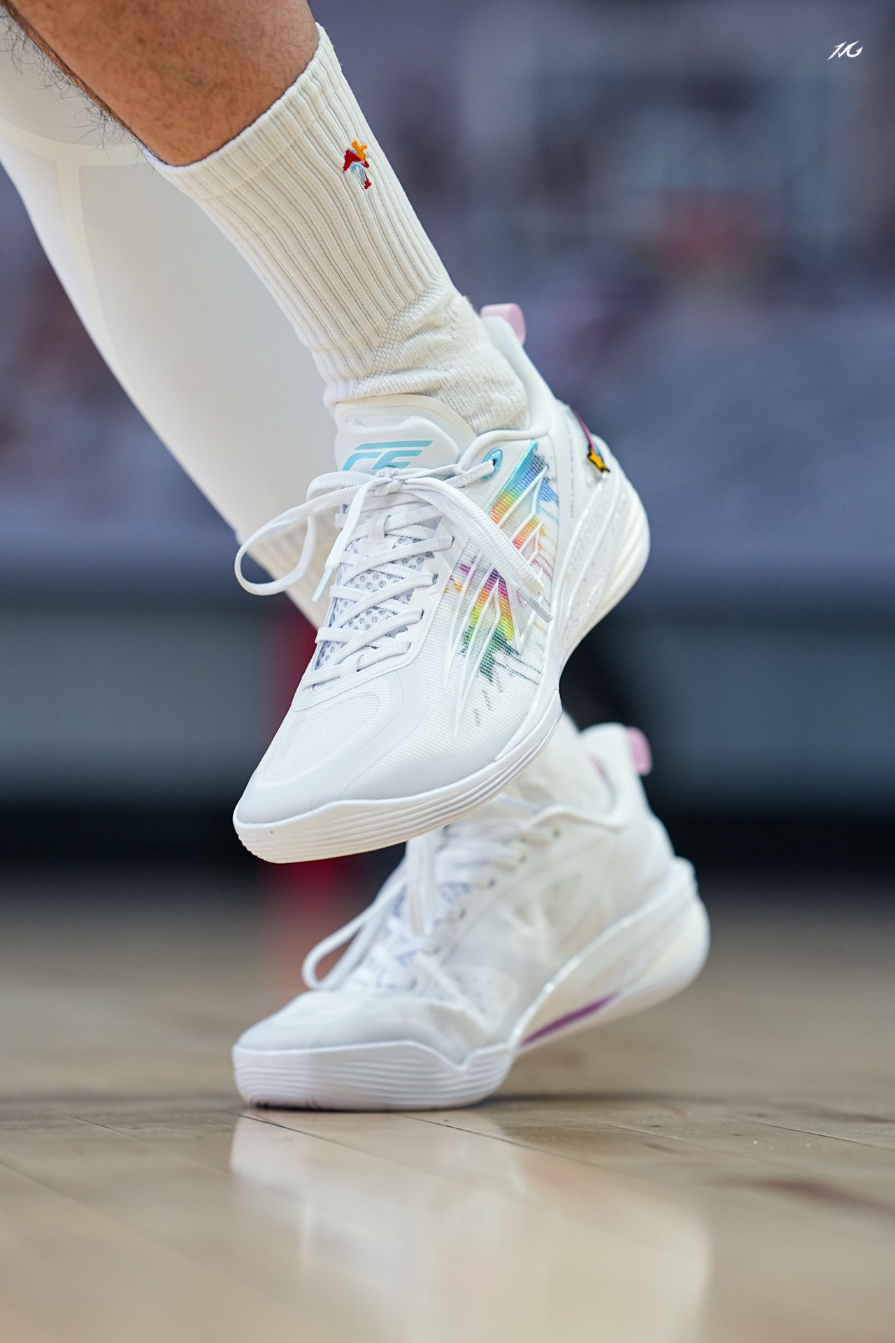 中乔这个FE系列我也算从一代到这个最新的四代都体验过了(真是转眼四年就过去了😭)! 先说四代这个彩虹小白马配色,上脚还是我喜欢白净中带点阳光感!尤其两只脚还用了魔术贴的形式粘了小马和彩虹,很可爱,打球的时候谁给我踩掉我肯定拼命! 其次说下上脚初体验,中底也是用上了一体成型工艺,将TPU片夹在了缓震材料中间就没啥割裂感,脚感轻弹感还不错! 脚型适配兼容性还行,微宽也可以穿的!具体长测过后再来报告! ...