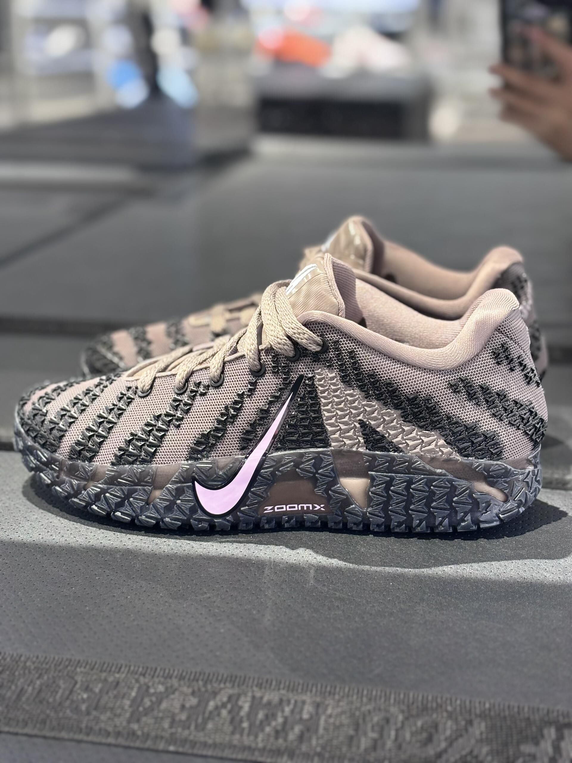 咖啡棕的鞋面配上浅粉色的Logo,妥妥的TS倒钩配色风格同时这个颜色也相对耐脏一些 整体编织纹路精致又特别,包裹性拉满💯在球场上急停变向都稳稳的 喜欢篮球鞋的宝子们觉得这款JA3如何?