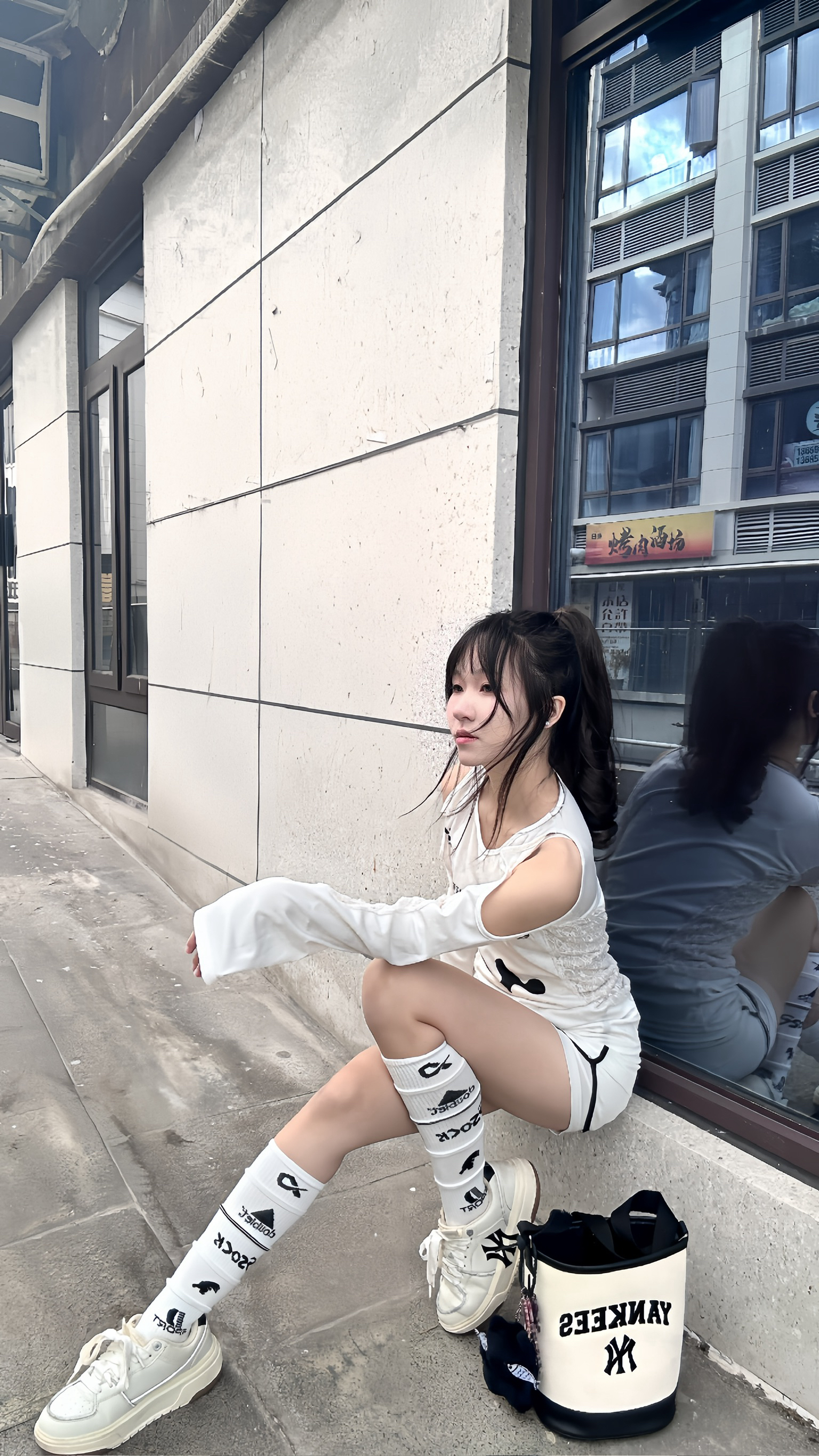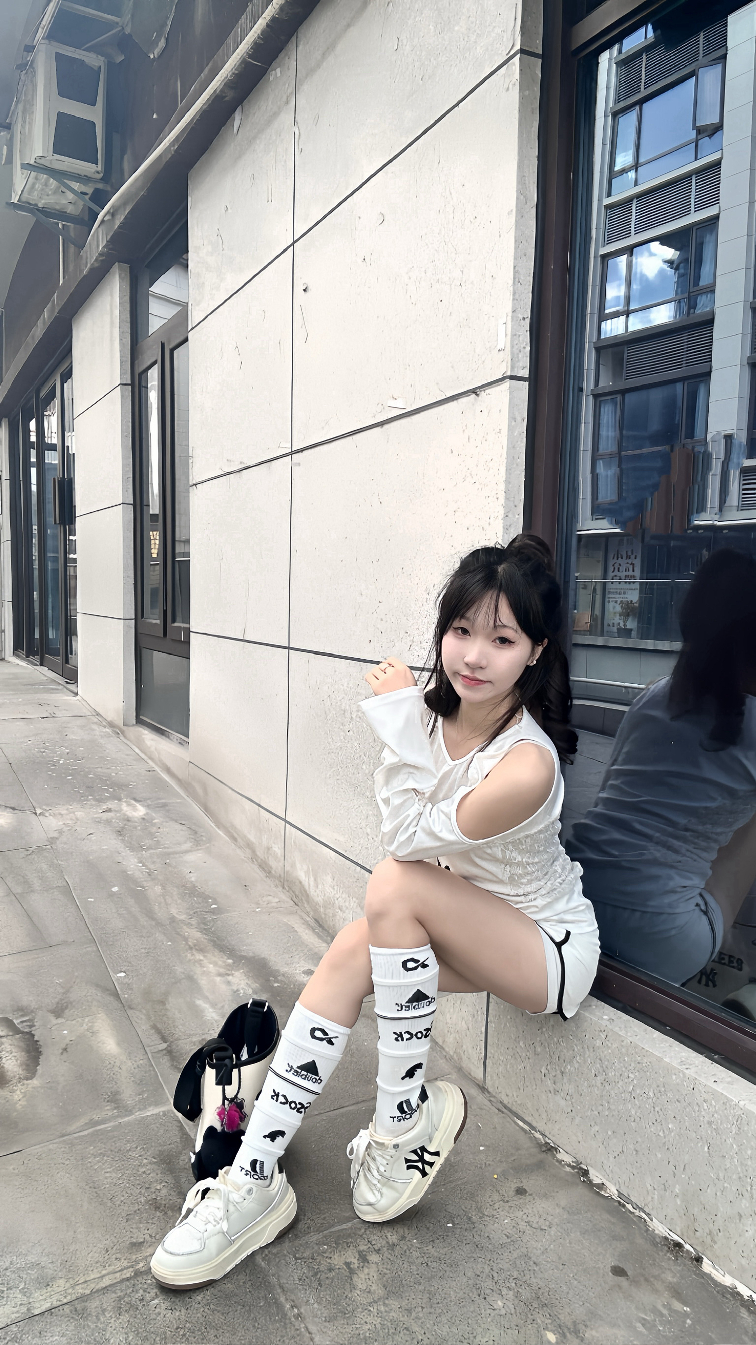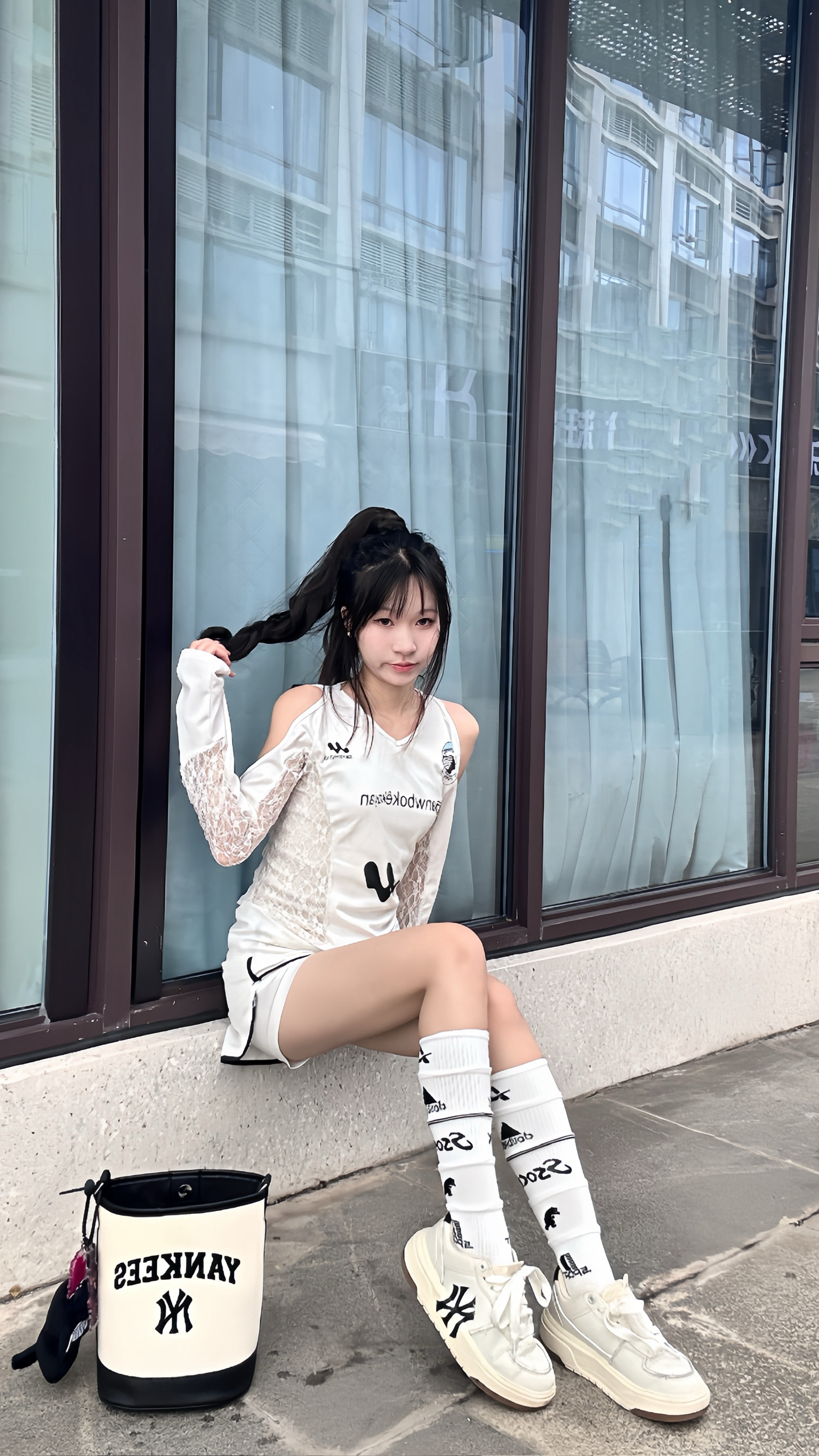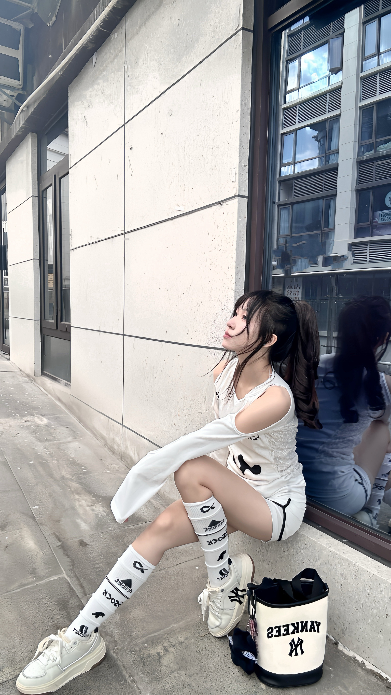 厚底设计直接隐形增高,奶白色皮质超百搭,配一身简约白裙清爽又干净。 搭个MLB水桶包,解放双手还能增加造型感,日常出街回头率满分,这套OOTD锁死! #张凌赫同款 #MLB小白鞋 #显高穿搭 #运动户外时髦派 #日常通勤穿搭