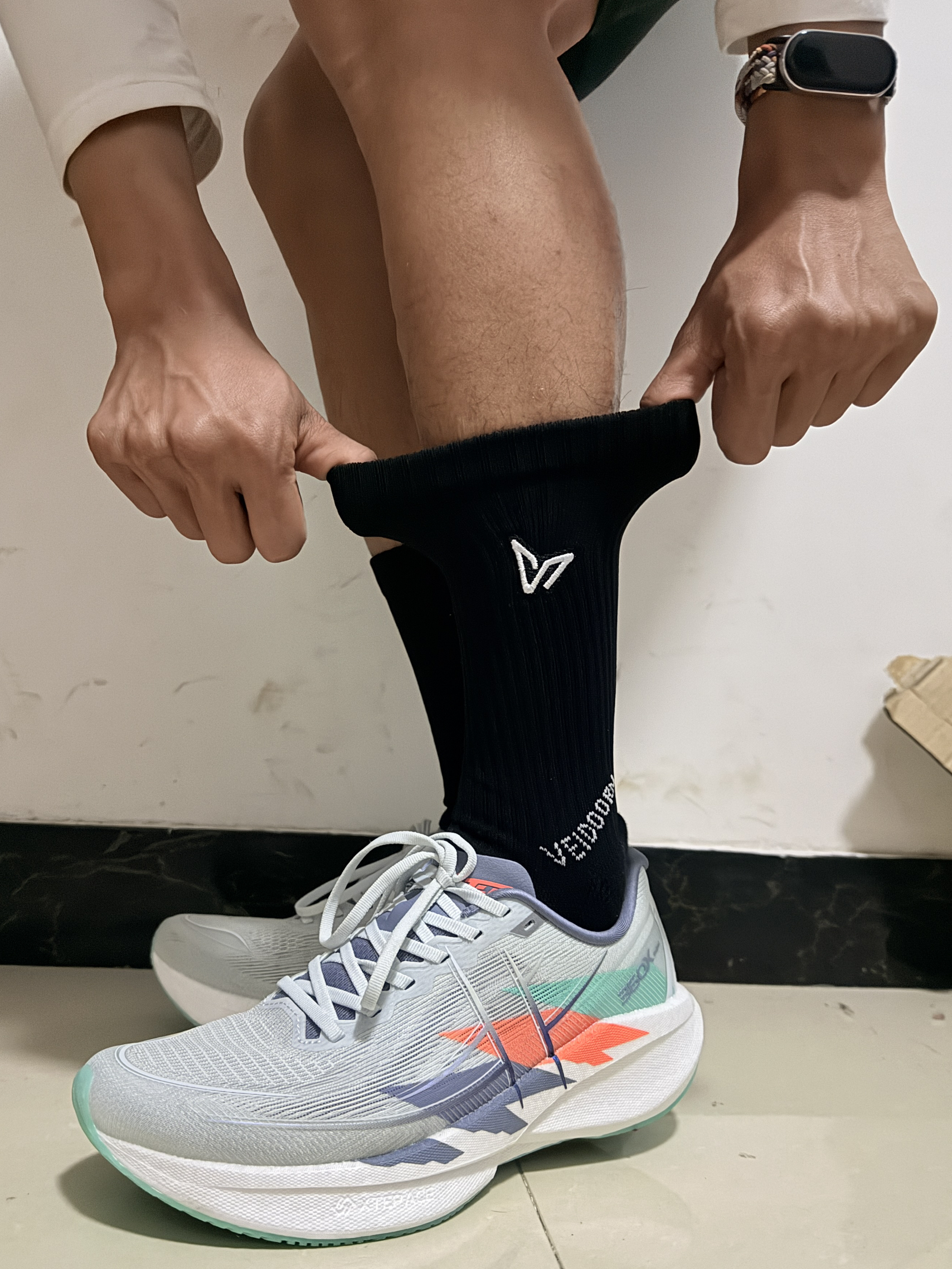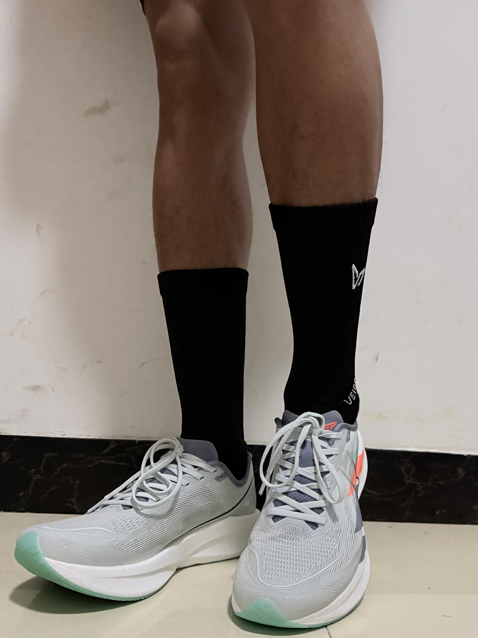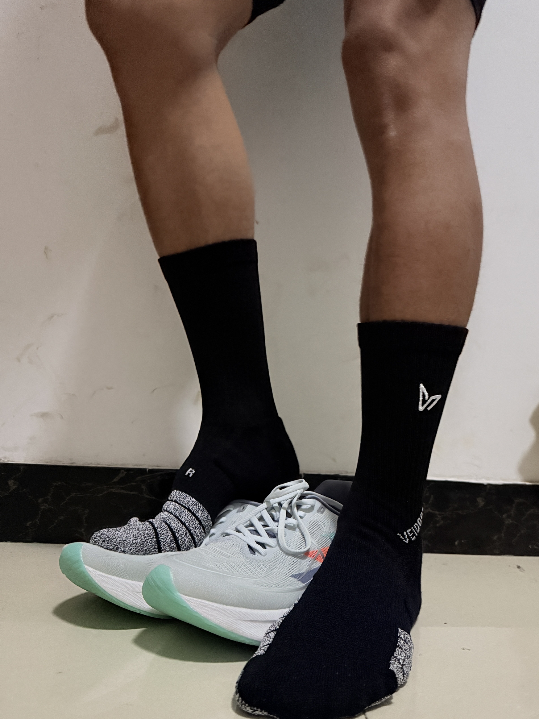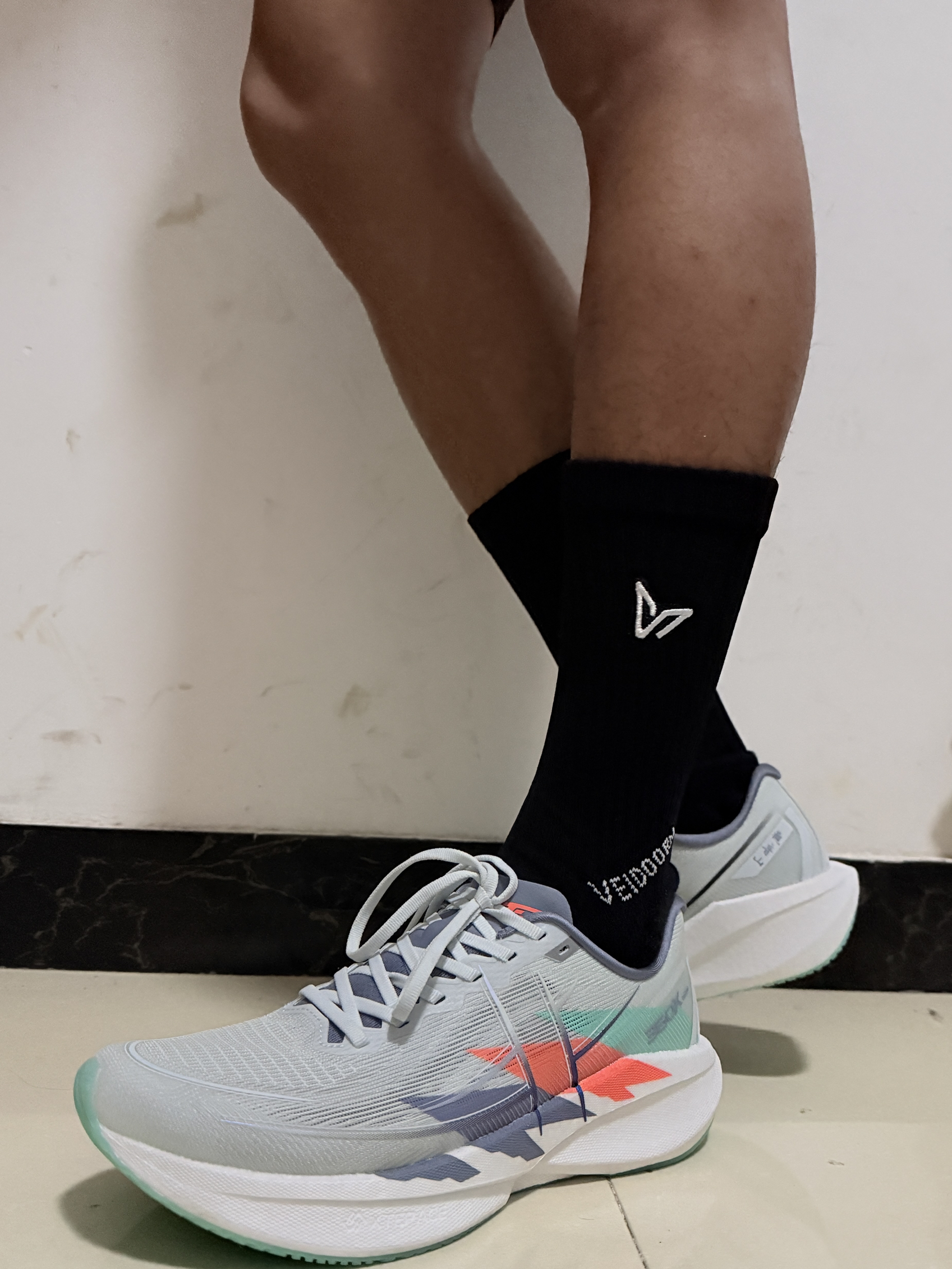 今天运动穿了一双跑鞋,还有一个袜子感觉还是挺不错的,这个搭配黑白配运动起来也很舒服,大家感觉怎么样呢?