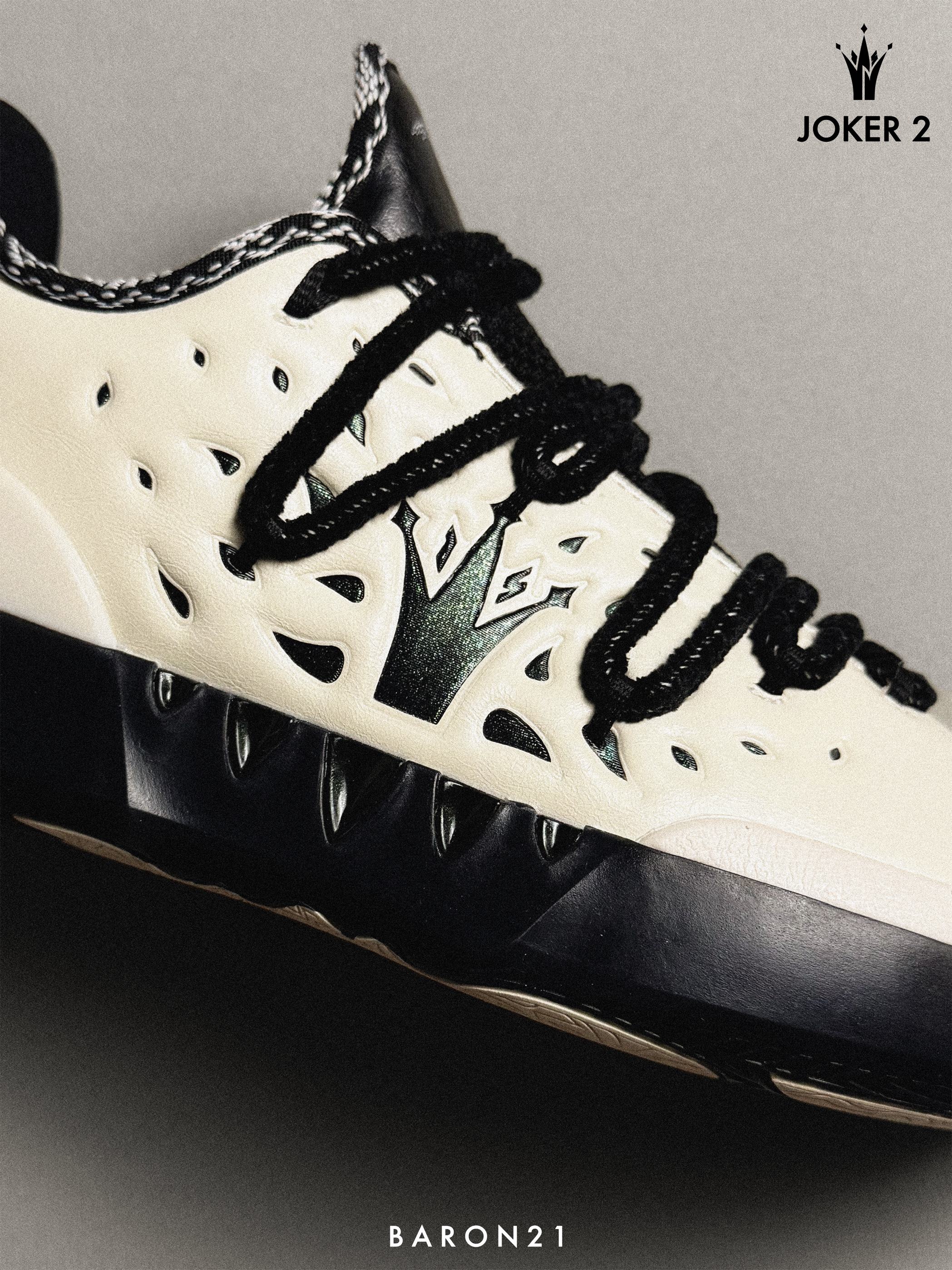 JOKER 2最初曝光的时候,我就注意到这个配色了。当时我一下子就被它吸引了,米白色和黑色的配色组合很特别也很耐看!加上JOKER 2的鞋型的鞋面设计,整体给我感觉有点复古的味道。这个配色应该有高帮和低帮,我这双就是低帮。相比较而言,我更喜欢低帮。