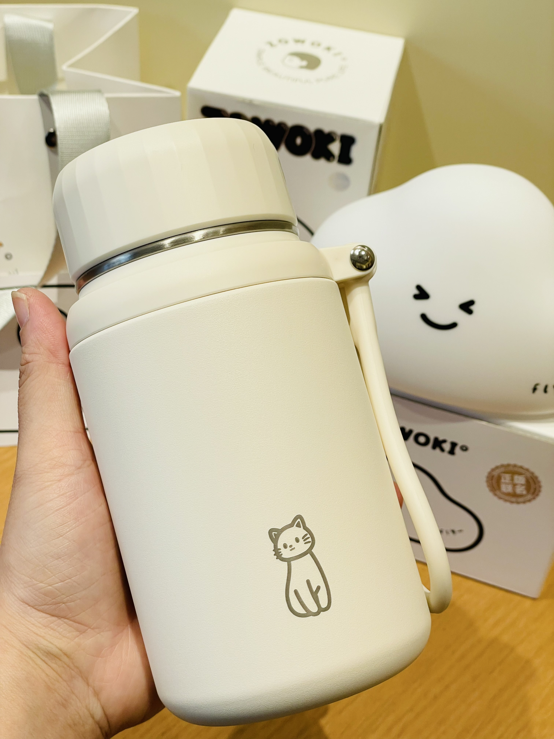 嘻嘻嘻造物集家的保温杯和拍拍灯颜色好奶fu 可可爱爱的 我拿着蛮有质感 316不锈钢材质 保温效果好 日常用着杯子喝水泡茶都可以 轻轻一拍就会亮 灯光hin柔和 放在卧室当摆件都好看 礼盒包装精致 送礼自用都可以