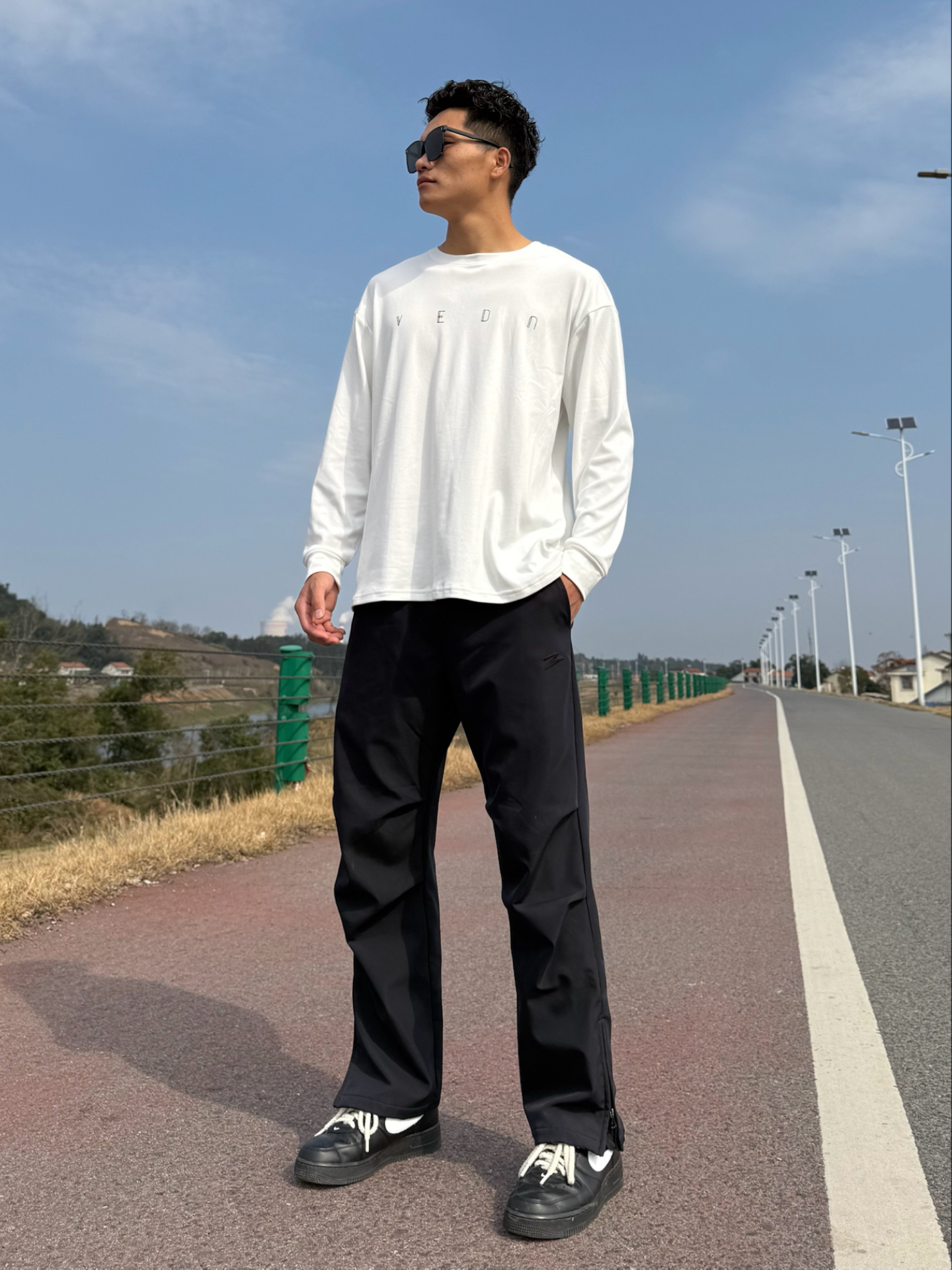 新年户外休闲风穿搭,上身来自 #维动 VEIDOORN 家这款初形系列白色长袖! 衣服毛绒绒的质感上身非常的舒服,贴身穿也不扎皮肤,而且内里做了加绒的设计,胸前字母设计增添了细节感不显得单调,宽松的版型对身材的包容性强,日常休闲穿百搭又舒服,我身高182体重67公斤选的XL码! #宝藏长袖T恤穿搭 #分享你的必入运动长袖 #维动VEIDOORN #男生打底衣穿搭分享 #宝藏长袖卫衣分享