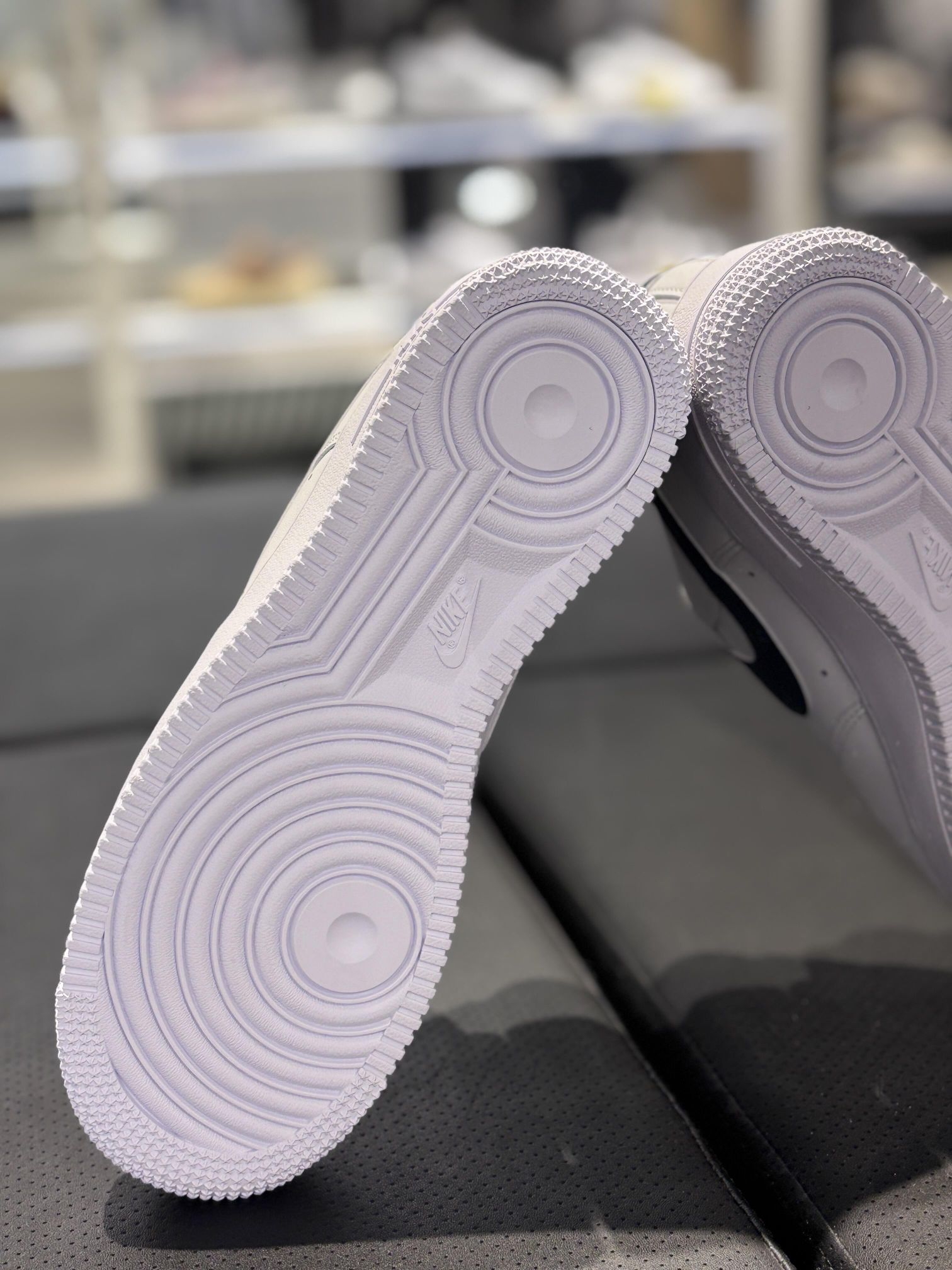 Nike Air Force 1 舒适百搭款,👟鞋面采用皮革纹路,非常有质感,白色配蓝色logo很清新 这款的皮质还整体看起来好挺高级~搭配牛仔裤工装裤都挺好