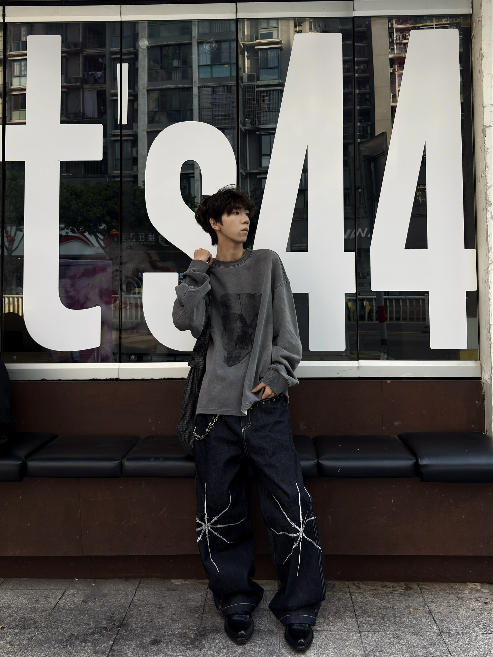 开春🌼真的是越来越热了~ 大家可以准备好卫衣长T了🔥 👔采用水洗做旧工艺 整体呈现出一种复古的深灰色调 摸起来柔软又有分量❗️❗️ 胸前的抽象印花是点睛之笔👀 做旧的黑色图案和灰调底色融合得恰到好处👁️🗨️ 🚶 博主身高178cm 体重55kg 👔上身M码 可参考✅
