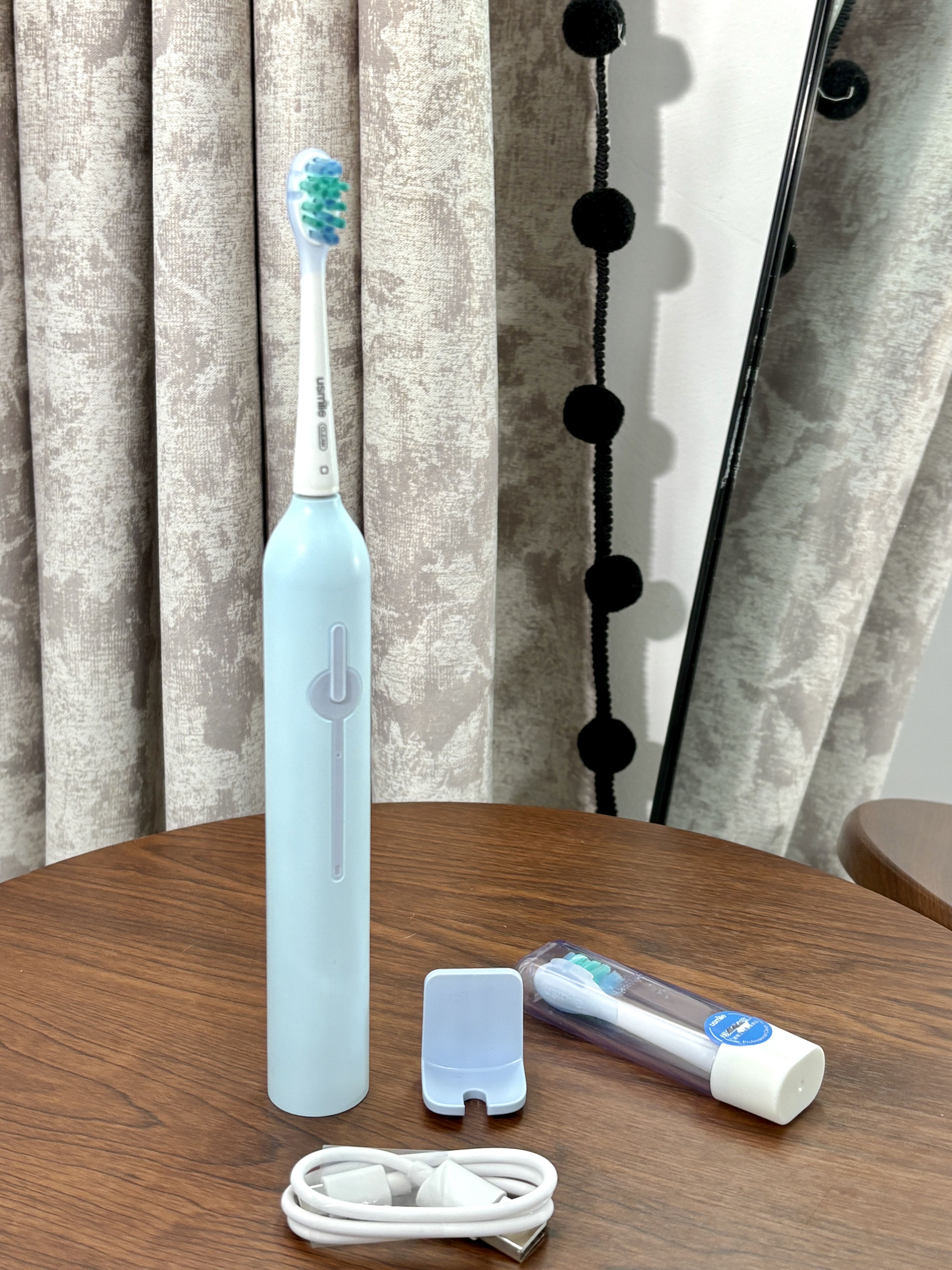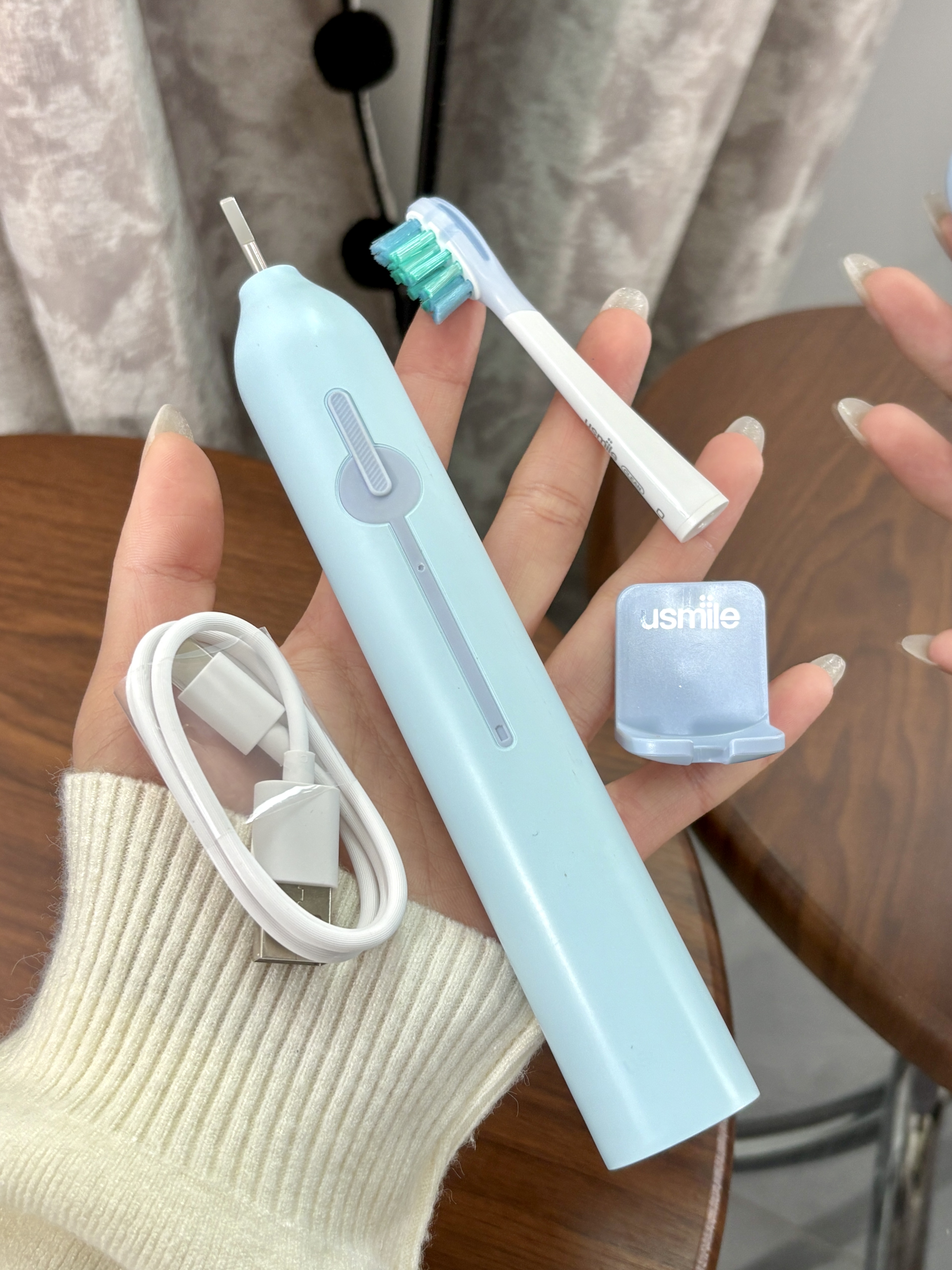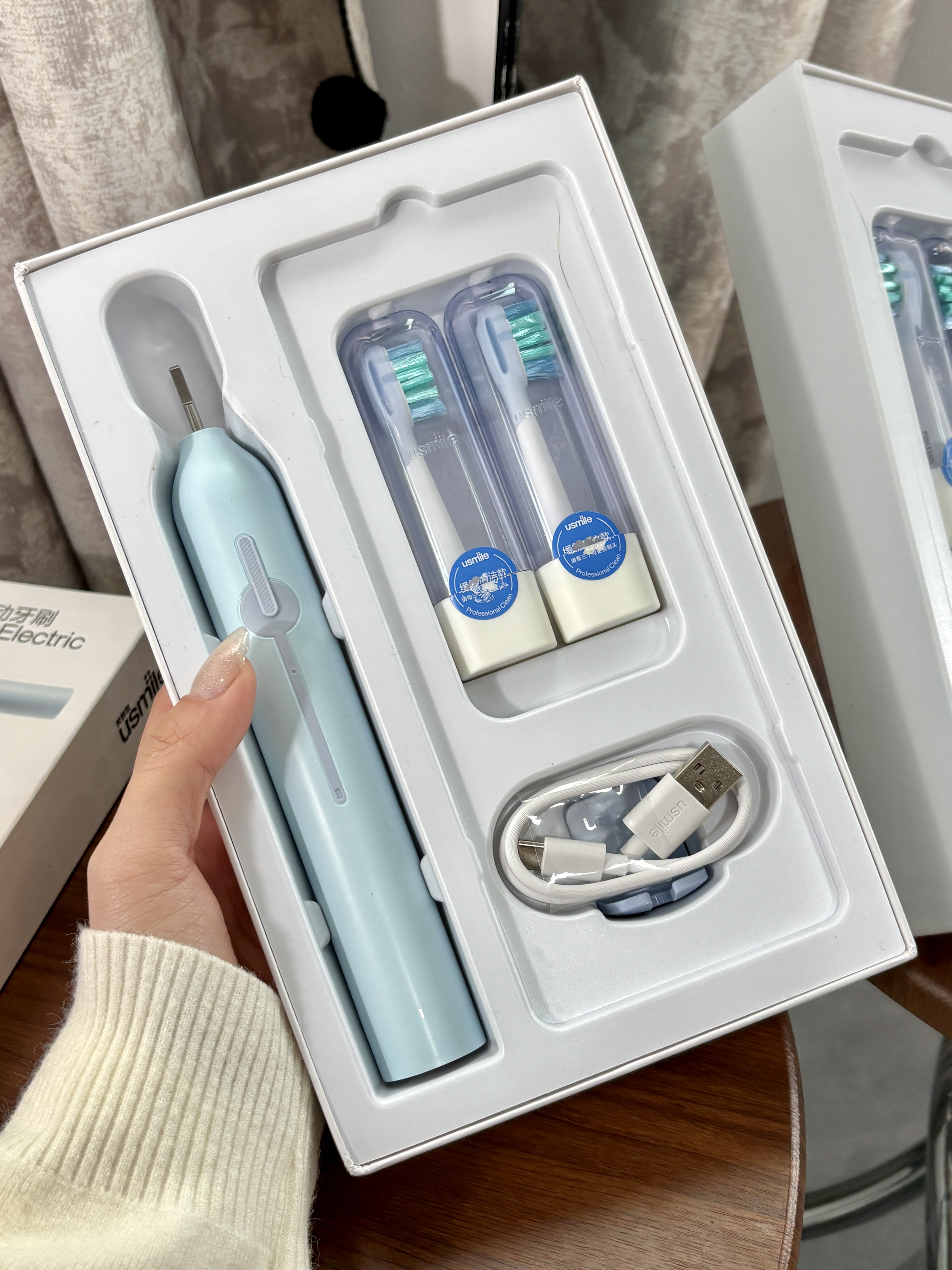 介个电动牙刷真嘟貌美又实用呐 还配了数据线和两个替换牙刷头 刷头刷牙柔软舒适 还有三个档位可调节大小✨ 日常使用清洁力也不错哒 每天早晚用它各刷牙一次 把牙齿护的明明白白 颜值也在线自用或者送crush也是不错的🎁 #usmile电动牙刷专供礼盒 #高颜值电动牙刷 #超好用的电动牙刷 #usmile电动牙刷 #520送礼新灵感
