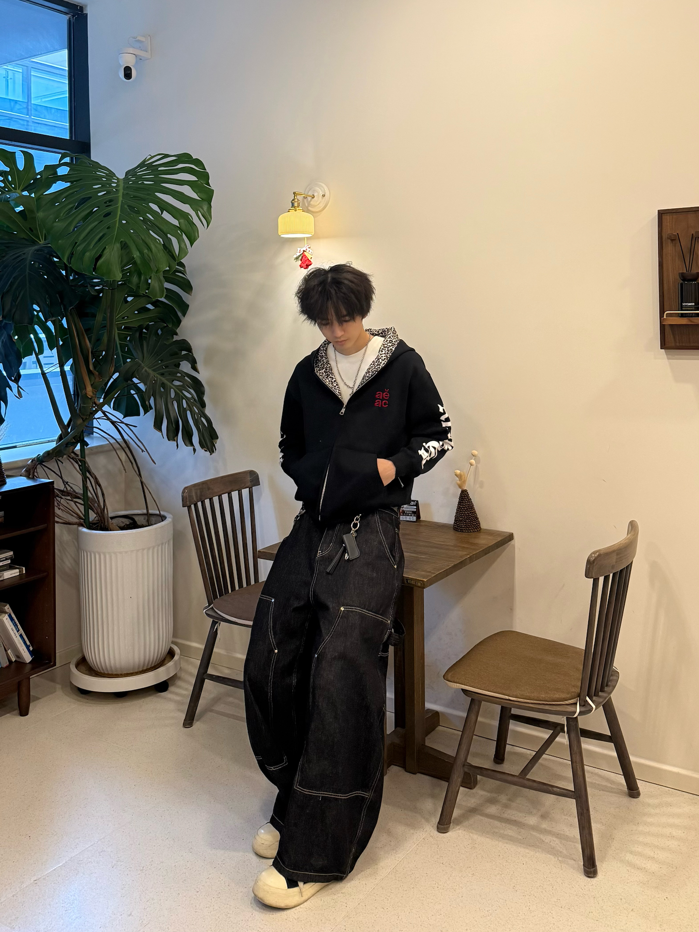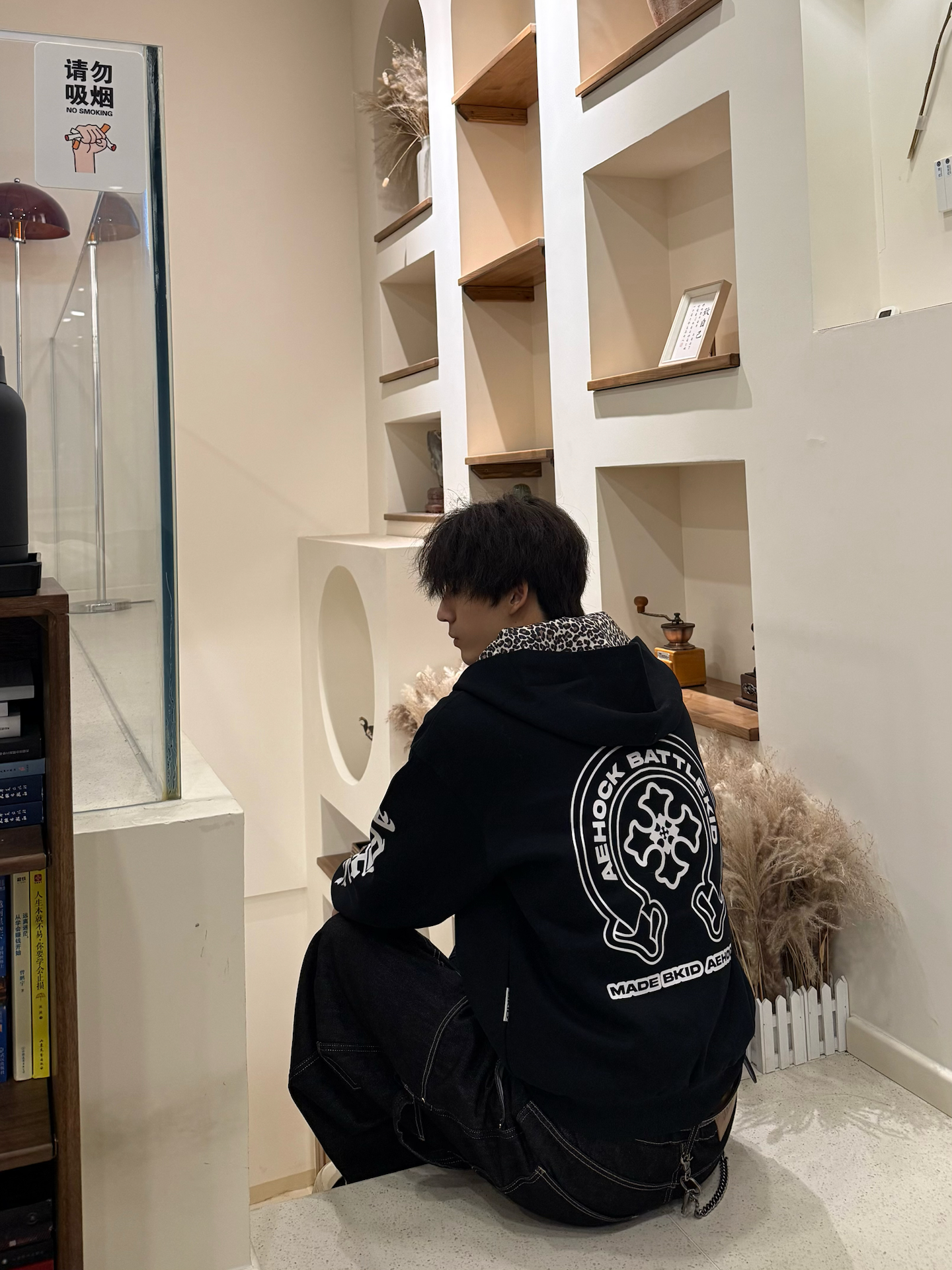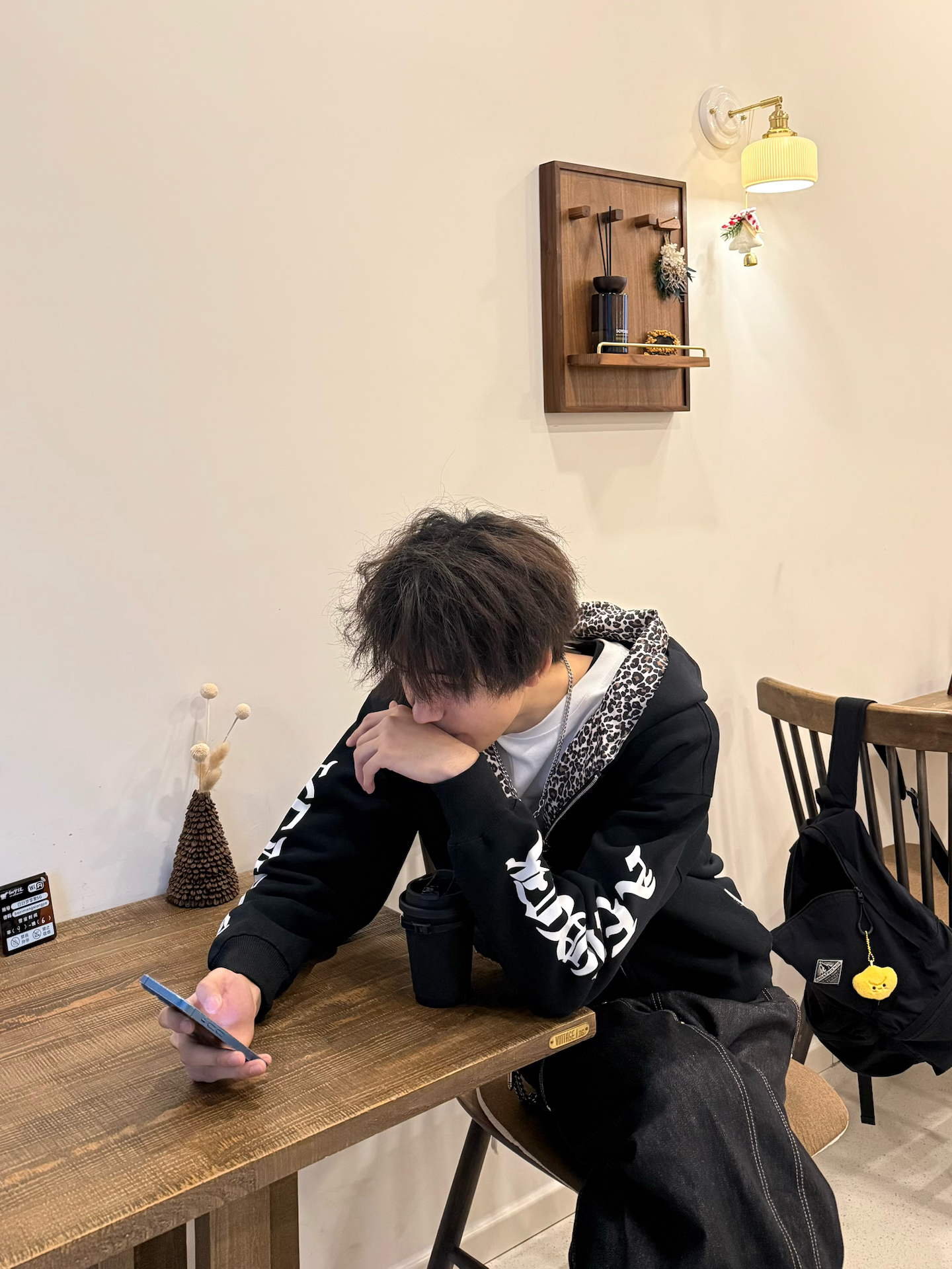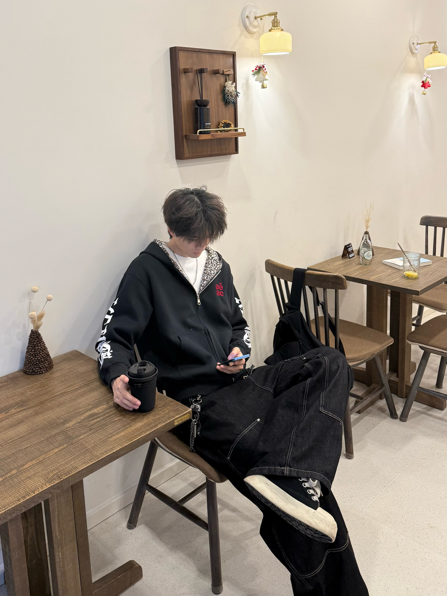 终于步入早春了🍃 真的是期盼了好久 现在终于可以 脱下厚重的羽绒服了🤭 那今天搭一套All black的春装吧 上身一件黑色豹纹卫衣 凸显层次 找了个白T作为打底✅ 裤子拉了条松弛的baggy裤 还是喜欢这种松垮的感觉 腰间别一个裤链 整个人都是free的状态😌 坐下来 简单的打理一下 顺便规划一下新一年的目标🎯 #卫衣终于开窍了 #预热一下早春穿搭 #这么搭配卫衣包帅的 #WAYHWEI #男...