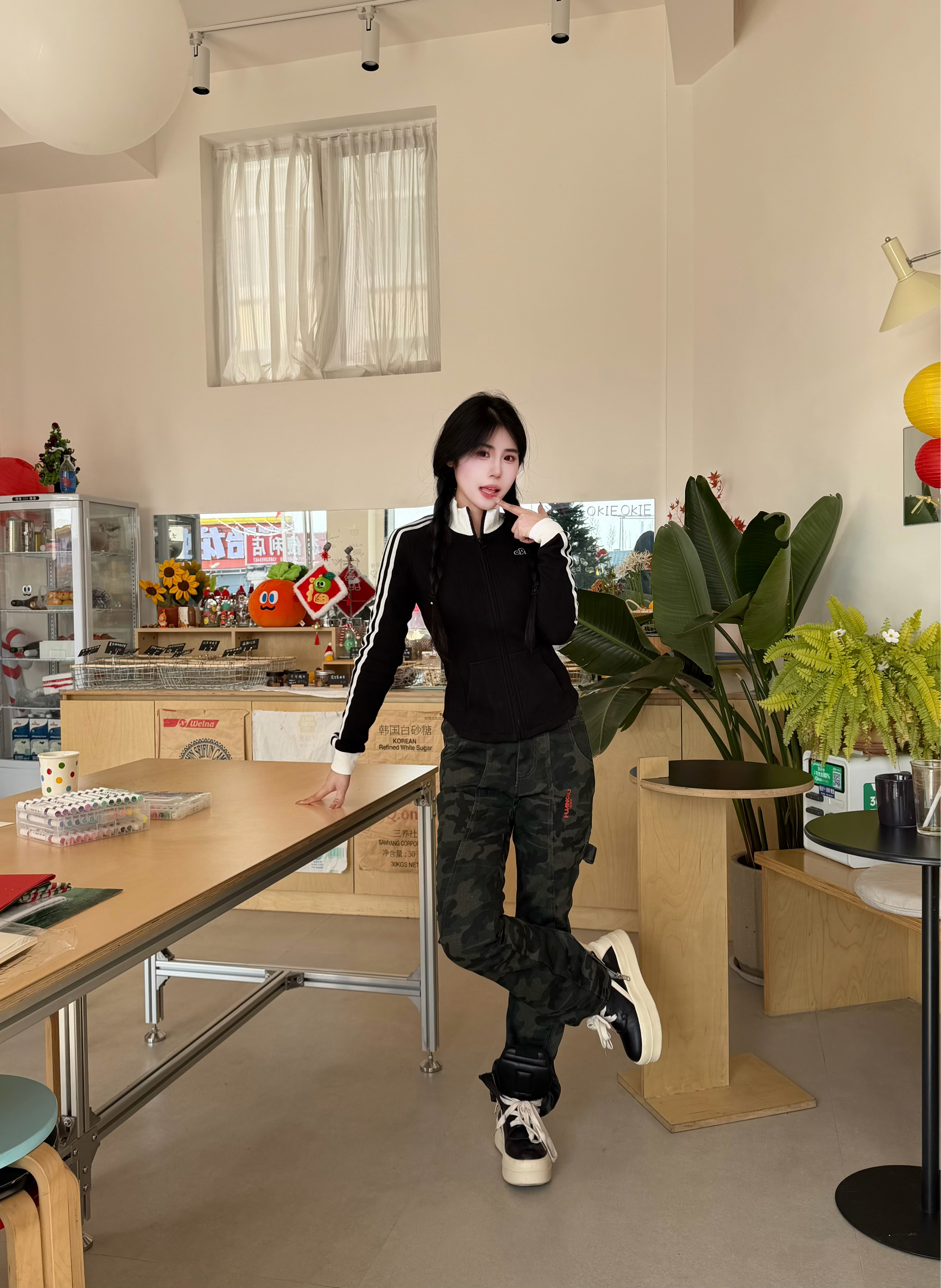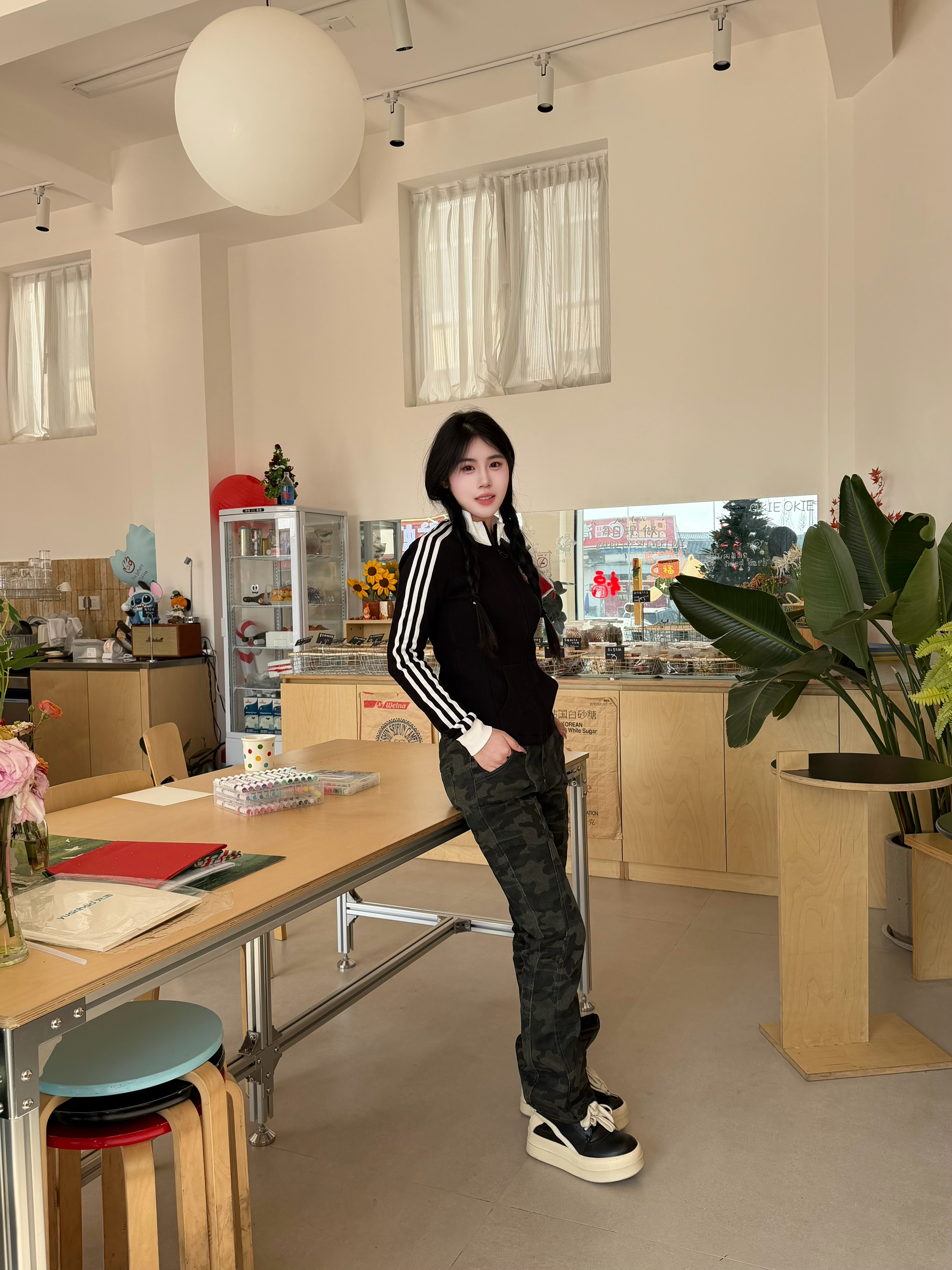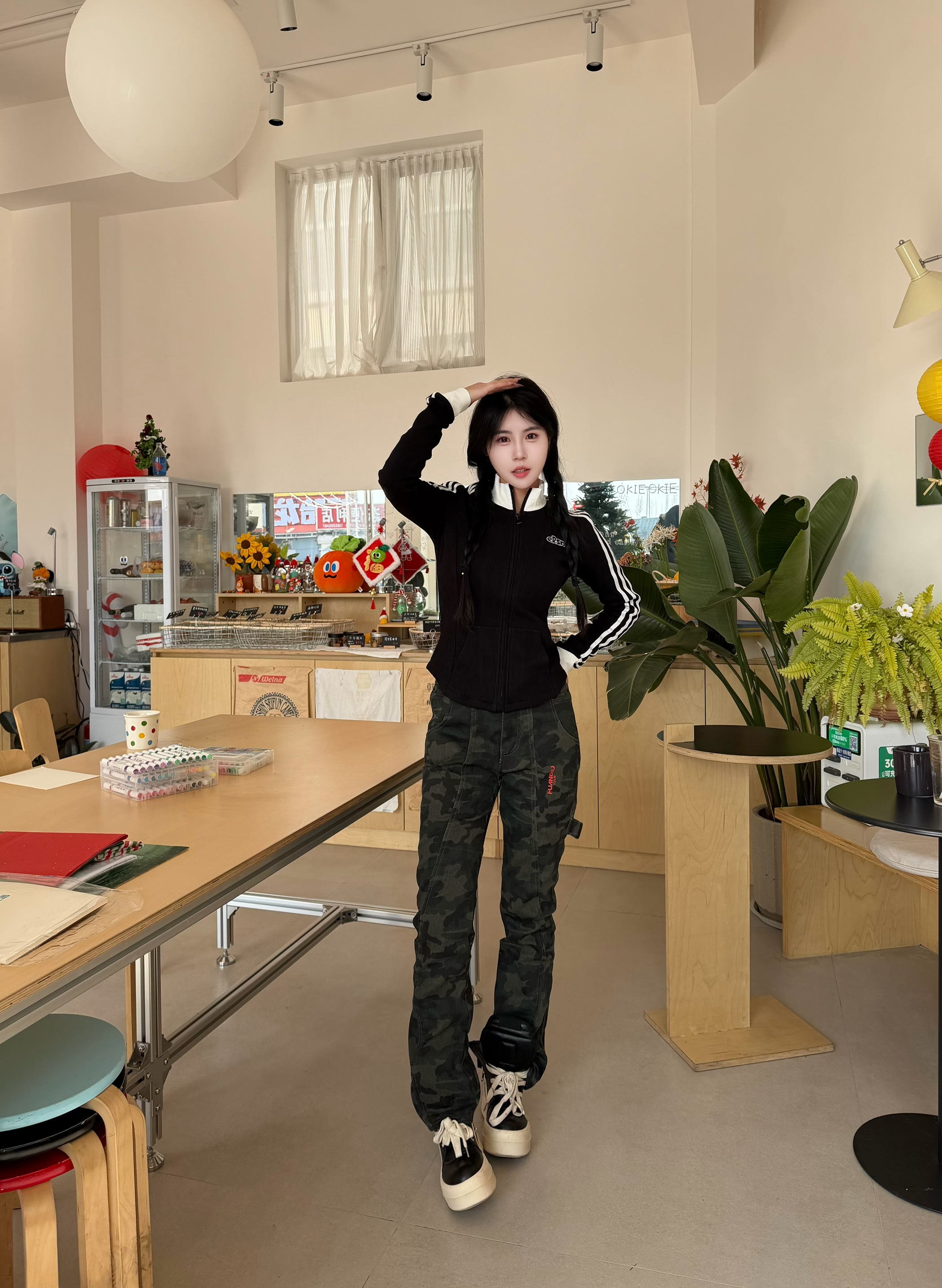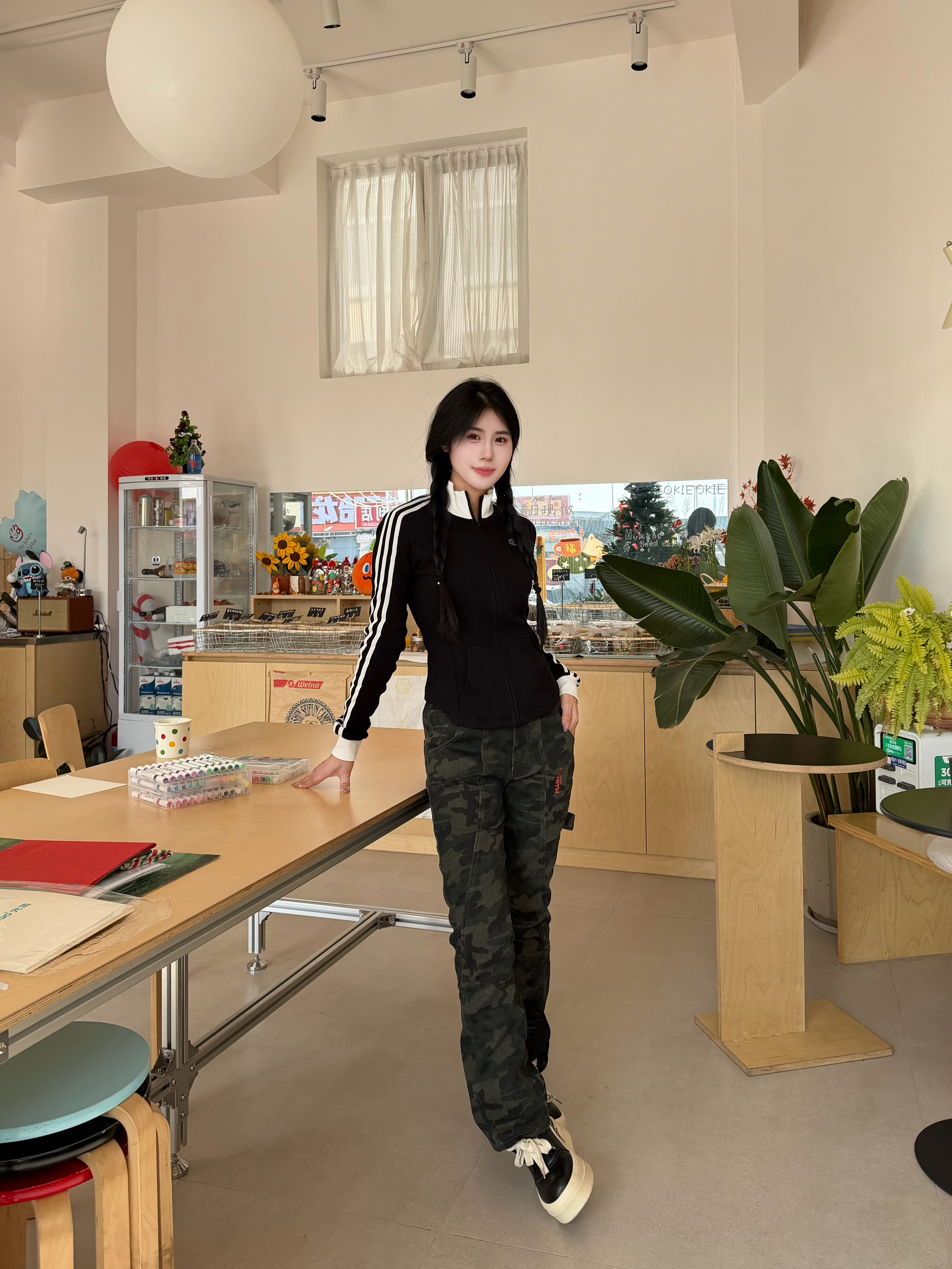 今天这条裤子我好喜欢🥰 迷彩裤的版型就很ok 微喇裤型把腿修饰得又直又长 软乎乎的面料带点厚度秋冬穿刚刚好 侧边的口袋设计细节感拉满 搭配一件韩系T恤又酷又温柔。 迷彩花纹自带复古腔调 随便搭件上衣就很出片 春日ootd你学会了吗