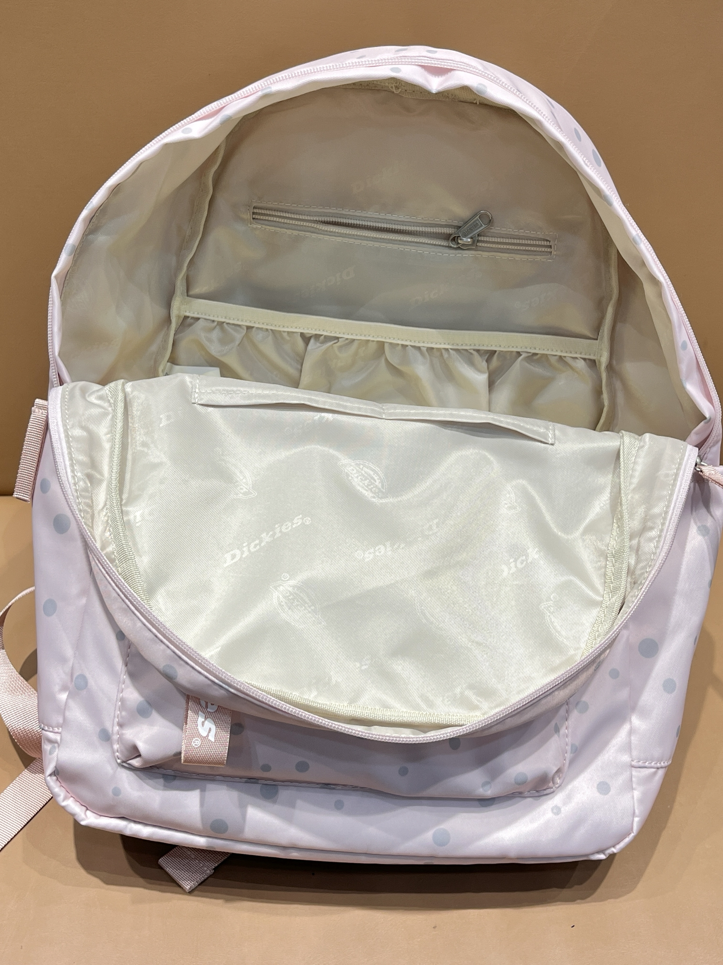 我最近入了个粉嘟嘟带波点的双肩包,拿到手就觉得波点印花好清新,粉色也很温柔~肩带是软乎乎的,背久了也不勒。容量我很满意,课本、iPad 塞进去完全没问题👏。平时通勤或者出去旅游背都合适,走在路上感觉自己又甜又温柔~不过它没有夹层,小东西得自己分类放好,这点我觉得可以改进下~但整体来说,我还挺喜欢这个包滴🥰。