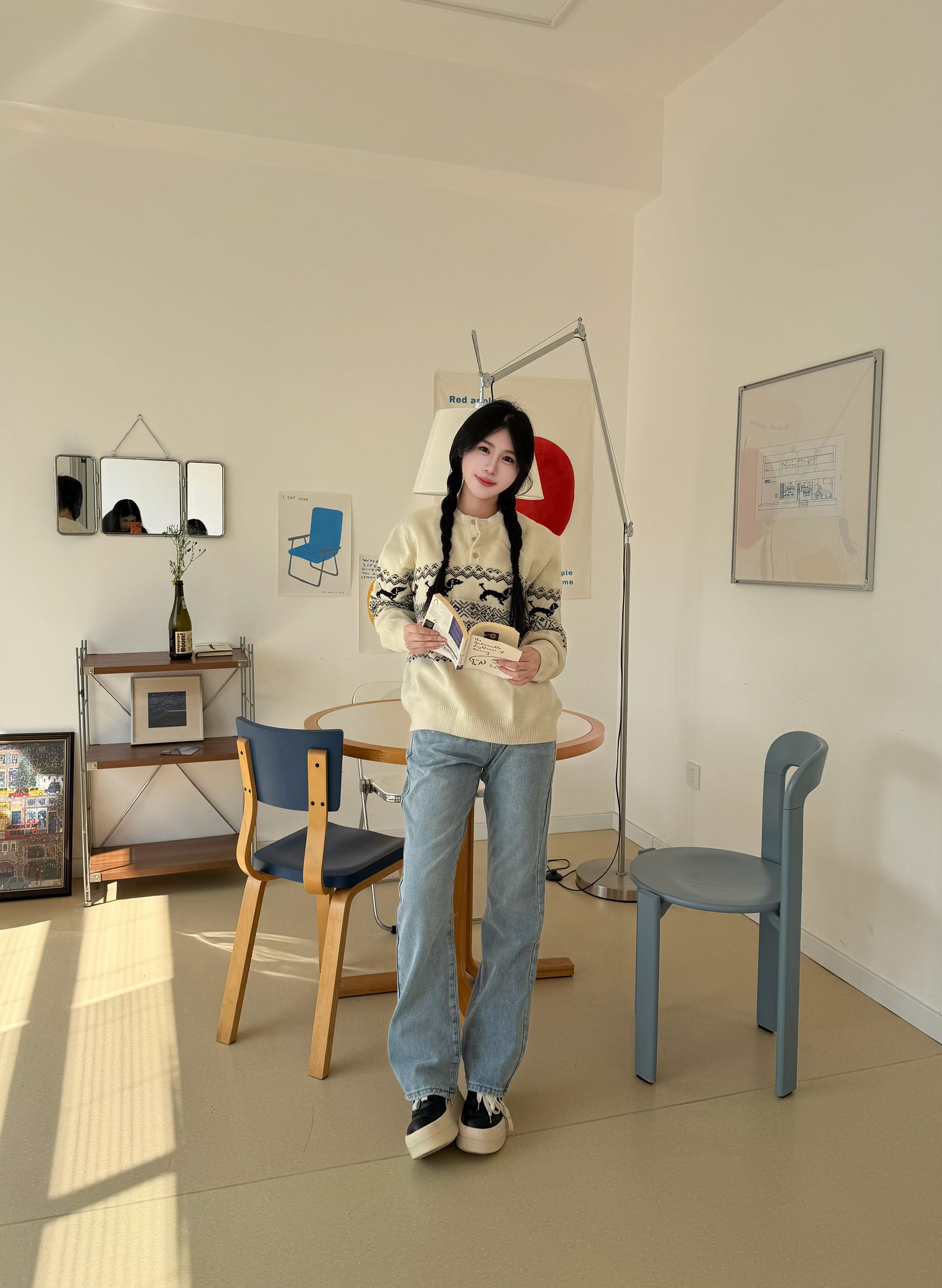 今天穿的是环球 HUANQIU 复古高街微喇牛仔裤 直筒微喇设计很适合春天穿 而且面料摸起来很舒服✨ 做旧废土风很有街头复古感 随意搭配毛衣开衫都好看 很适合日常休闲通勤搭配