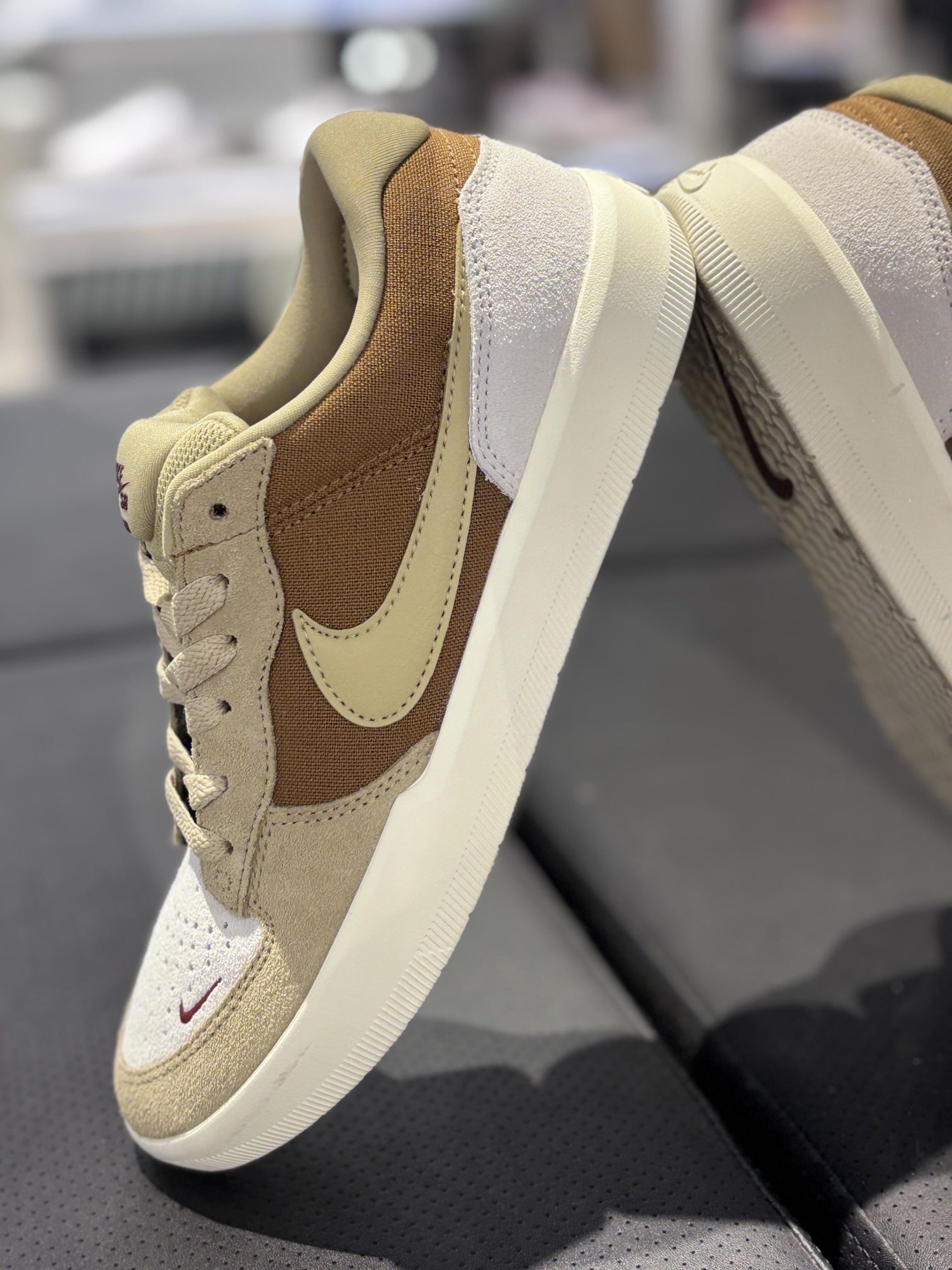 今日分享Nike SB Force 58板鞋 暖色调的美拉德配色 够特别又不会很夸张 翻毛皮鞋面质感高级 皮质柔软不磨脚 适配感高 日常逛街通勤 约会 滑板运动很合适