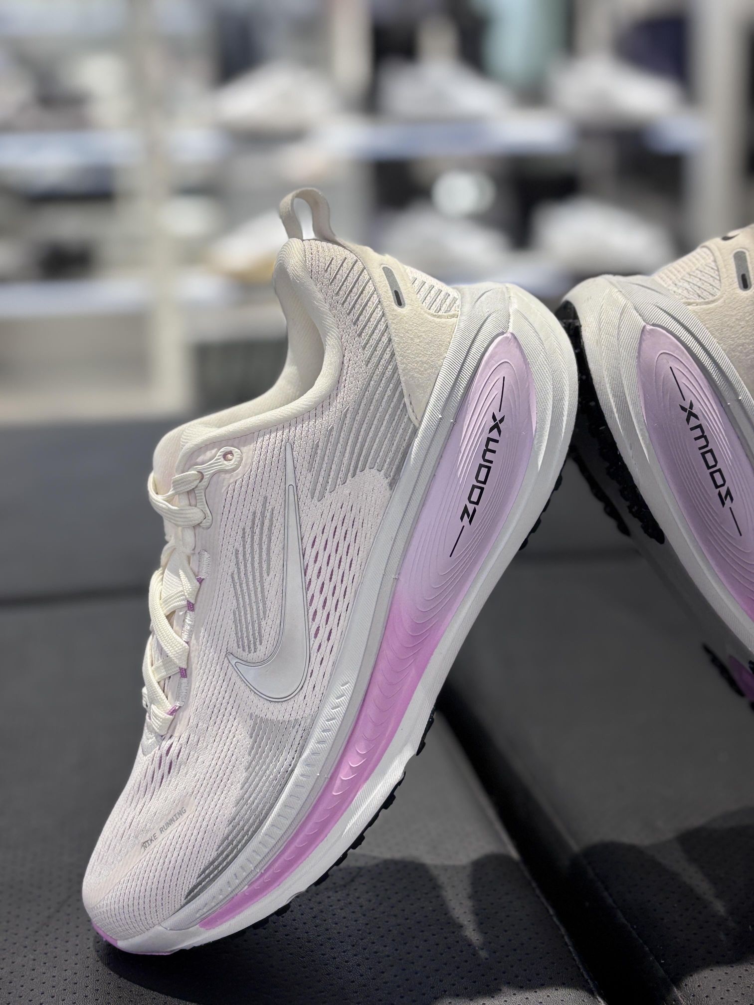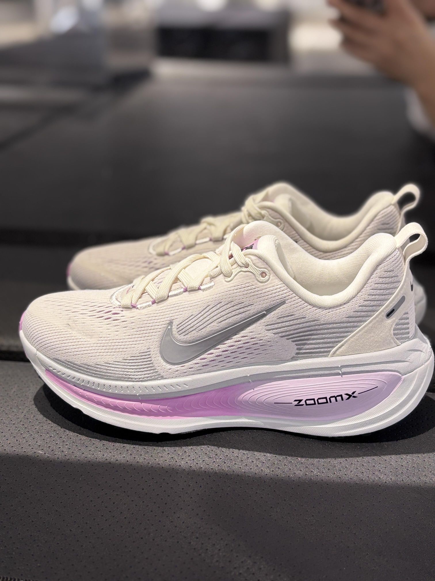 今日分享vomero18,它的中底配置是ZoomX和 ReactX的超厚底双层缓震组合,是Vomero 系列历史上中底最厚的一款。 跑步时后跟落地,reactX负责提供稳定保护,減少脚踝晃动,缓解落地冲击以保护膝盖;过渡到前掌时,zoomX负责提速,让脚与鞋之间的互动更轻快。 鞋子鞋楦很宽,脚宽的小伙伴不要担心挤脚。 鞋面很柔软。非常透气 点关注,不迷路