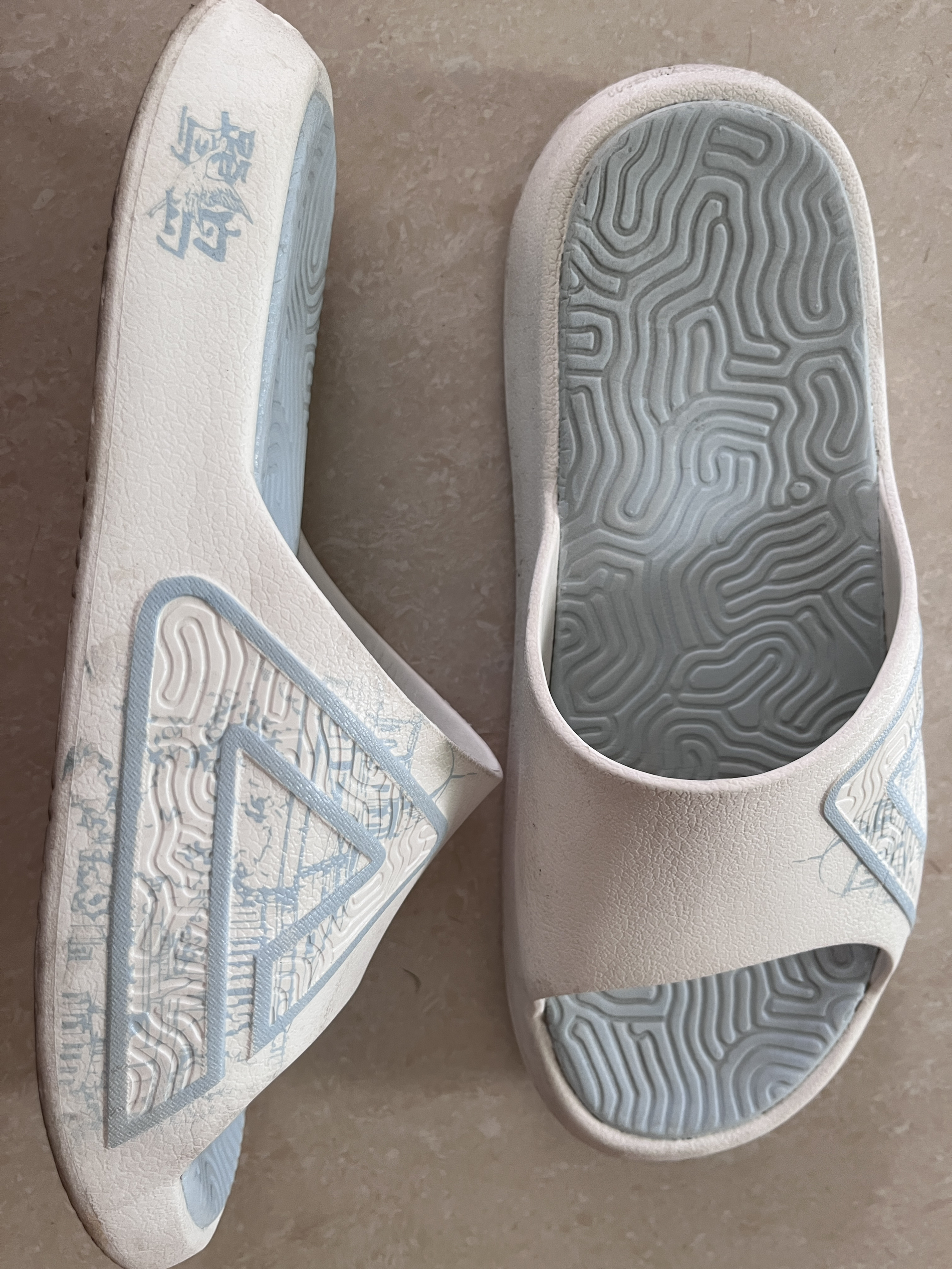 这双匹克态极鹭岛拖鞋,白蓝海浪纹清爽又吸睛。态极中底软弹到离谱,训练完换上它,酸胀脚掌瞬间被包裹,每一步都像踩进云朵里,缓震感拉满。防滑纹路在澡堂、球场边也不打滑,夏练三伏,它就是体育生的“回血神器”,舒服到不想脱!