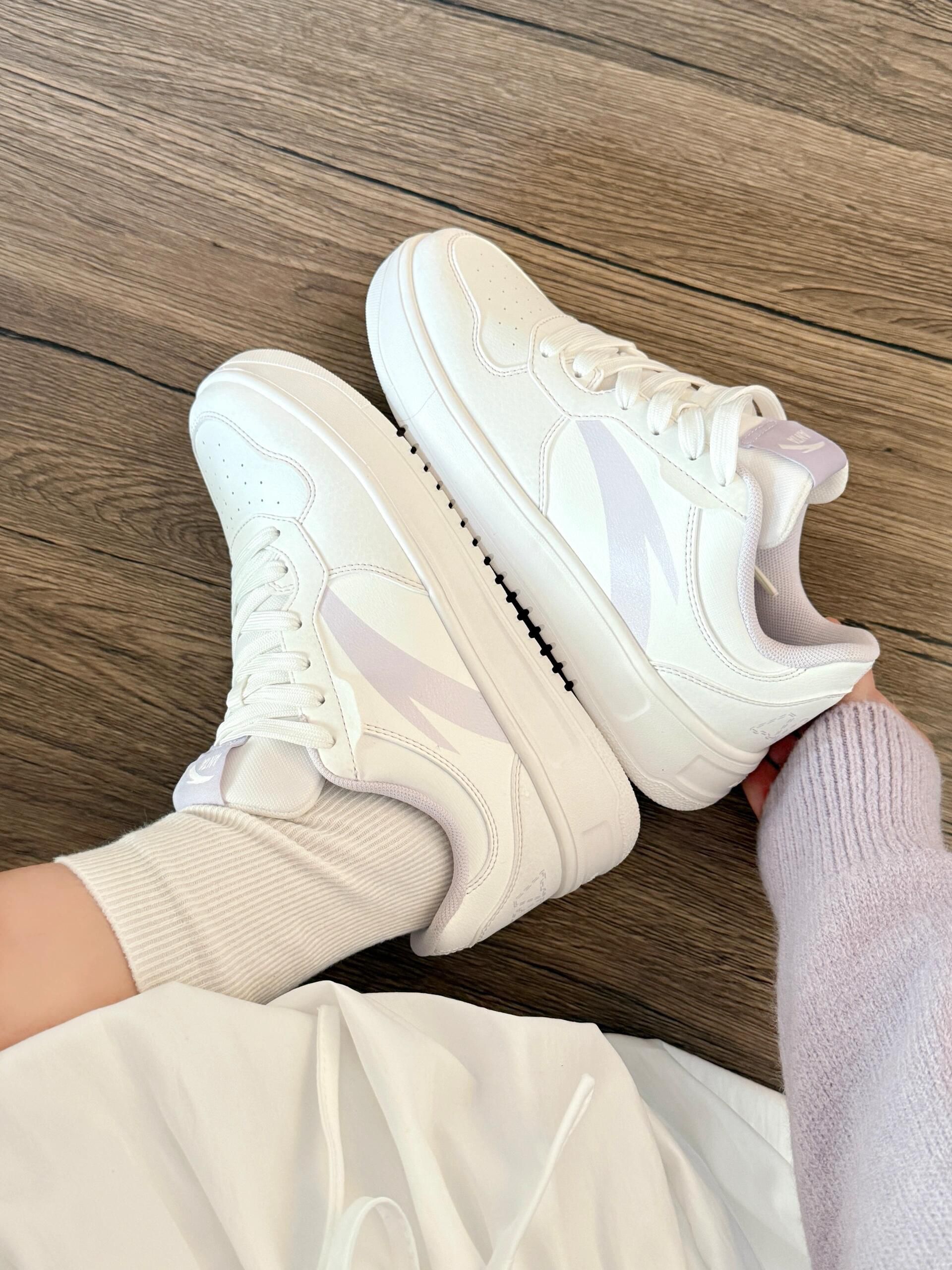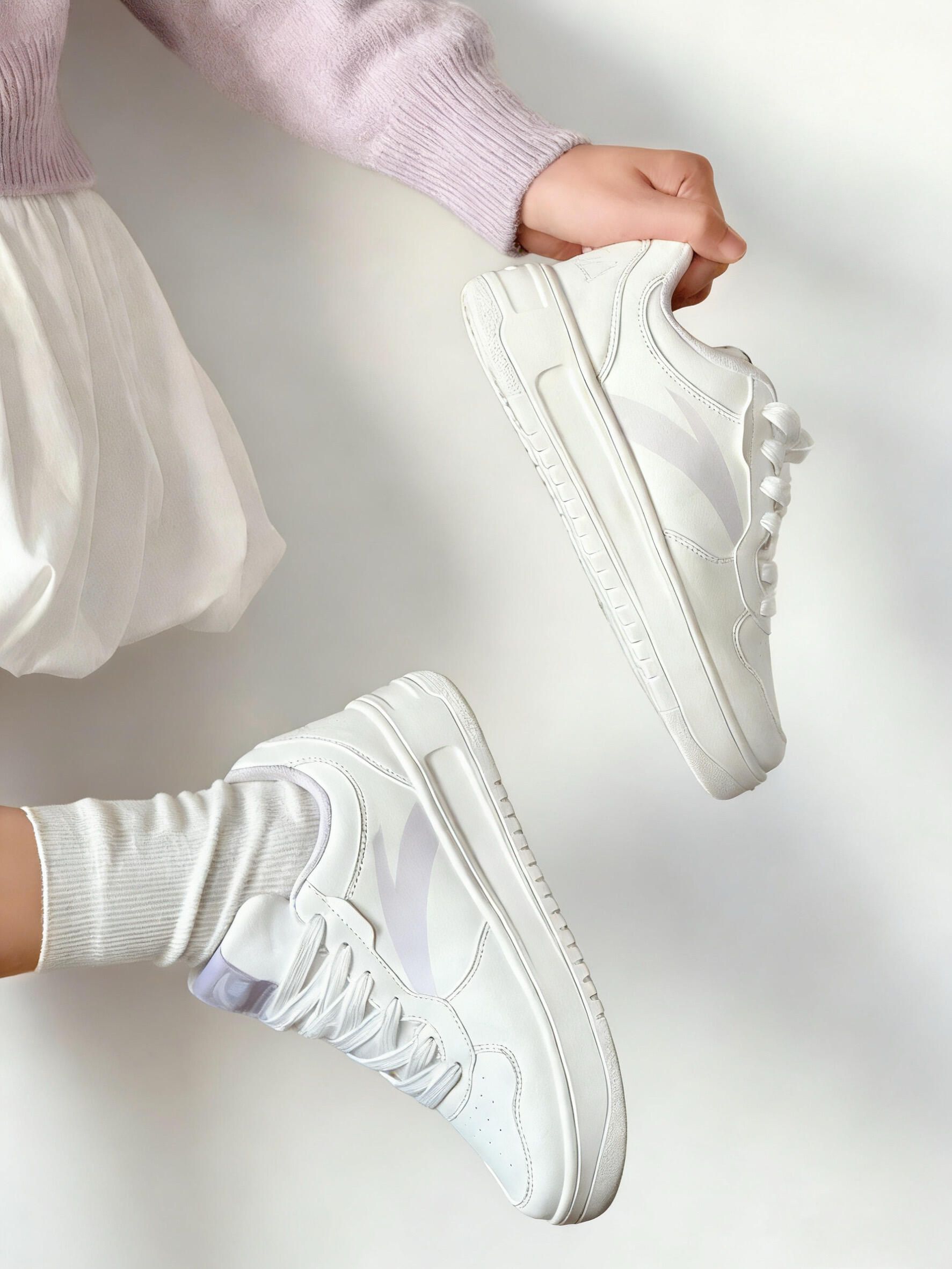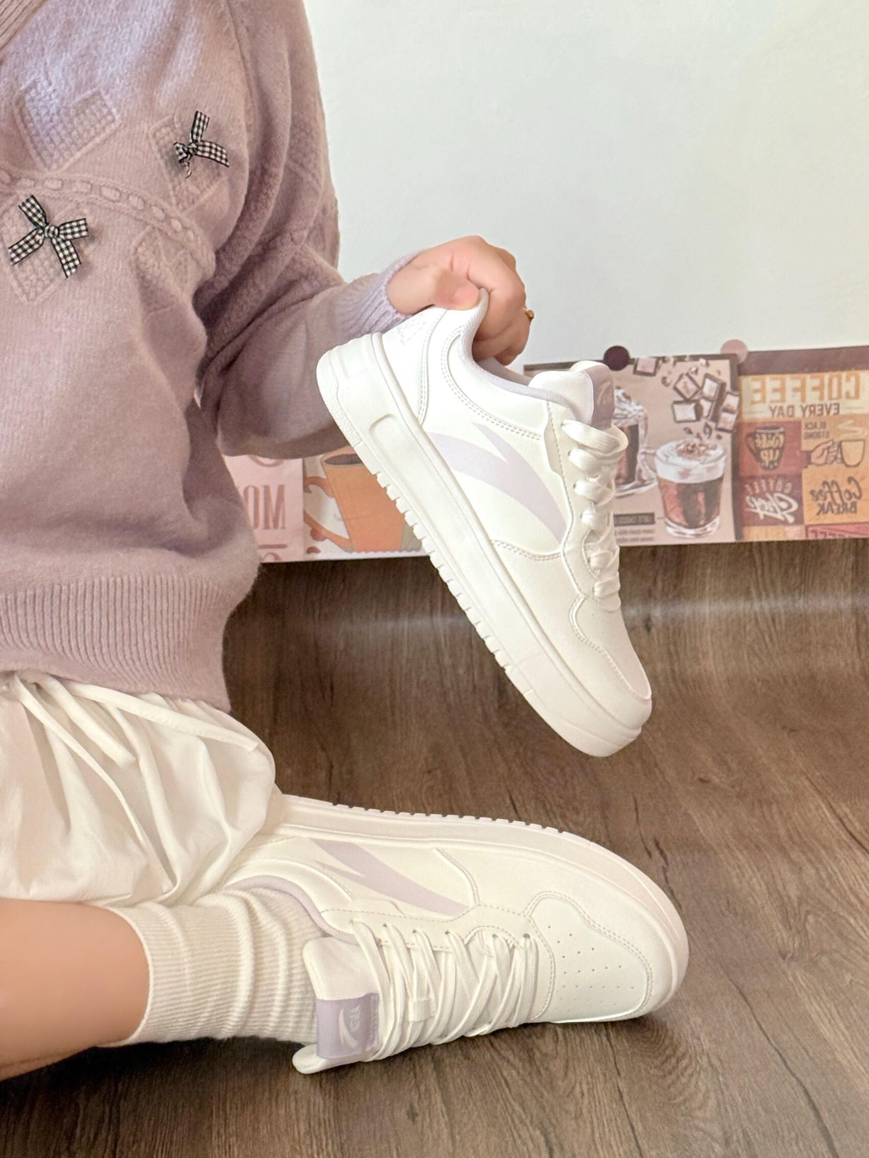 被这双安踏小白鞋狠狠拿捏住少女心!💘 奶白色鞋身+淡淡的香芋紫勾边,温柔到骨子里的配色 完全不挑皮,黄皮姐妹穿也巨显白~ 上脚第一感受就是软!像踩在棉花糖上一样☁️ 厚底悄悄增高3cm,秒变三七分比例 而且鞋型很秀气,不会显脚大,窄脚星人狂喜! 搭浅色系长裙、牛仔裤都好看,早春氛围感直接拉满 随手拍都出片,不愧是百搭界的天花板✨
