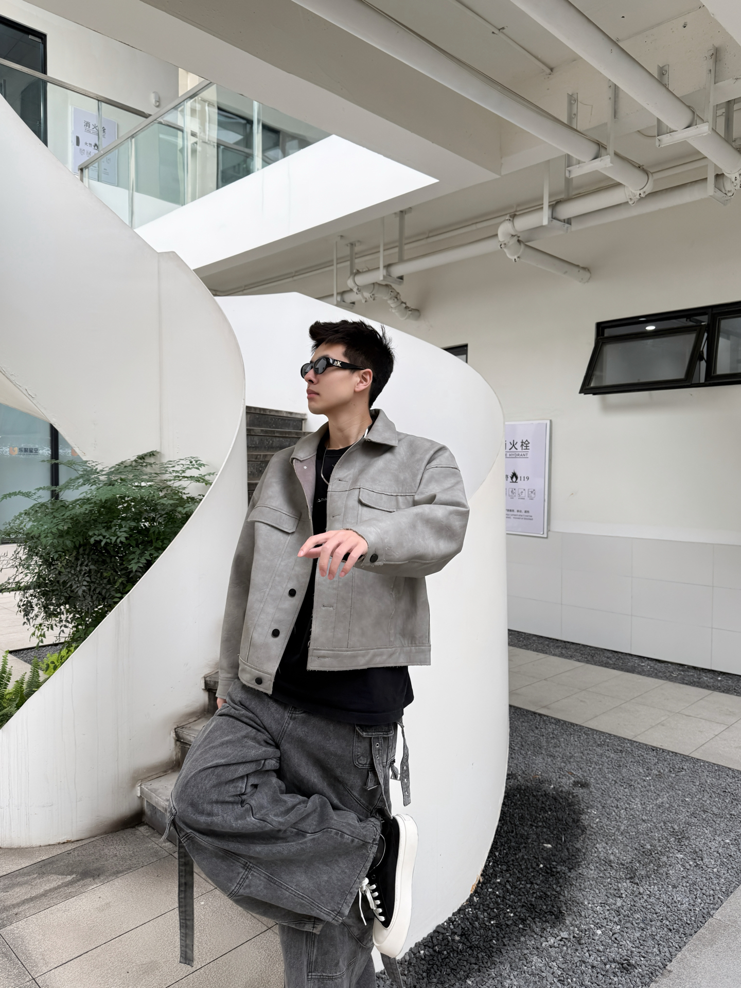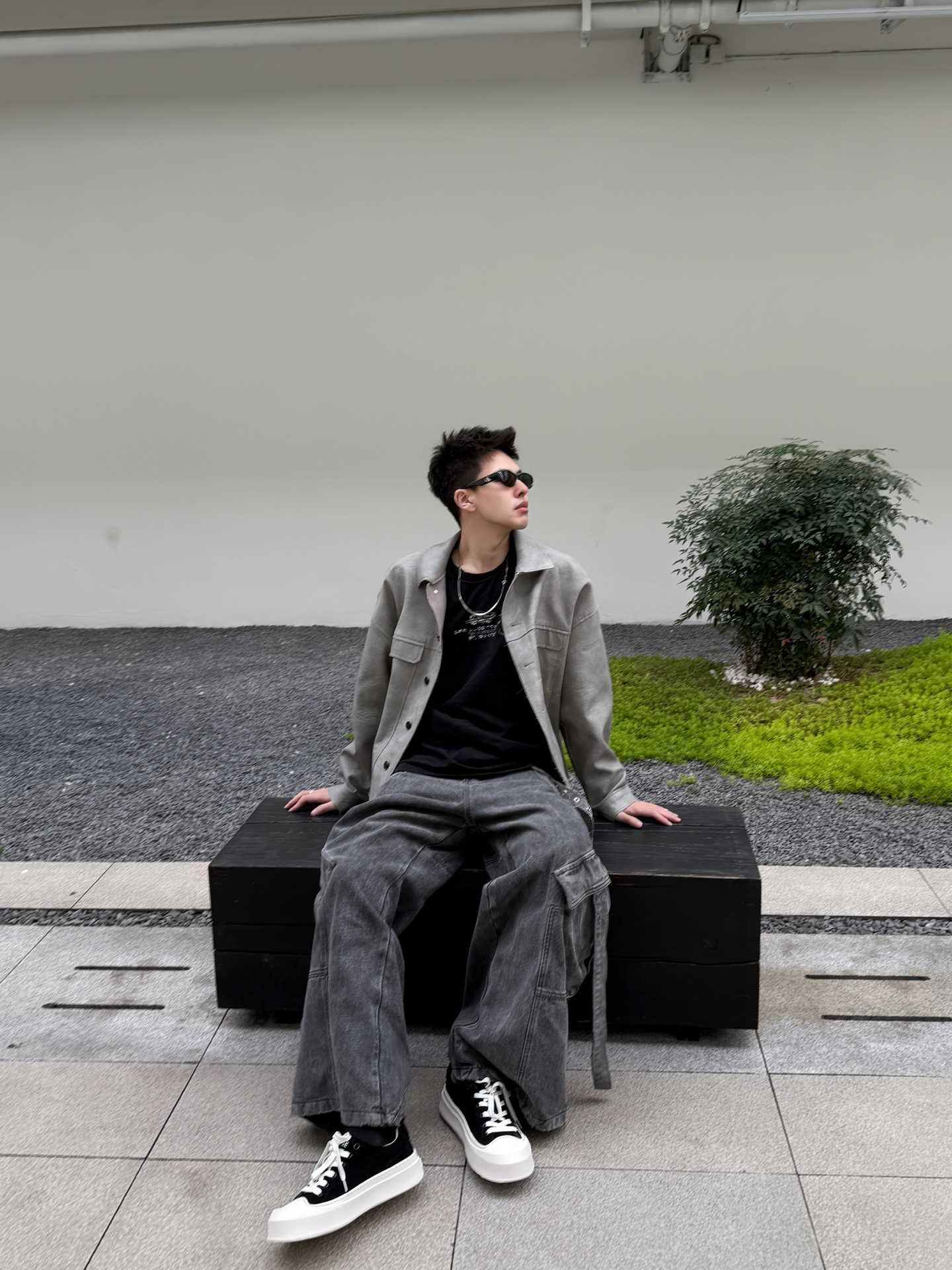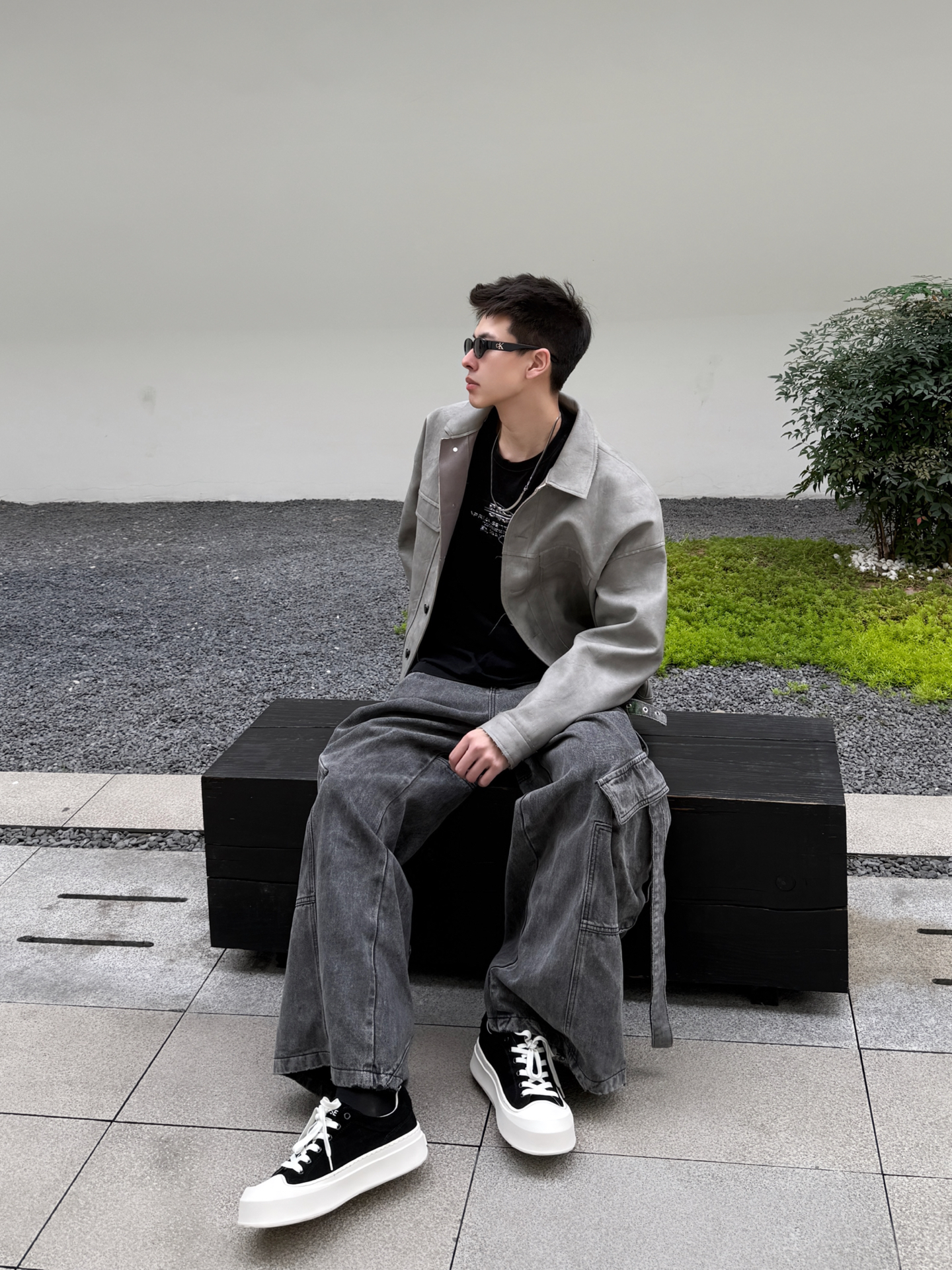 开春想穿得松弛又高级?这套灰调工装风穿搭太酷啦 浅灰皮夹克自带复古质感,宽松落肩版型对各种身材都超友好,藏肉又随性,重磅面料软而挺括,贴身穿不闷汗,开春应对微凉天气也很安心。内搭黑色字母T恤打破单调,层次感瞬间拉满。 搭配做旧水洗阔腿牛仔裤,垂坠感刚好盖住胯部,利落的线条感弱化腿部线条,再踩一双迪芙斯黑白厚底帆布鞋,黑白撞色设计自带复古滤镜,厚底增高还显腿长,整体酷拽松弛感直接拉满。 开春单穿...