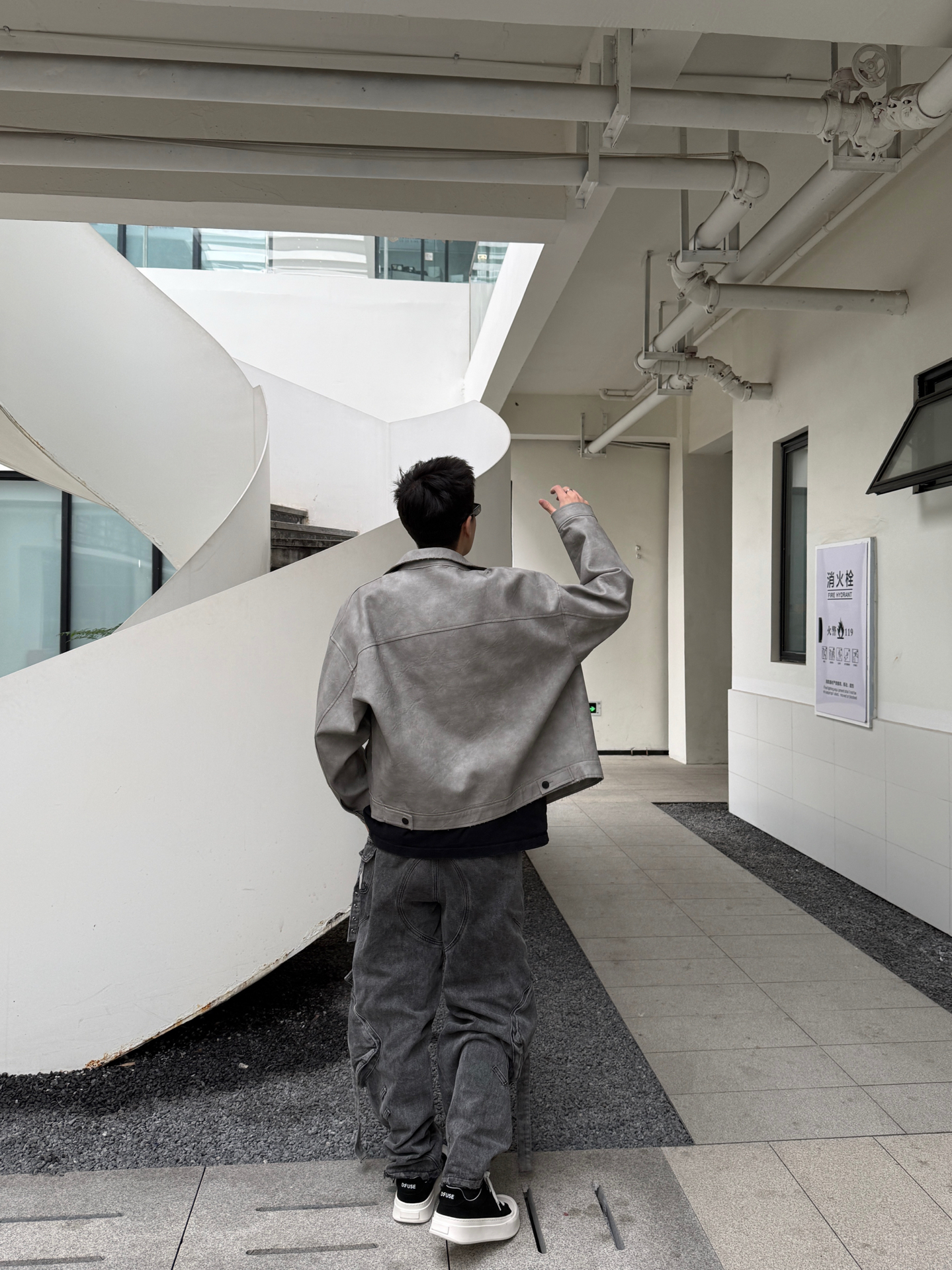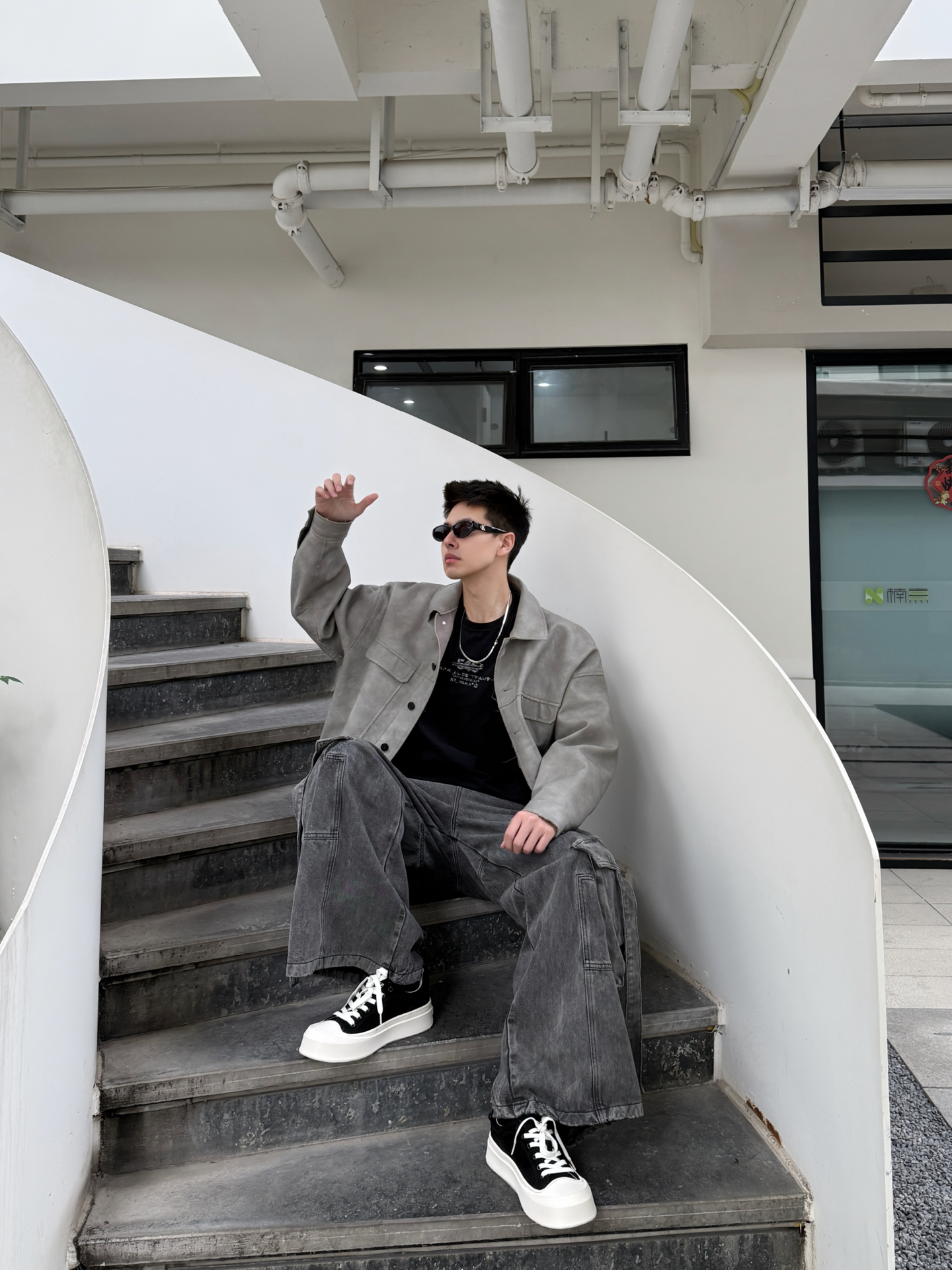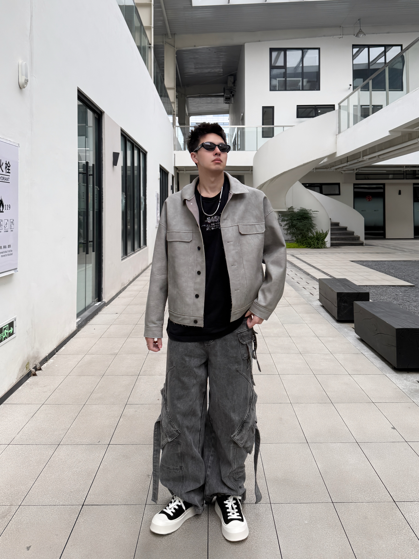 开春想穿得松弛又高级?这套灰调工装风穿搭太酷啦 浅灰皮夹克自带复古质感,宽松落肩版型对各种身材都超友好,藏肉又随性,重磅面料软而挺括,贴身穿不闷汗,开春应对微凉天气也很安心。内搭黑色字母T恤打破单调,层次感瞬间拉满。 搭配做旧水洗阔腿牛仔裤,垂坠感刚好盖住胯部,利落的线条感弱化腿部线条,再踩一双迪芙斯黑白厚底帆布鞋,黑白撞色设计自带复古滤镜,厚底增高还显腿长,整体酷拽松弛感直接拉满。 开春单穿...