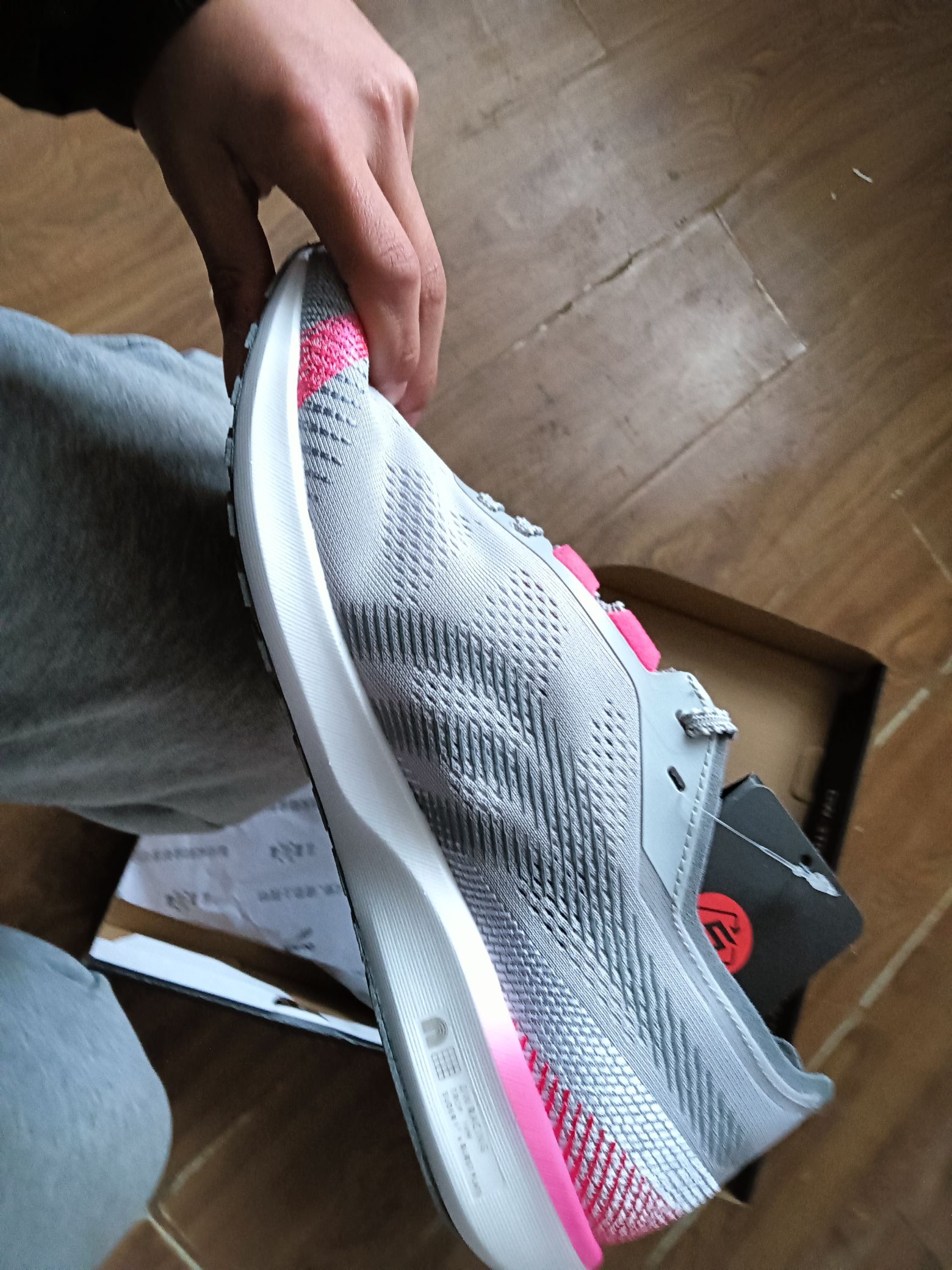 又帅又轻又软,鞋垫还多了胶水粘牢,品控也是特别厉害,颜值真的没谁了,包裹感还行,鞋码建议选小一点,后跟处做了防滑,鞋面很透气