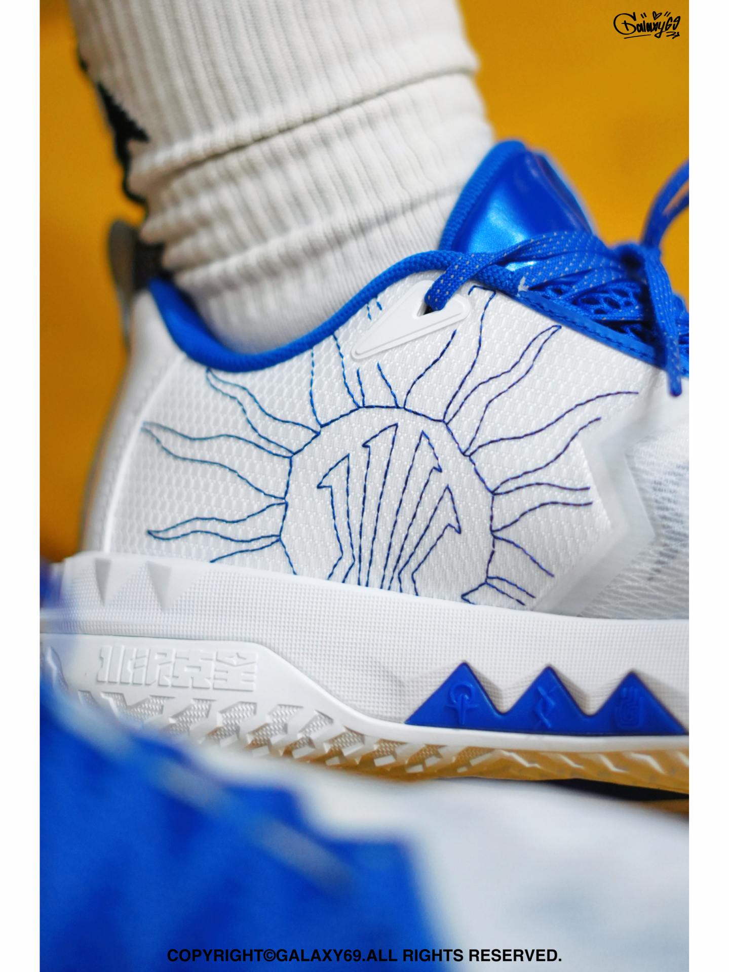终于等到欧文这支外场系列出新款了!作为学生党,一双耐造又好穿的实战鞋真的太重要了。 刚拿到这双达拉斯配色,白蓝搭配干净清爽,上脚特别精神。室友第一眼说有点像童鞋,我还愣了一下,结果穿着去球场打了会球,越看越顺眼。侧边的欧文之盾斜着放,设计感一下就出来了,完全不呆板。 细节是真的用心——鞋舌上的图腾、后跟的织带、内侧那个像太阳一样的欧文Logo,都挺有味道。作为平时下课就往球场跑的人,我对鞋的要...