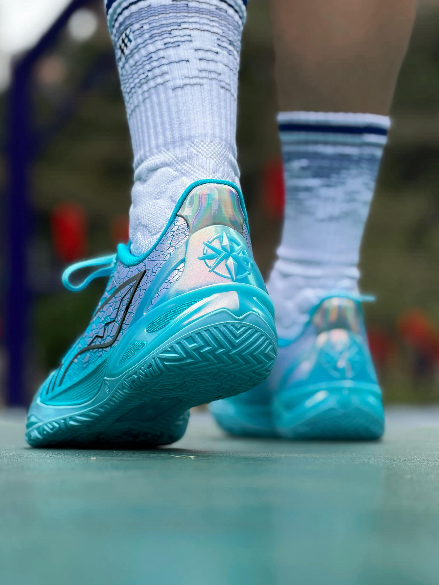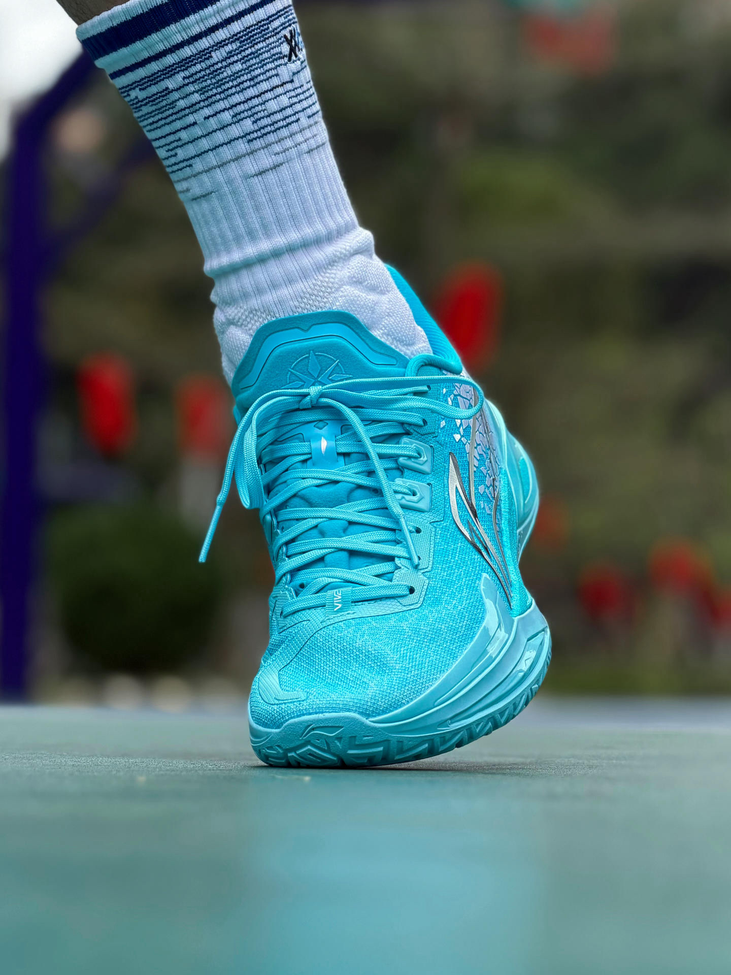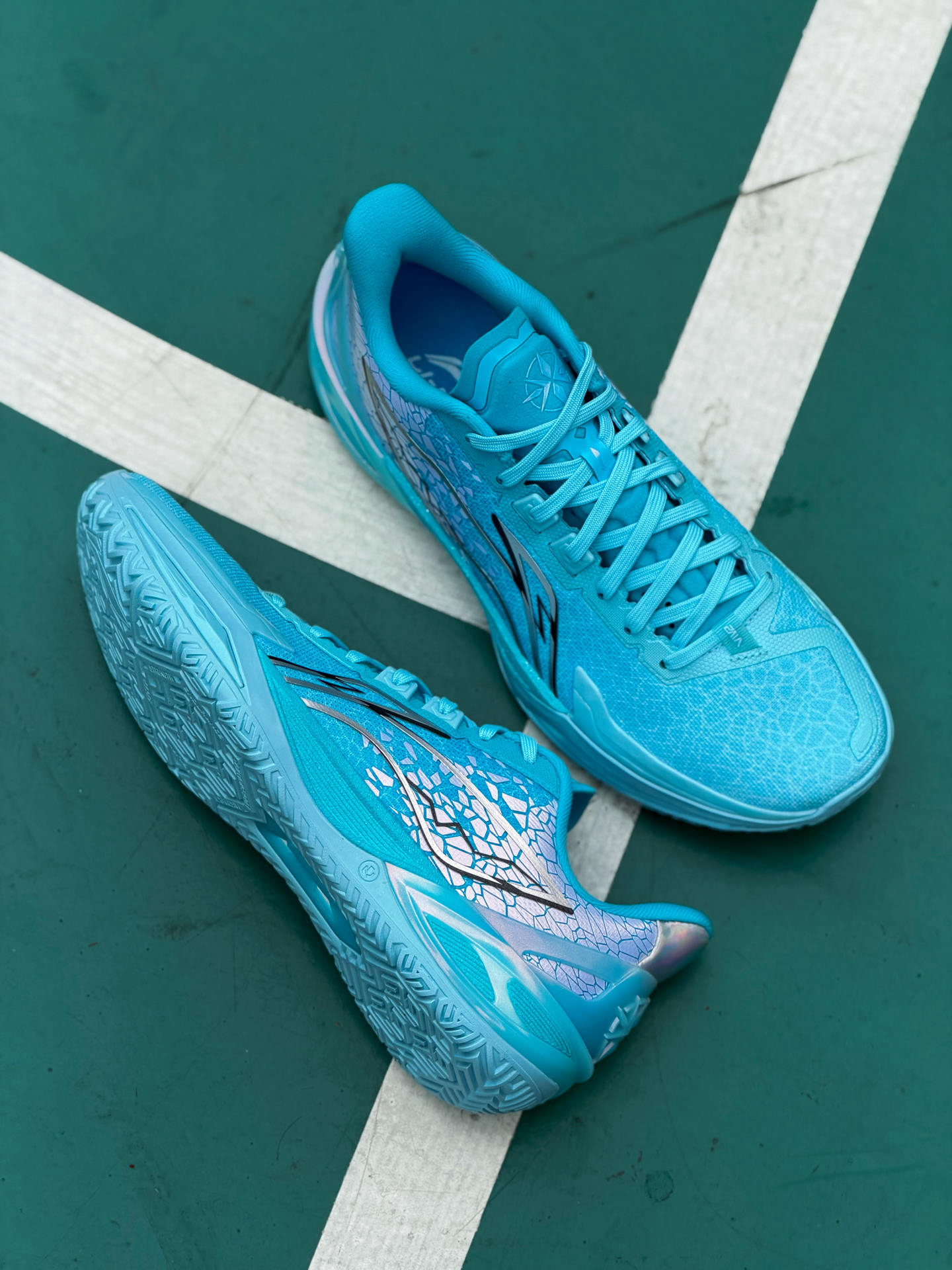 李宁的利刃系列实战球鞋 我一直都很喜欢 最近也是拿下6代V2版本 「坤灵」配色 颜值和实战双升级! 颜值设计这块 首先必须提一下 这次的「万象更新」主题包 它的灵感源自 “天地日月,四时轮替” 的自然哲学 推出了碧落(天空)、坤灵(大地)、 扶光(太阳)、望舒(月亮)四个配色 我手上这双「坤灵」 配色灵感源自大地 鞋面水波纹以及 鞋身两侧银色碎片效果 还原大地海纳百川的巍峨壮丽之美 和李宁log...