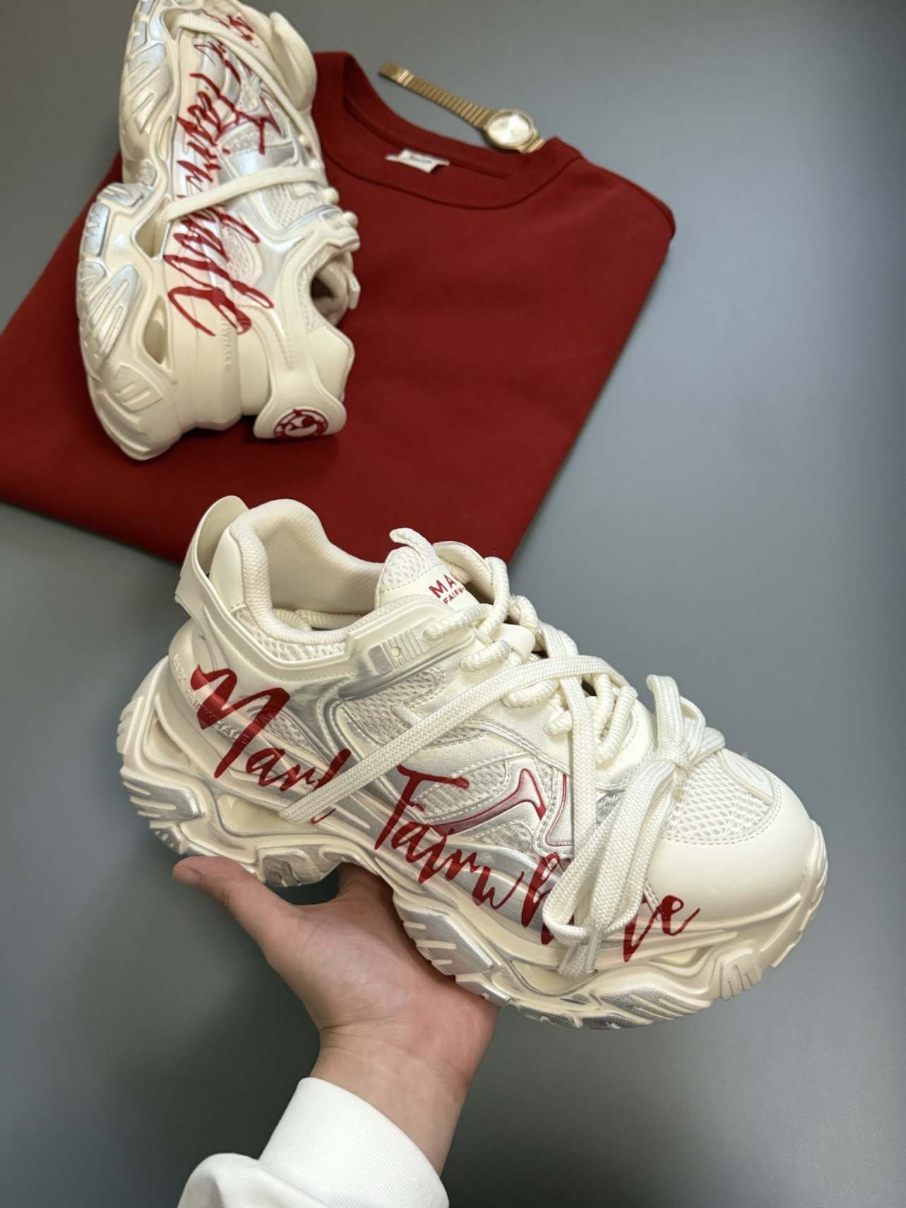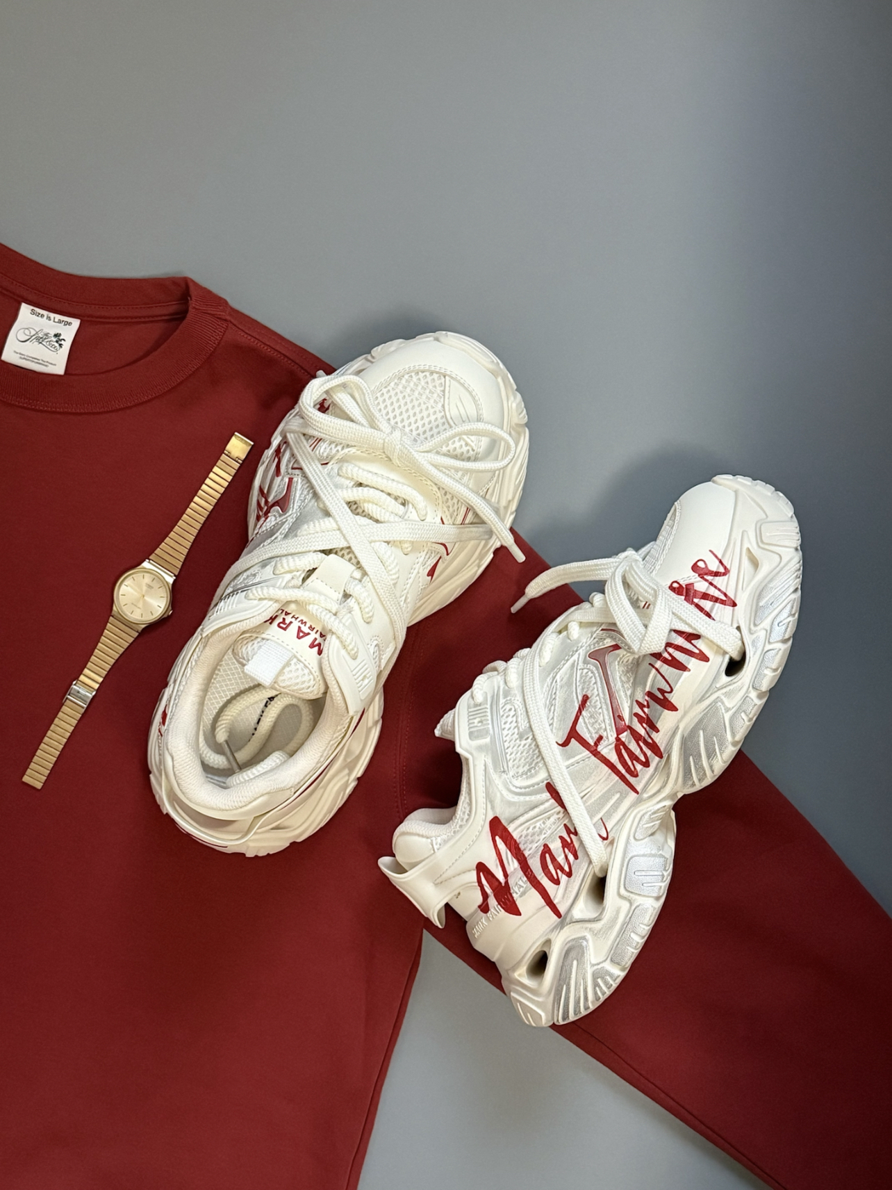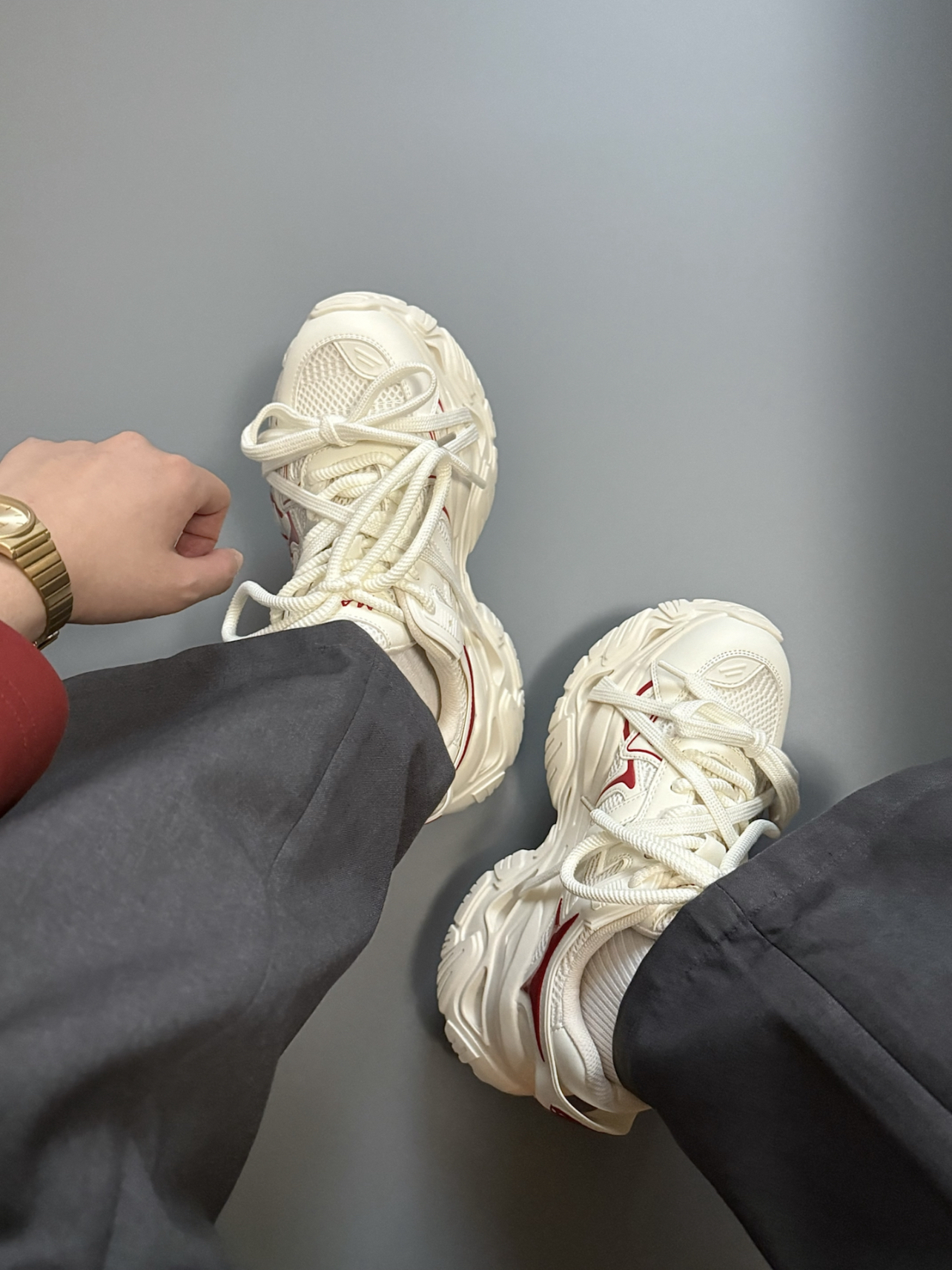 早春的一年当然要来点“红” 暖春氛围感拉满了,喜欢厚底的老爹鞋! 因为上脚可以增高7cm了沒 还有它很弹性的鞋底 走路起来都觉得没那么费劲 侧面的红色logo也是满满的个性! 上脚好出片哈哈哈 爱了这个质感了~ 趁有补贴后359,赶紧入手!