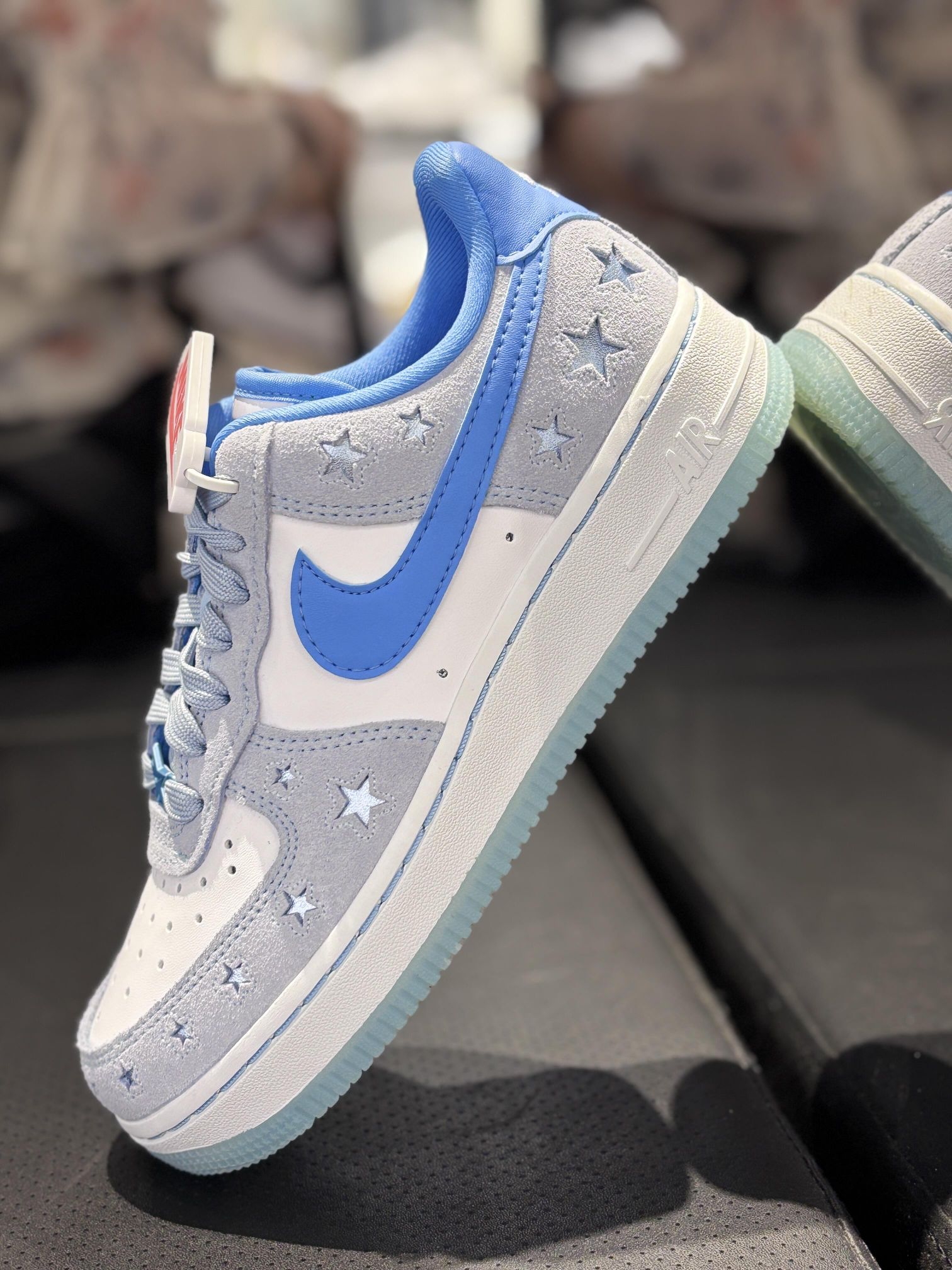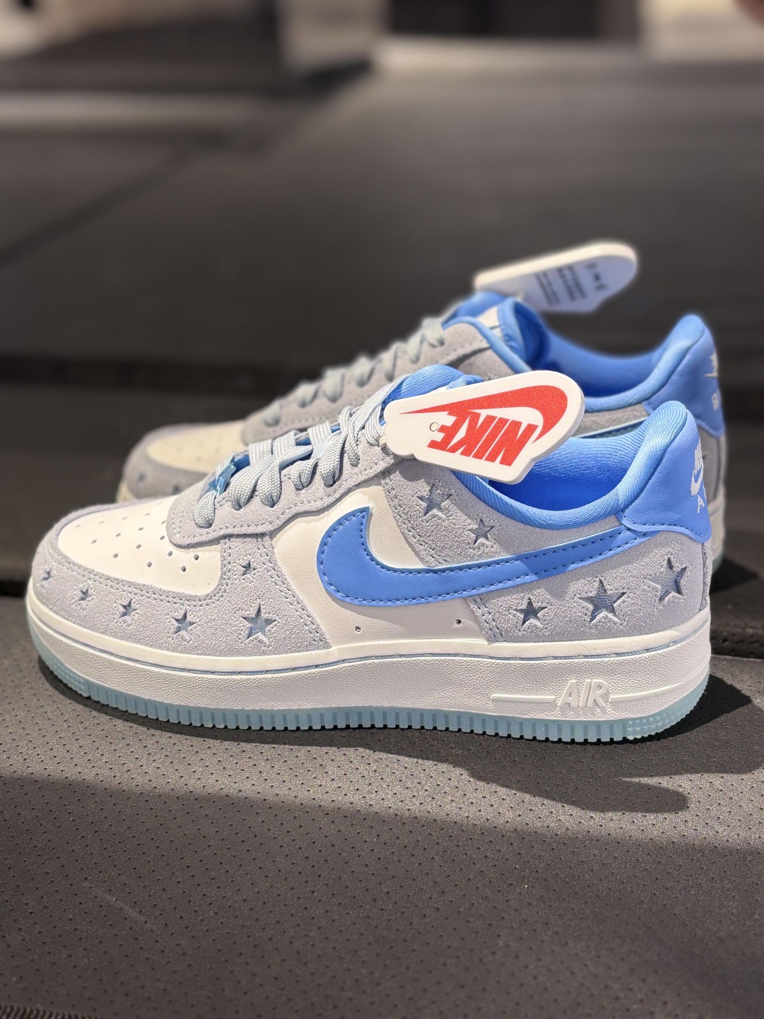 ✨AF1太适合夏天了叭 💫镂空星星心设计 👀鞋面造型好吸睛呀 ☀搭配晴天蓝也太夏天了叭~ 新鲜出炉的一双!! 鞋面造型好吸睛呀 鞋底更是搭配了马卡龙蓝绿色 击中心趴的配色泰美啦✨ 无论是通勤运动都很好看 搭配蓝色系或者简单穿搭就很出彩啦! 辨识度超高的一双!!