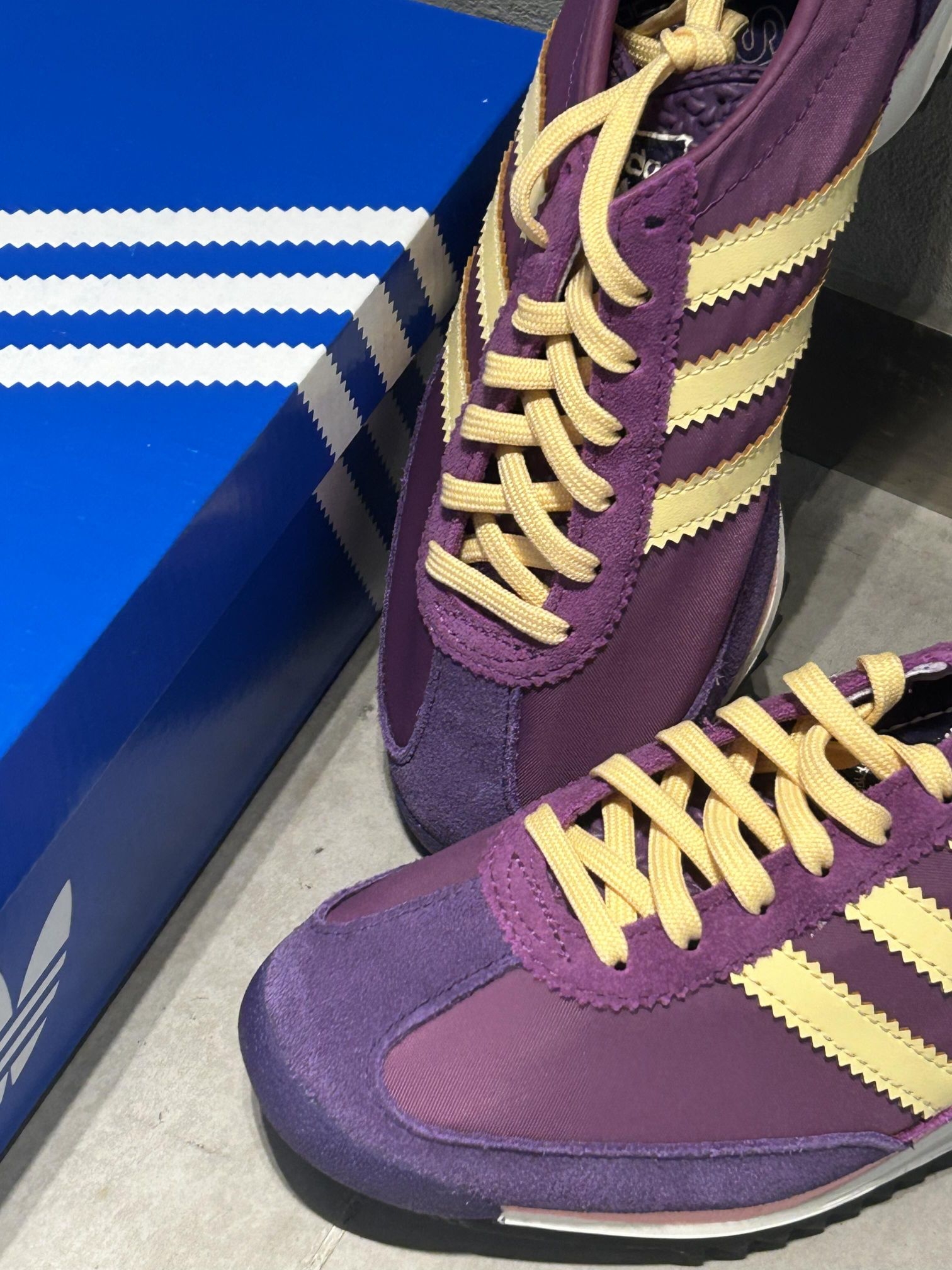 三叶草SL72「霓虹轮盘」👟 紫黄麂皮鸳鸯撞色+锯齿大底,街拍吸睛王炸💥 70s复古鞋型+OrthoLite鞋垫,暴走3小时不累脚! 早鸟价开冲‼️